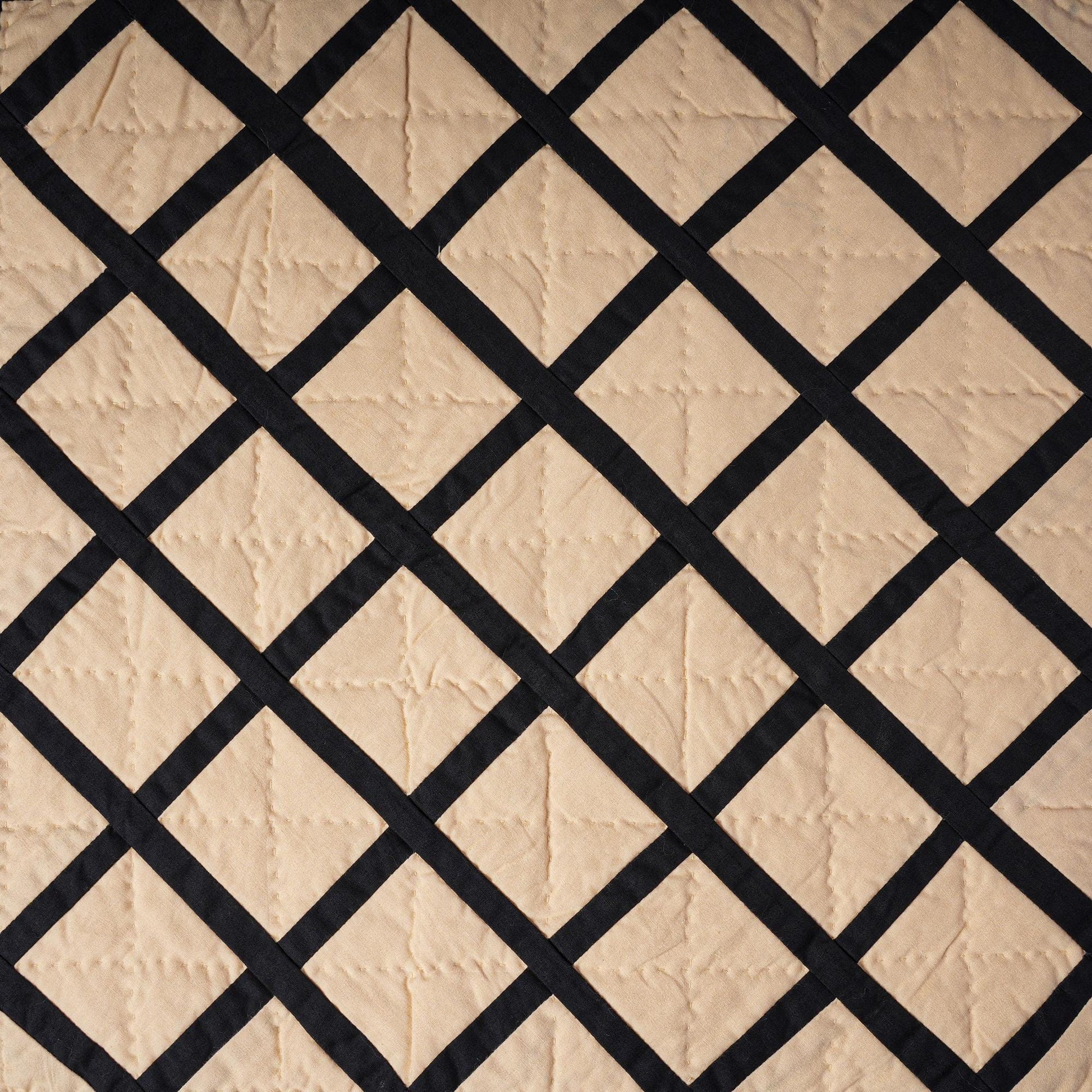 MATERIAL:100% high quality cotton fabric with  Beige & black cotton creating fishing net hand made quilt. Have small patches and pieced together tightly to last after years of use. Padded with cotton layer for extensively quality hand quilting for durability. Reverse side is solid off-white .