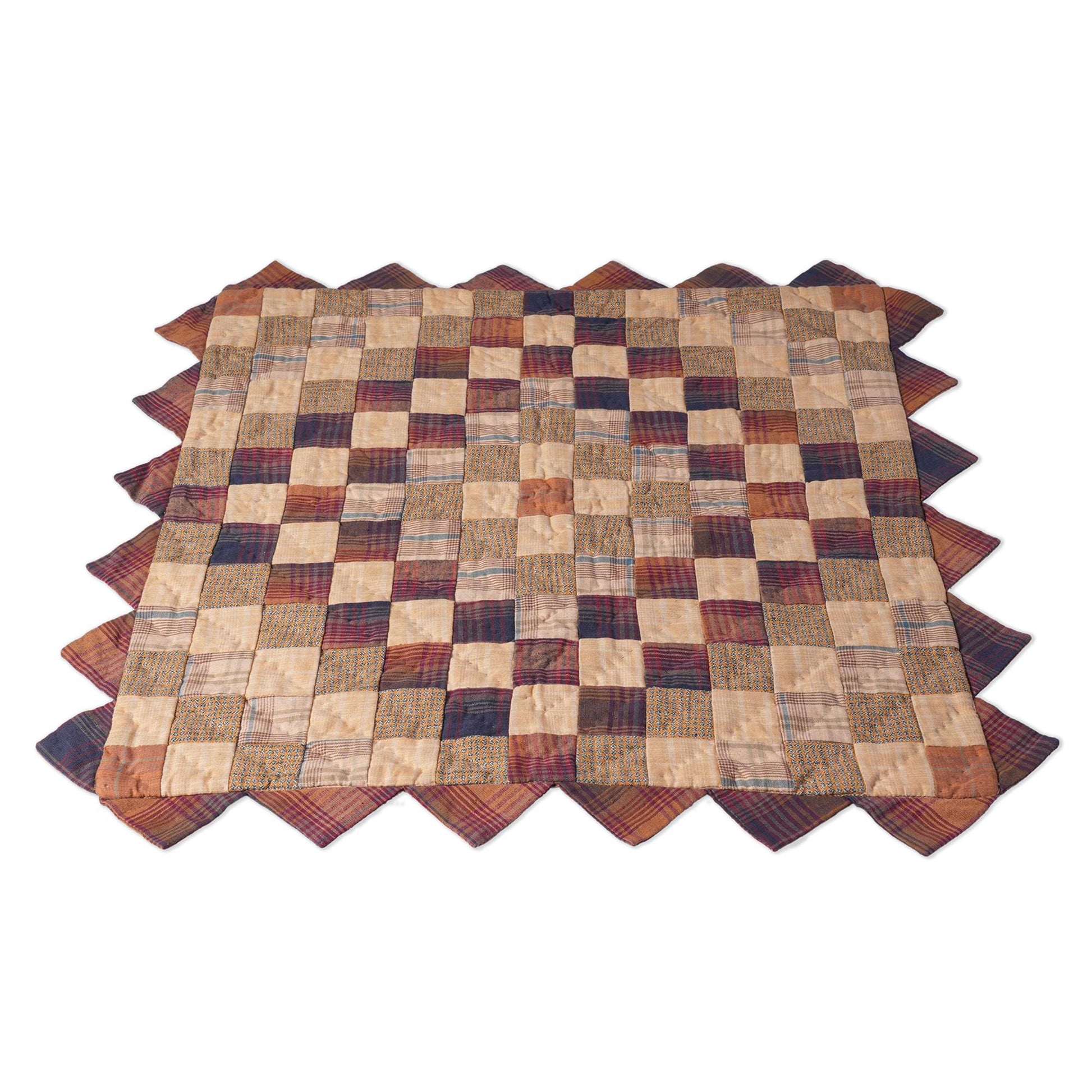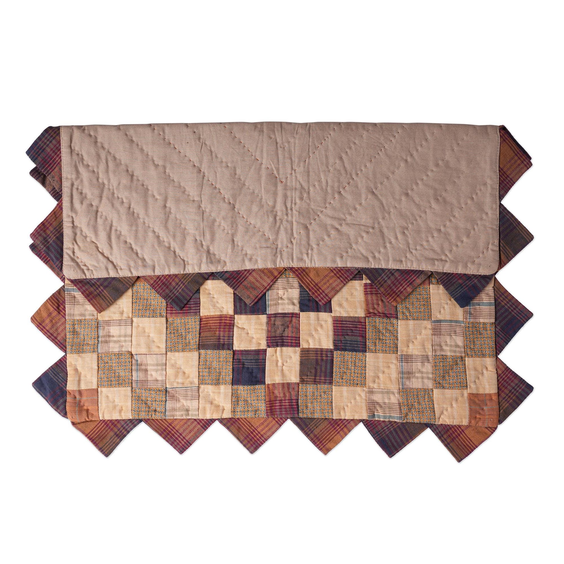 Hand made Hand quilted Throw Quilt, Table Topper sunrise autumn plaid calico zig zag quilt by Home Heart brands (Made in India)