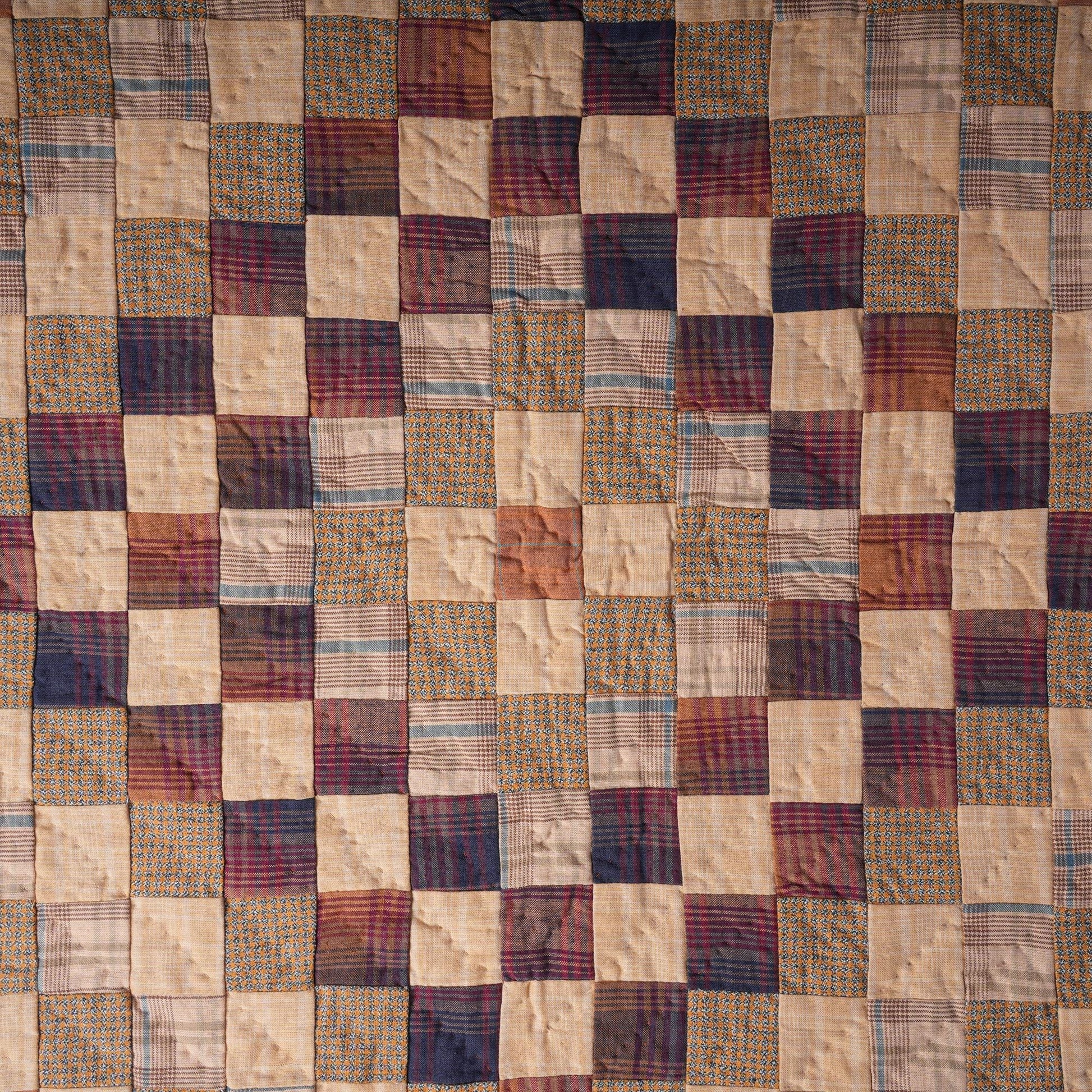 MATERIAL:100% high quality cotton fabric with Orange & beige calico cotton creating small square zig zag hand made quilt. Have small patches and pieced together tightly to last after years of use. Padded with cotton layer for extensively quality hand quilting for durability. Reverse side is solid khaki.