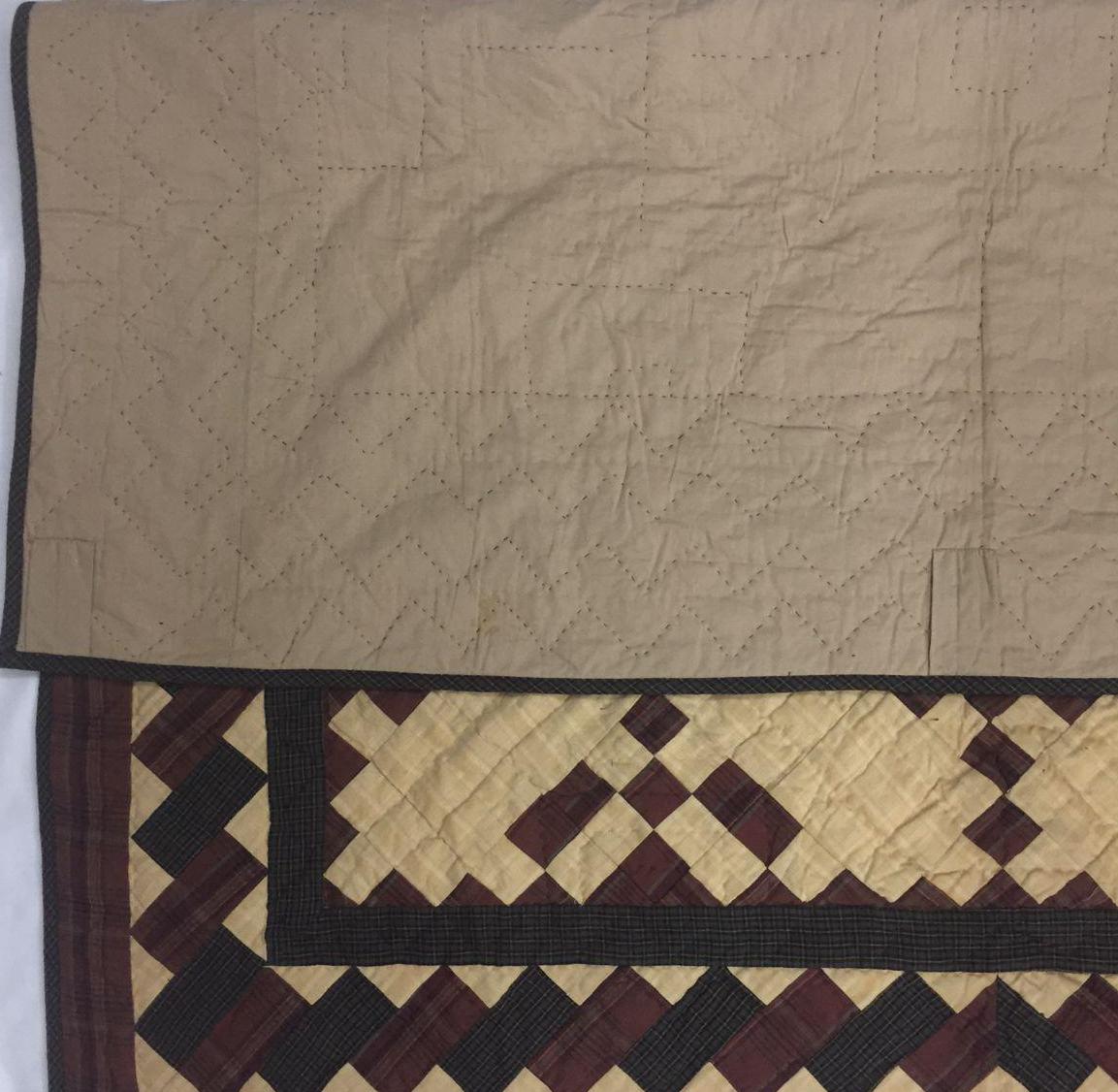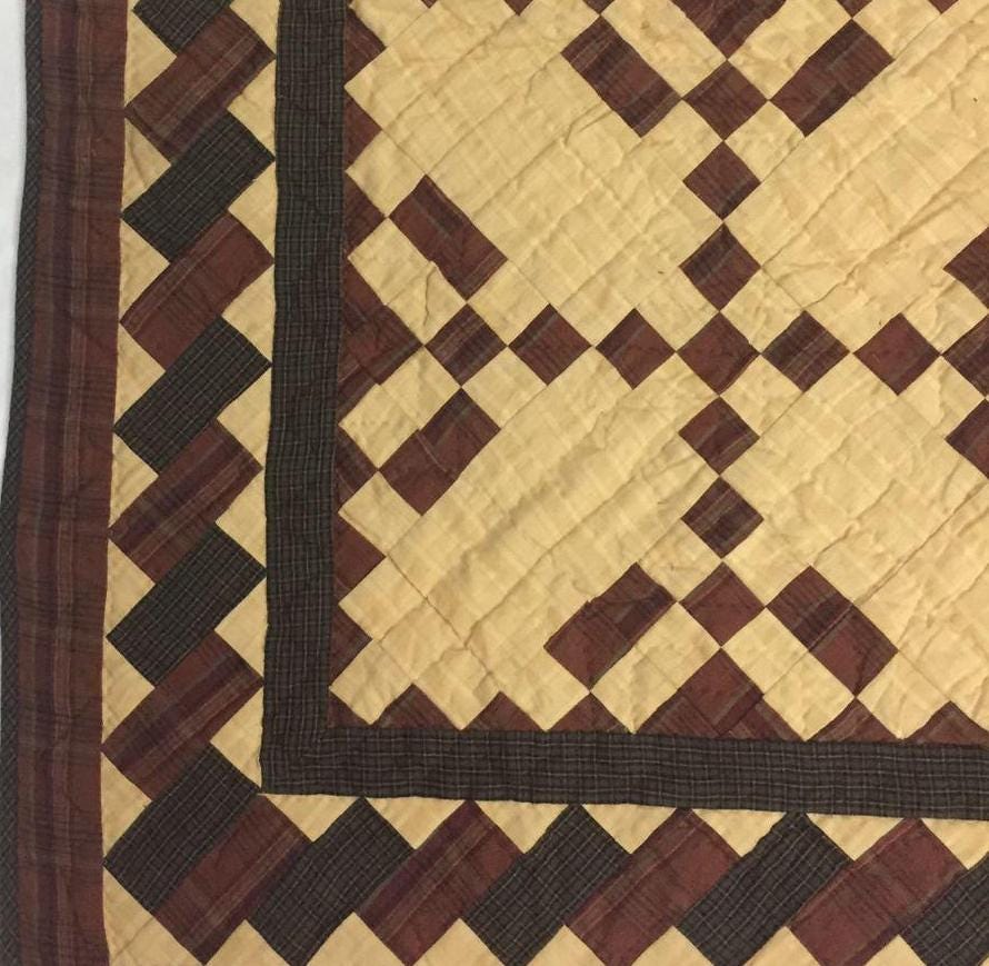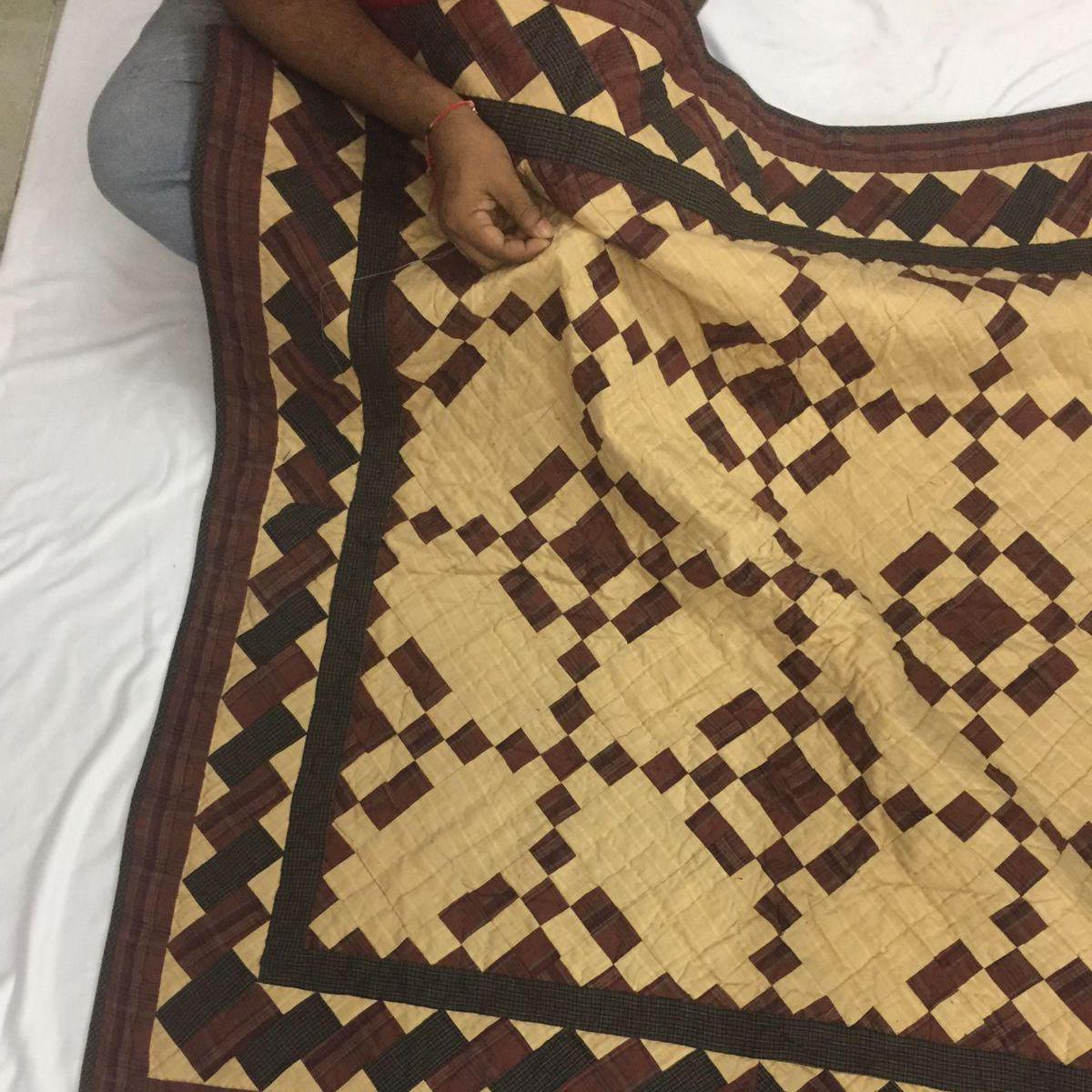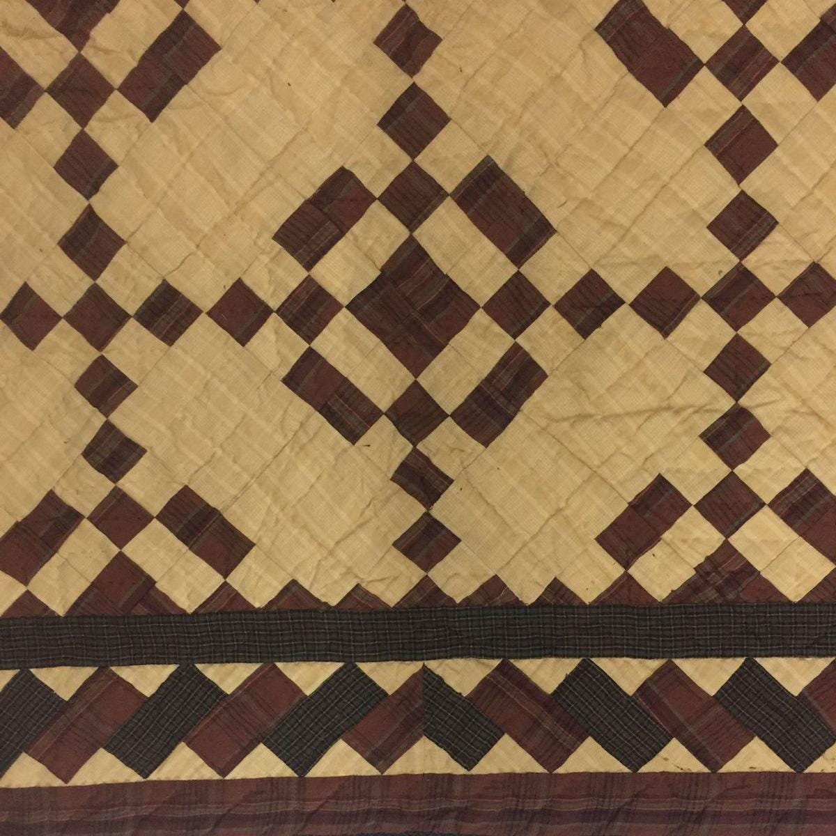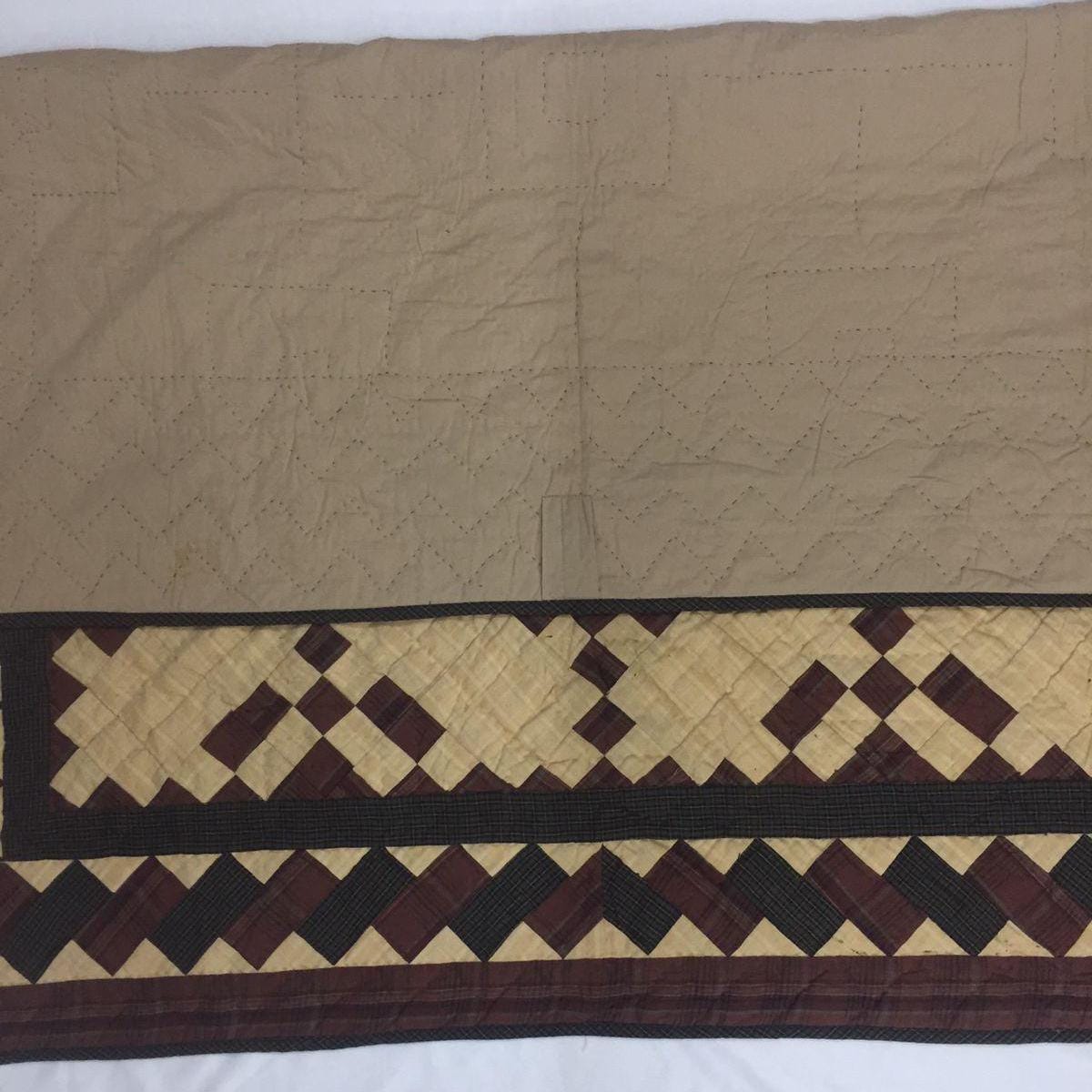 MATERIAL:100% high quality cotton fabric with Burgundy red, beige, & black plaid cotton fabrics. Have small patches and pieced together tightly to last after years of use. Padded with cotton layer for extensively quality hand quilting for durability. Reverse side is solid khaki. View the entire Nine patch square style.