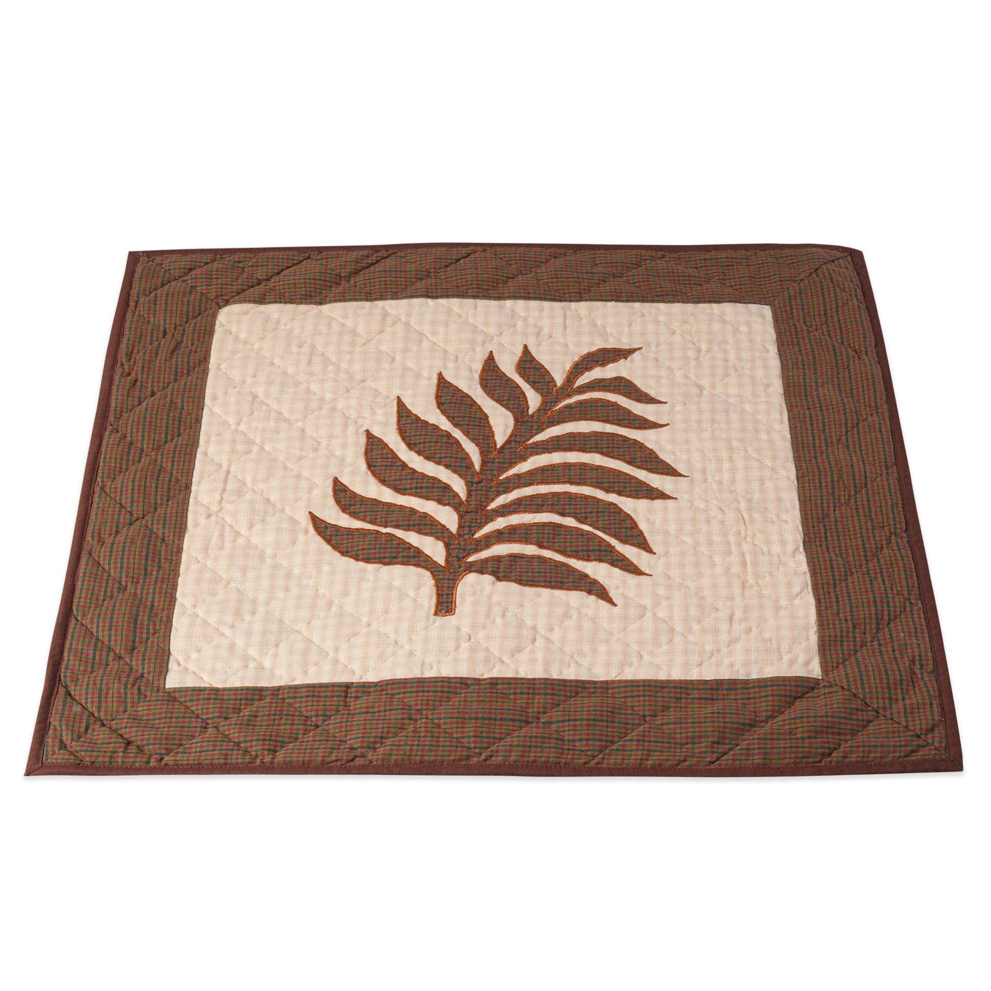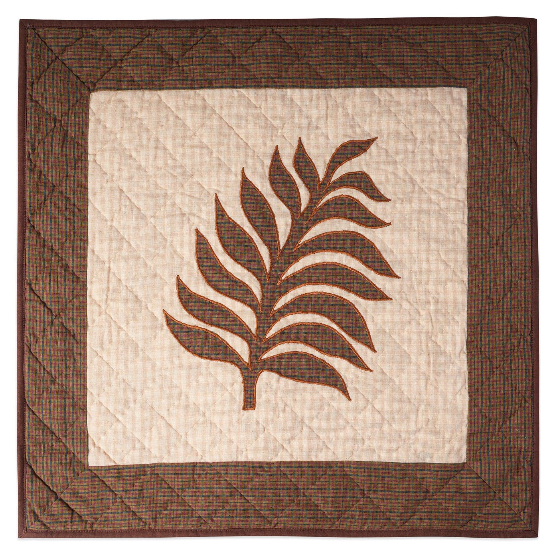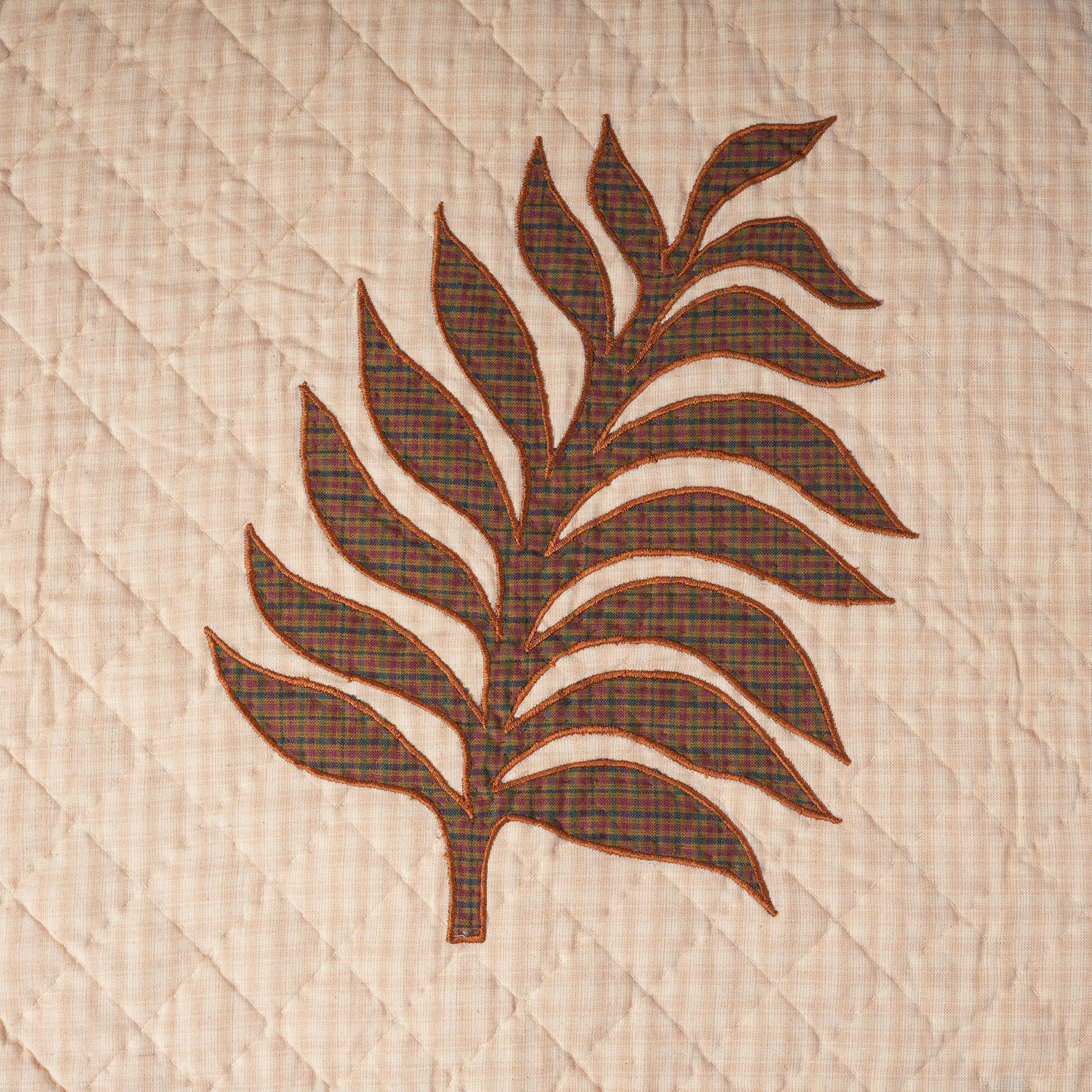 MATERIAL:100% high quality cotton fabric with Brown , beige plaid cotton creating swiss cheese plant hand made quilt. Have small patches and pieced together tightly to last after years of use. Padded with cotton layer for extensively quality hand quilting for durability. Reverse side is solid khaki.
