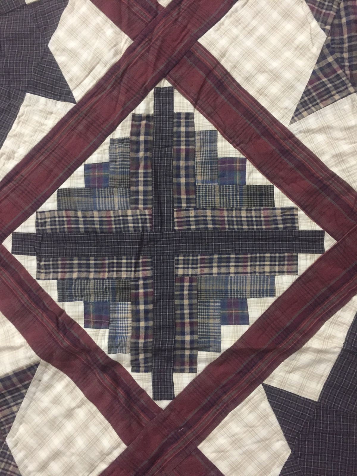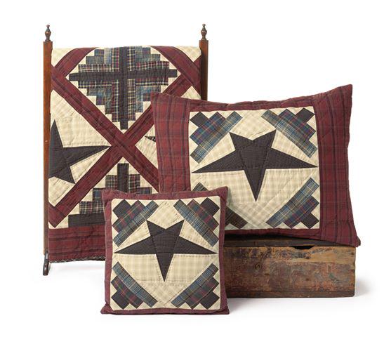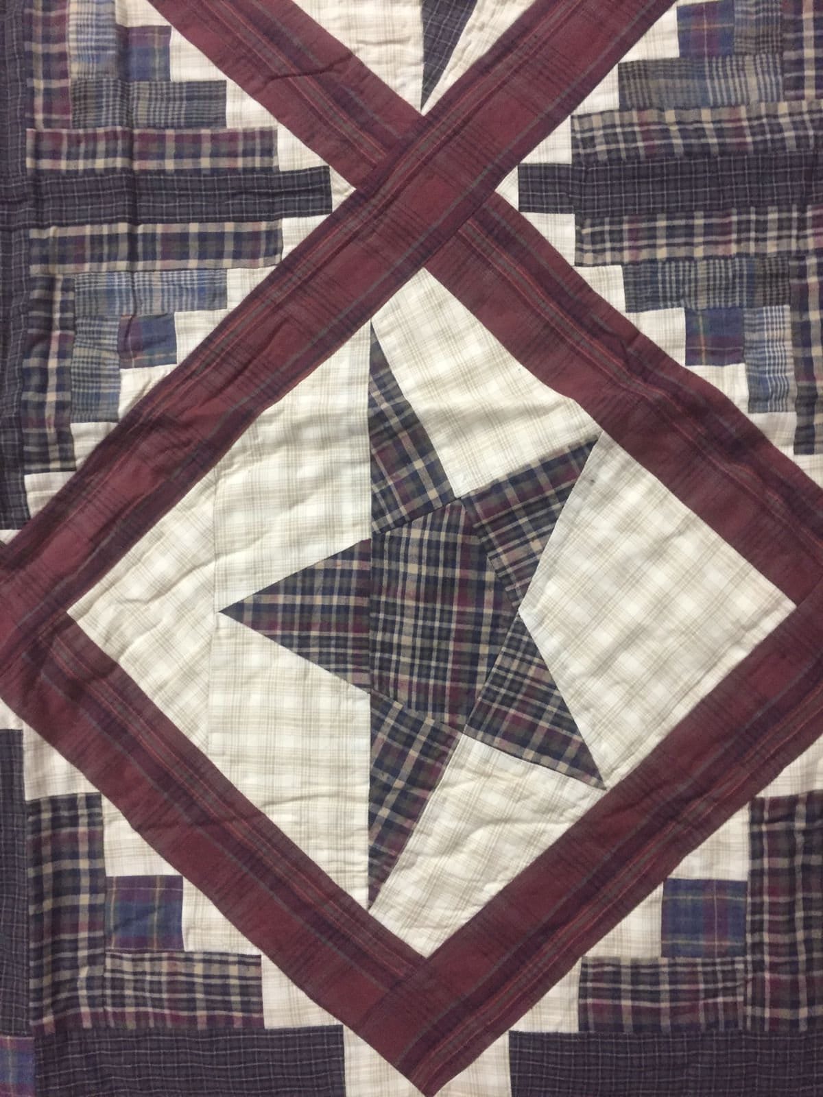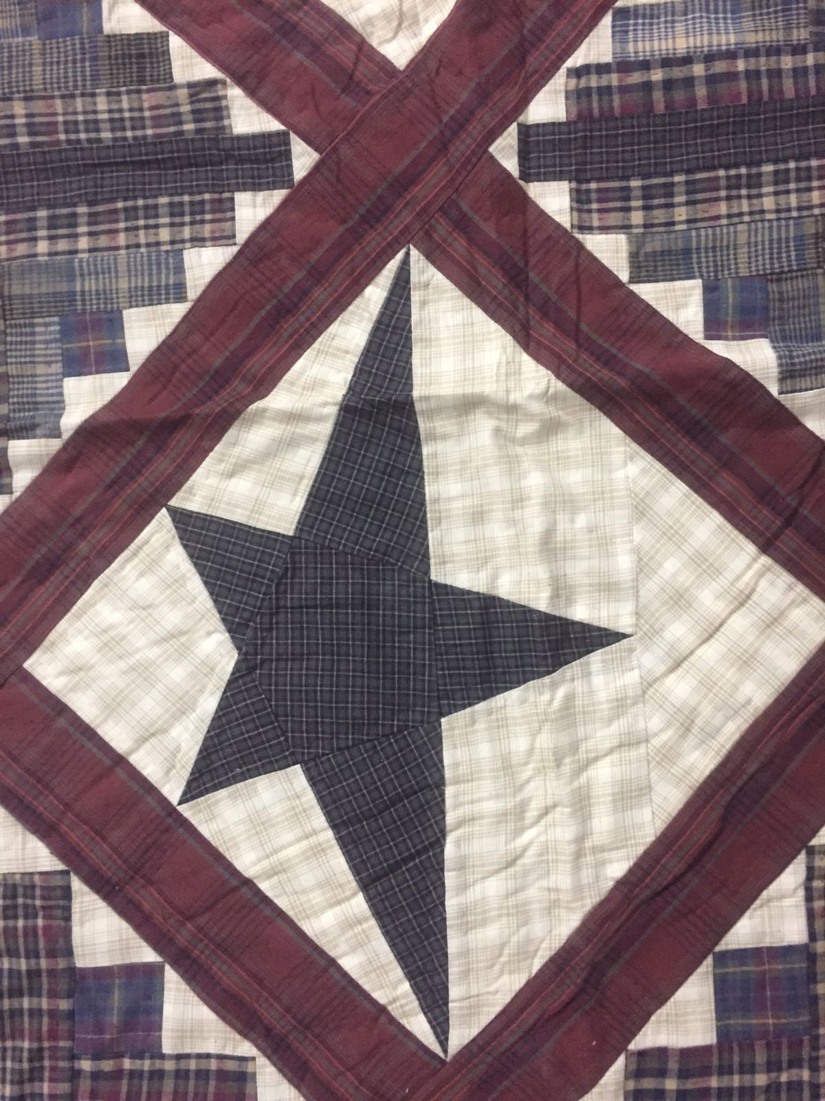 COUNTRY PATCHWORK DESIGN: Traditional style that compliments any country, rustic, or Americana home. Cabin star features multi color plaid cotton fabric with Burgundy, Slate and Black tones and beige plaid fabric creating a Log Cabin design. It has boarder of burgundy fabric. The quilt reverses to Khaki solid high quality cotton fabric.