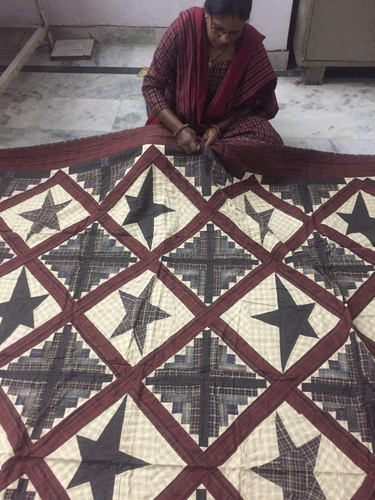Hand made quilt Hand Quilted bedspread quilt large king 110"x110" cabin star country primitive plaid patchwork quilt by HOME HEART Brands