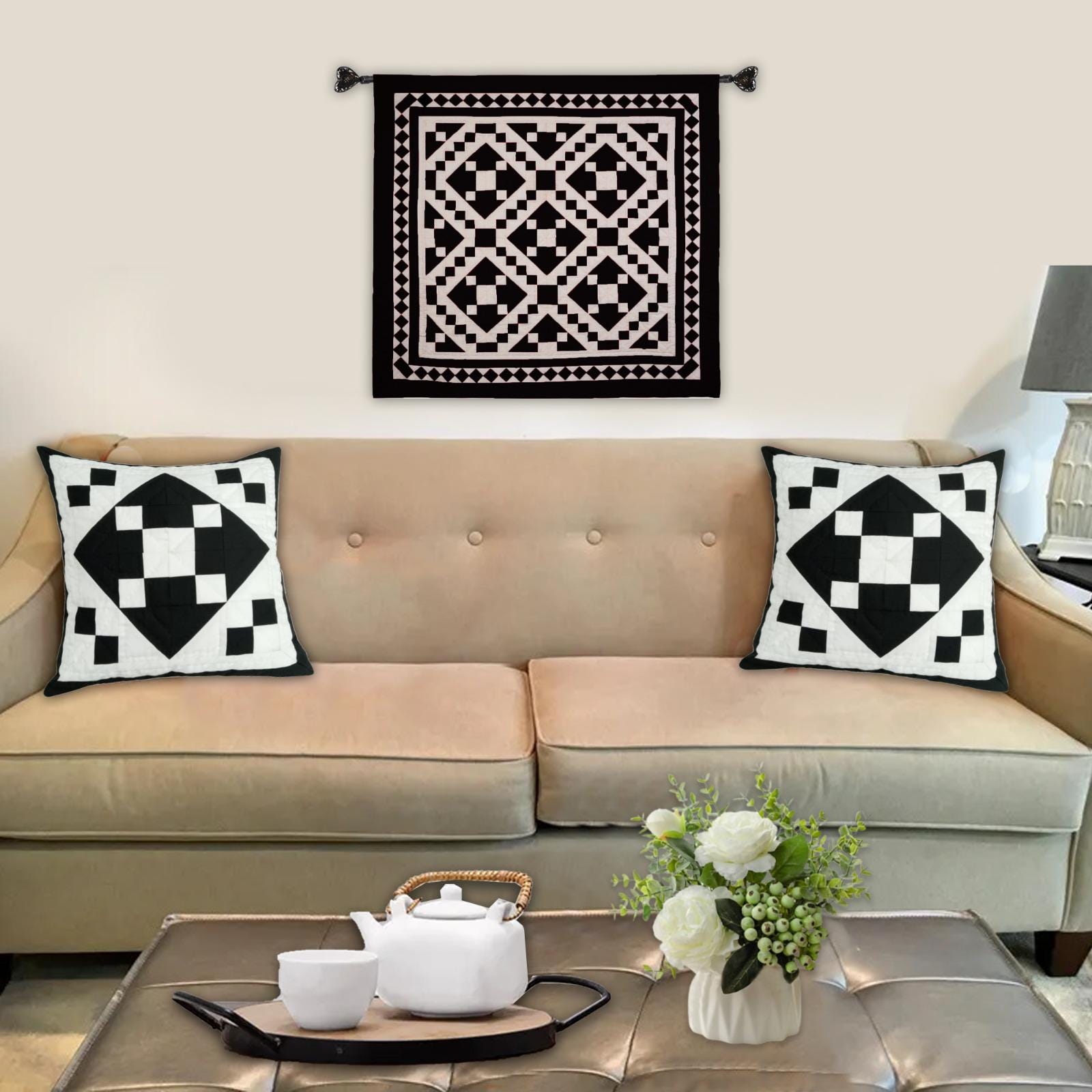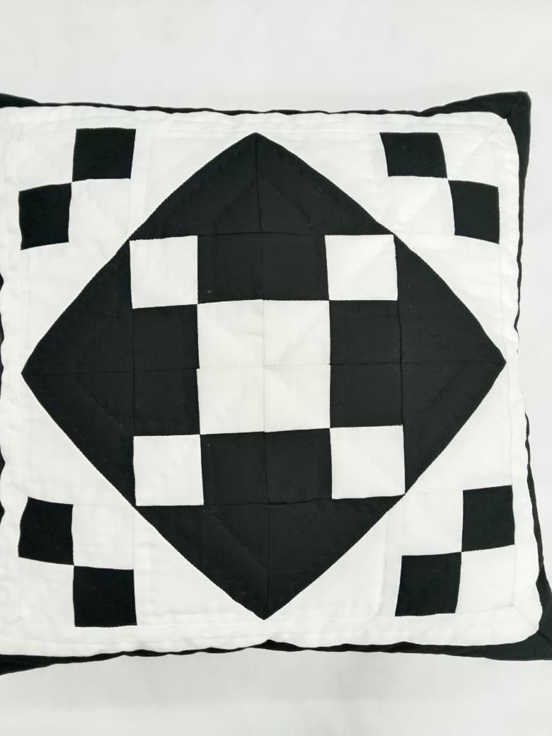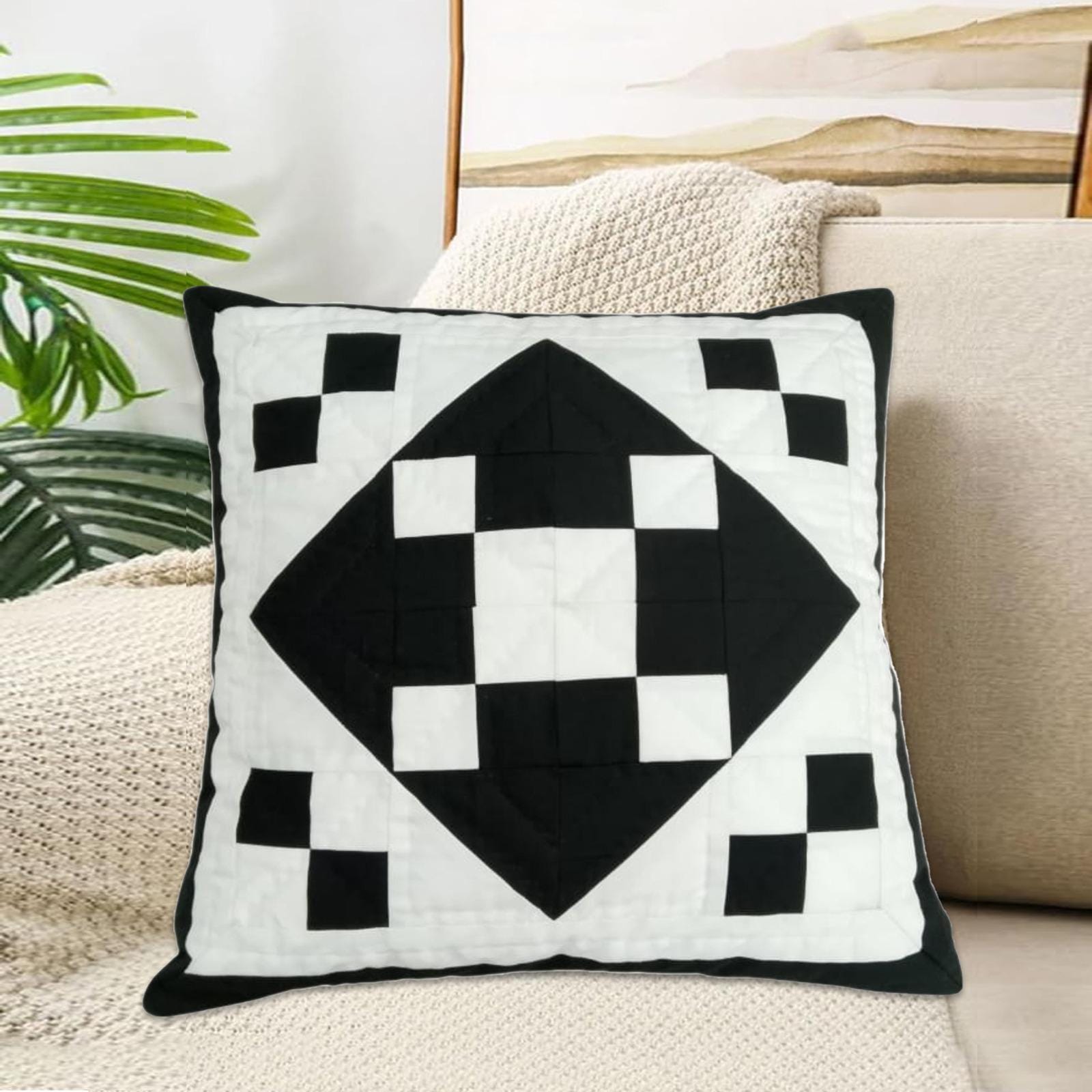 Hand made Quilted patchwork pillow cover, cushion cover, throw pillow cover Calico black diamond quilt by HOME HEART Brands(made in India)