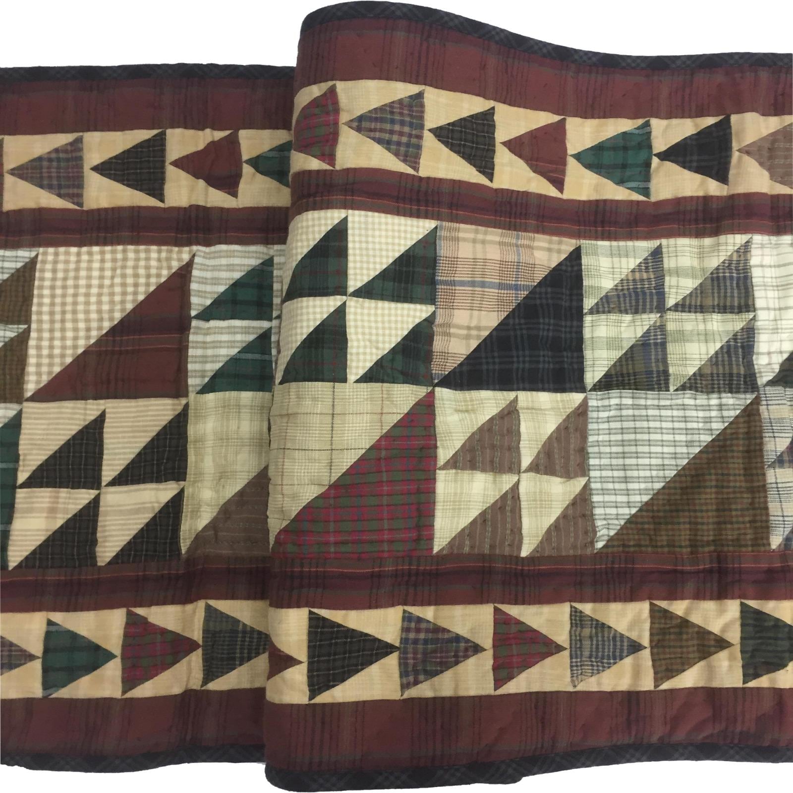 Hand Quilted crafted Rustic flying geese plaid table runner 16"x50" patchwork Table Runner & Toppers by HOME HEART Brands(Made in India)