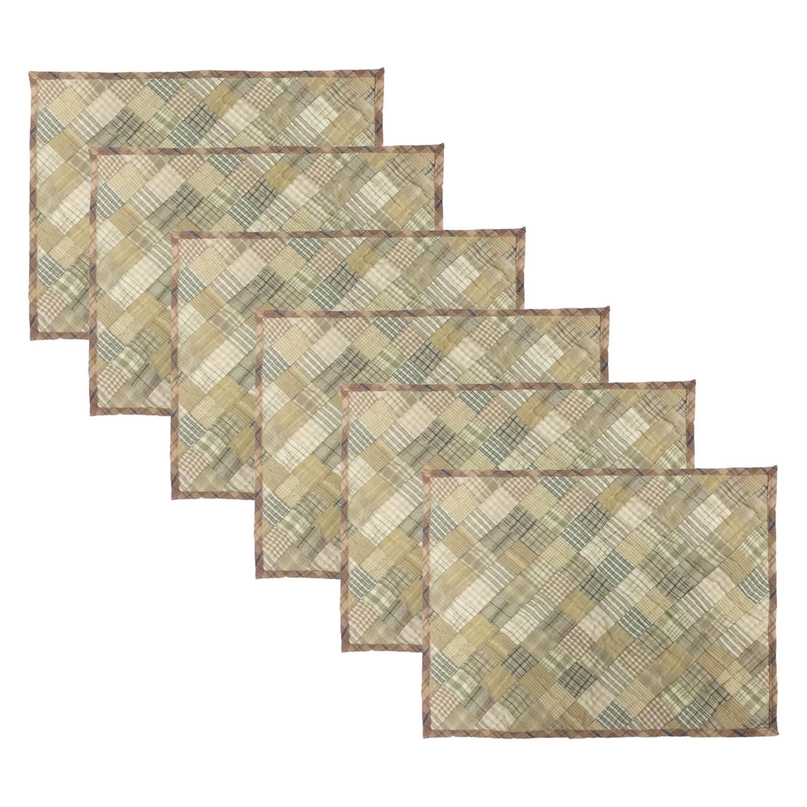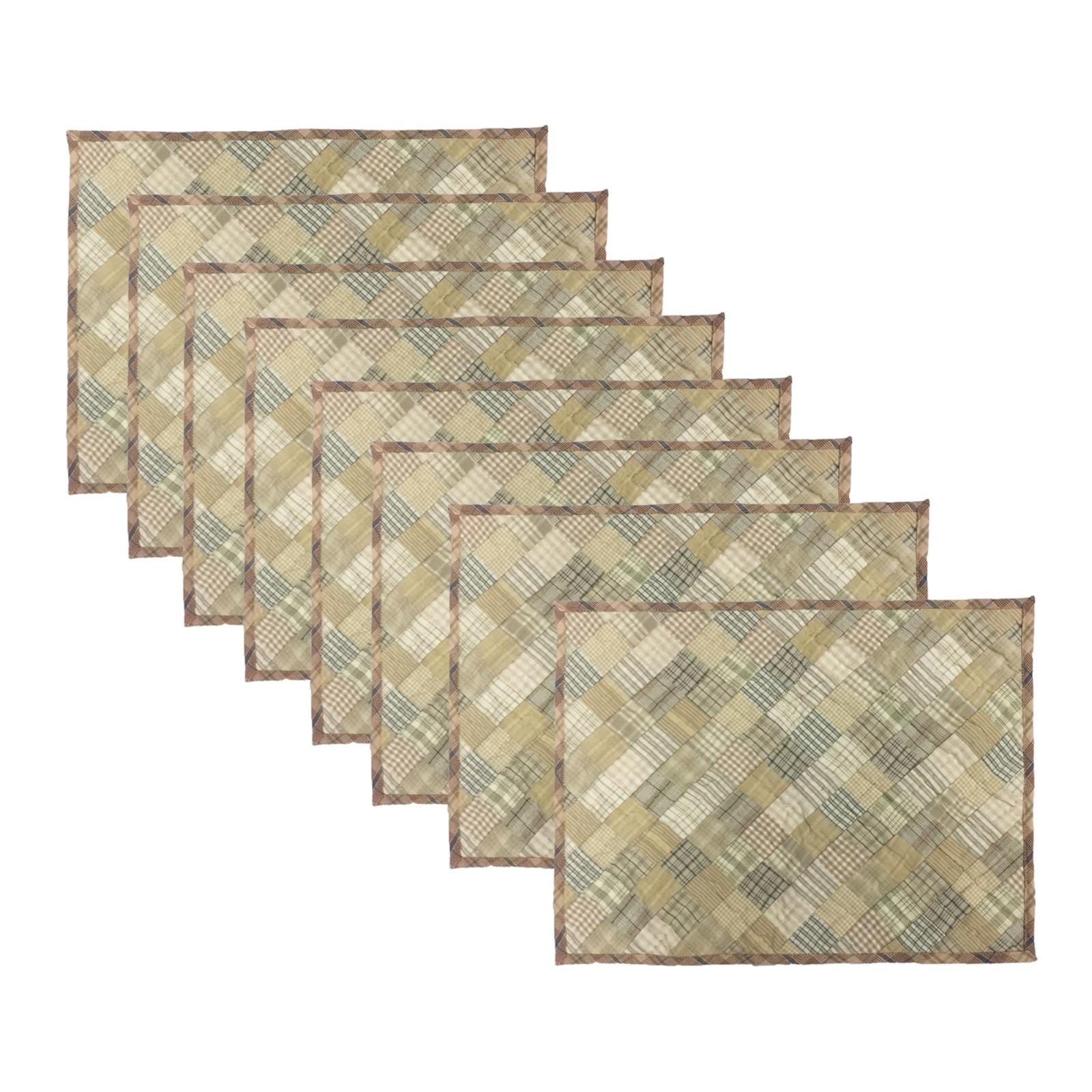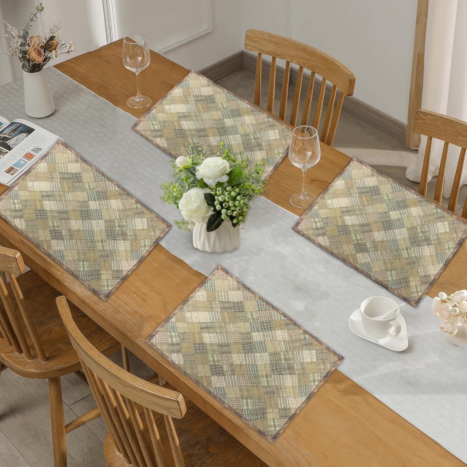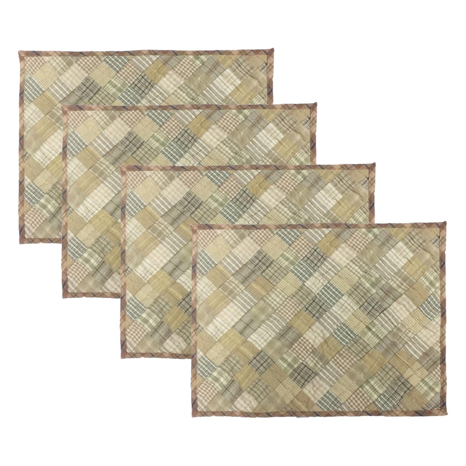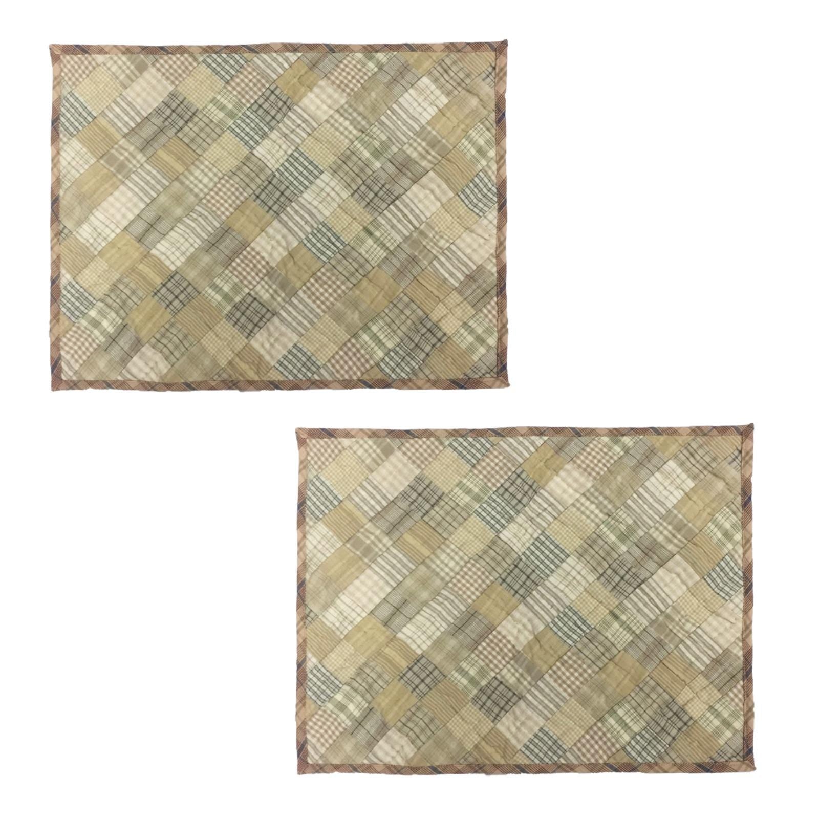 Hand quilted hand made placemats tablemats light square mix country plaid placemat 14"X19" by HOME HEART Brands (Made in India)
