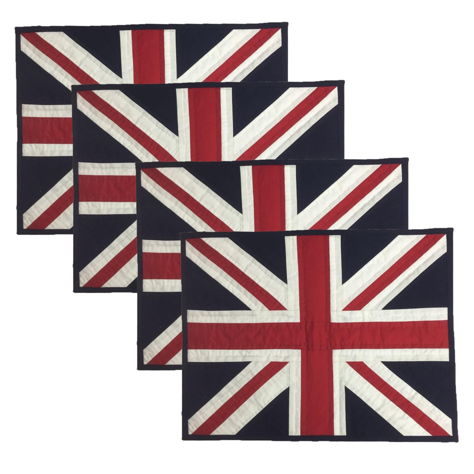 Hand quilted hand made placemats tablemats patchwork Union jack British flag UNION placemat 14"X19" by HOME HEART Brands (Made in India)