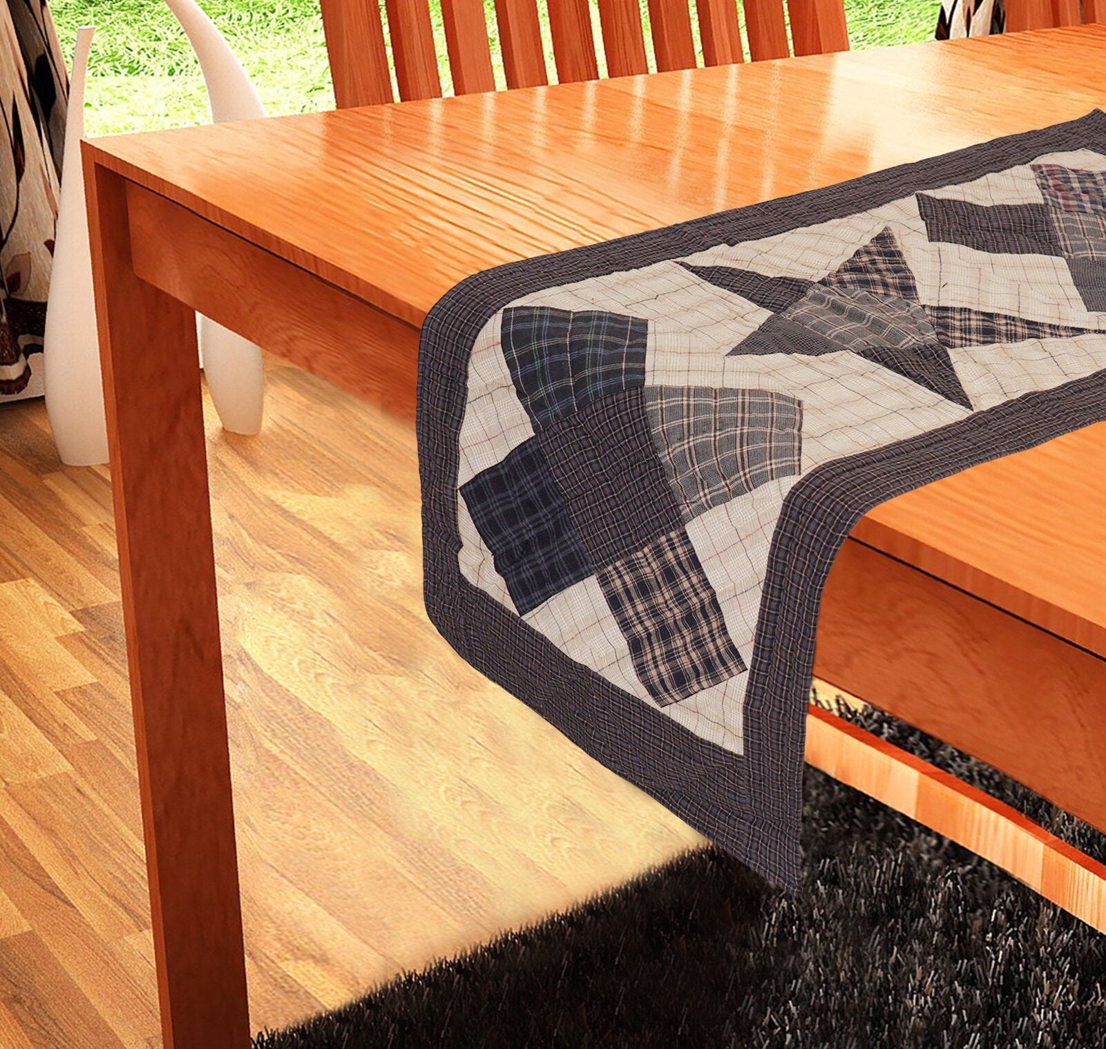 Hand Quilted patchwork 13"x35" Table Runner & Toppers Country blazing star plaid cotton fabric by HOME HEART Brands(made in INDIA)