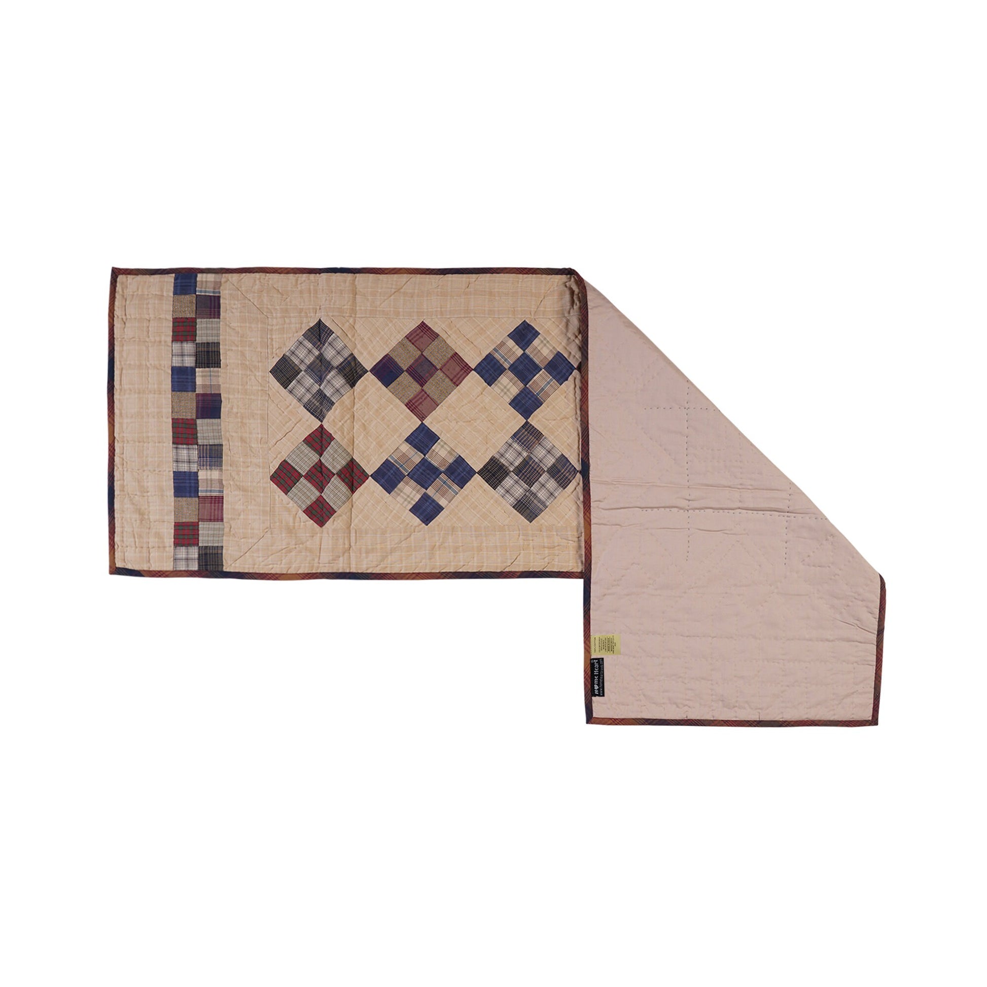 Hand Quilted patchwork 17"x50" Table Runner & Toppers Country Nine patch plaid cotton fabric by HOME HEART Brands(made in INDIA)