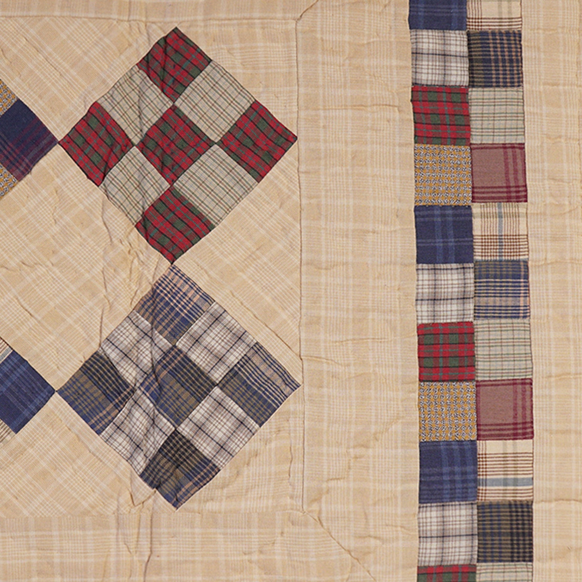 MATERIAL:100% high quality cotton fabric with mix calico plaid cotton fabrics. Have small patches and pieced together tightly to last after years of use. Padded with cotton layer for extensively quality hand quilting for durability. Reverse side is solid khaki. View the entire calico country Nine patch design.