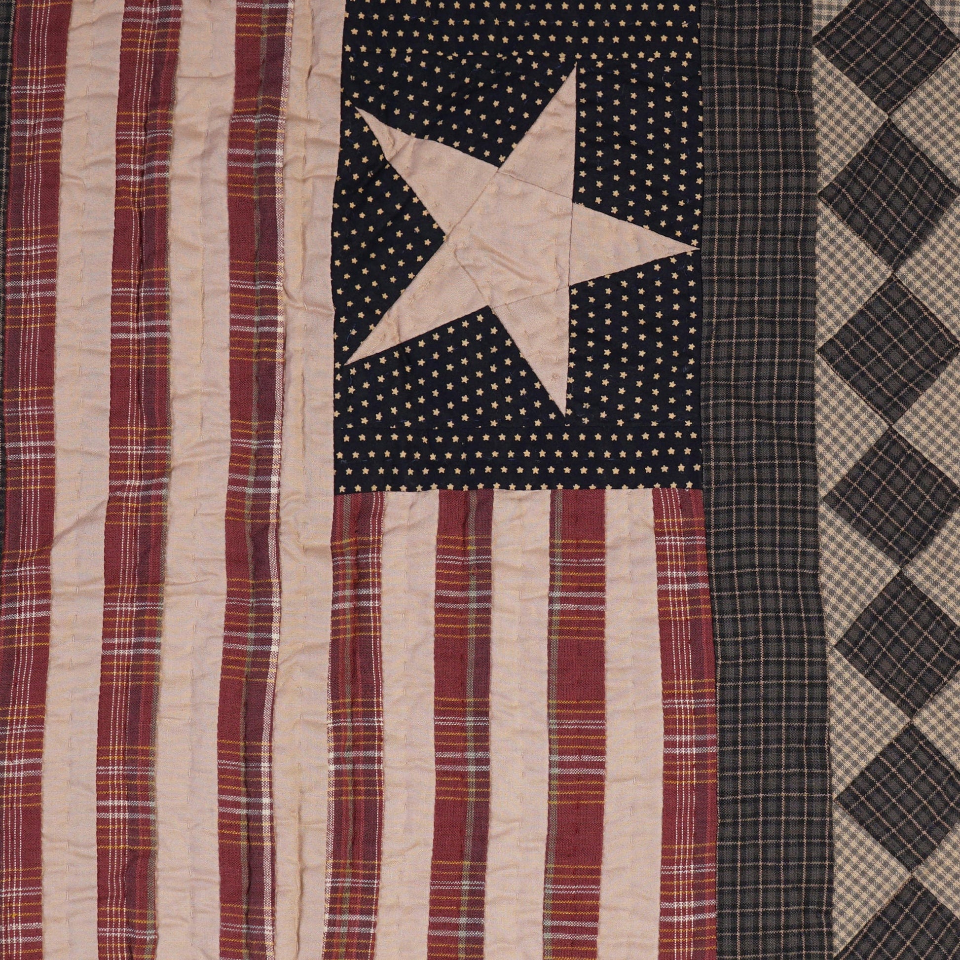 MATERIAL:100% high quality cotton fabric with mix calico cotton fabrics. Have small patches and pieced together tightly to last after years of use. Padded with cotton layer for extensively quality hand quilting for durability. Reverse side is solid offwhite. View the entire calico country Americana flag design.