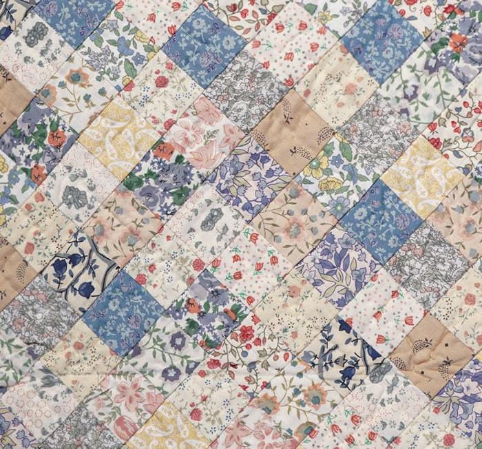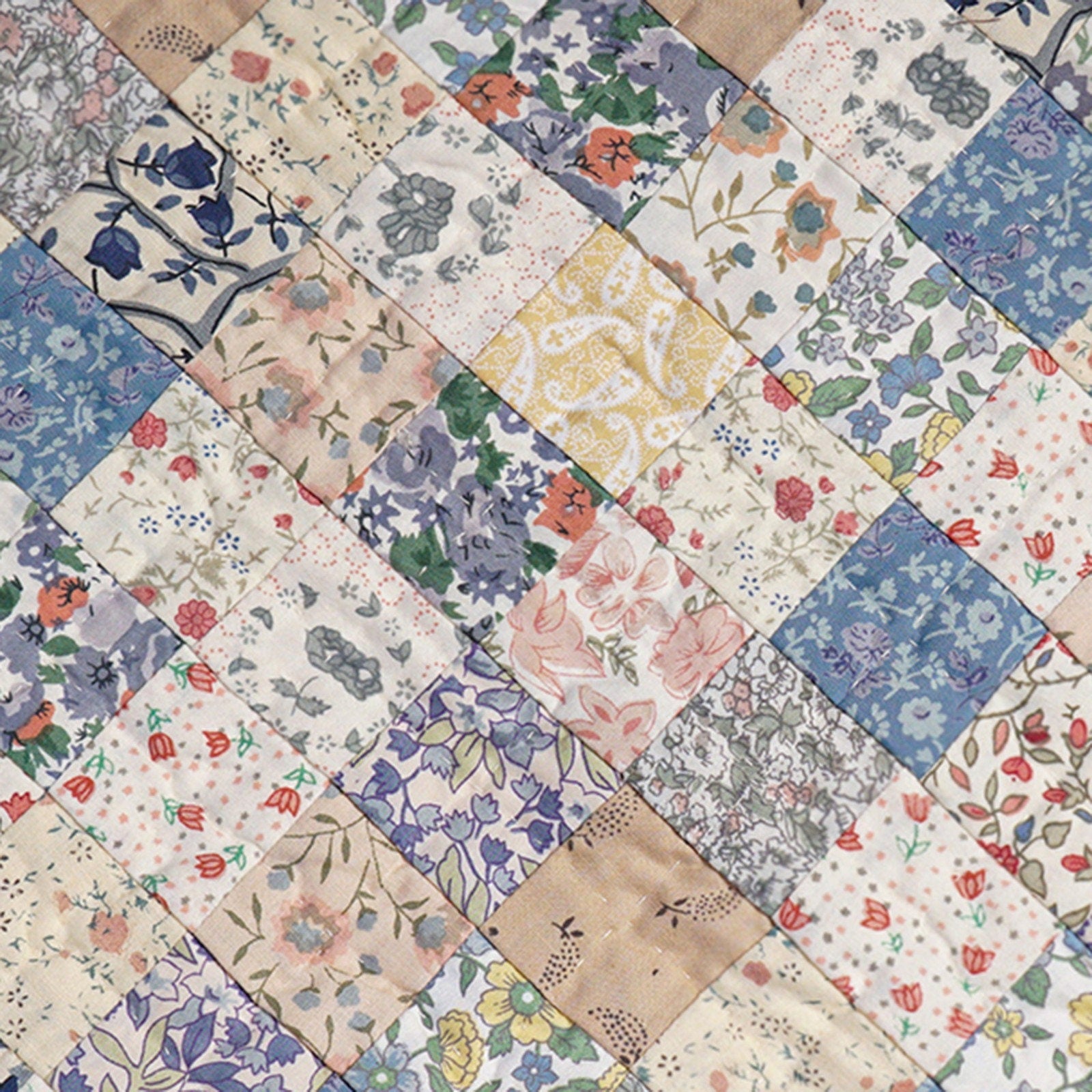 MATERIAL:100% high quality cotton fabric with mix prints cotton fabrics. Have small patches and pieced together tightly to last after years of use. Padded with cotton layer for extensively quality hand quilting for durability. Reverse side is solid offwhite. View the entire calico country floral design.