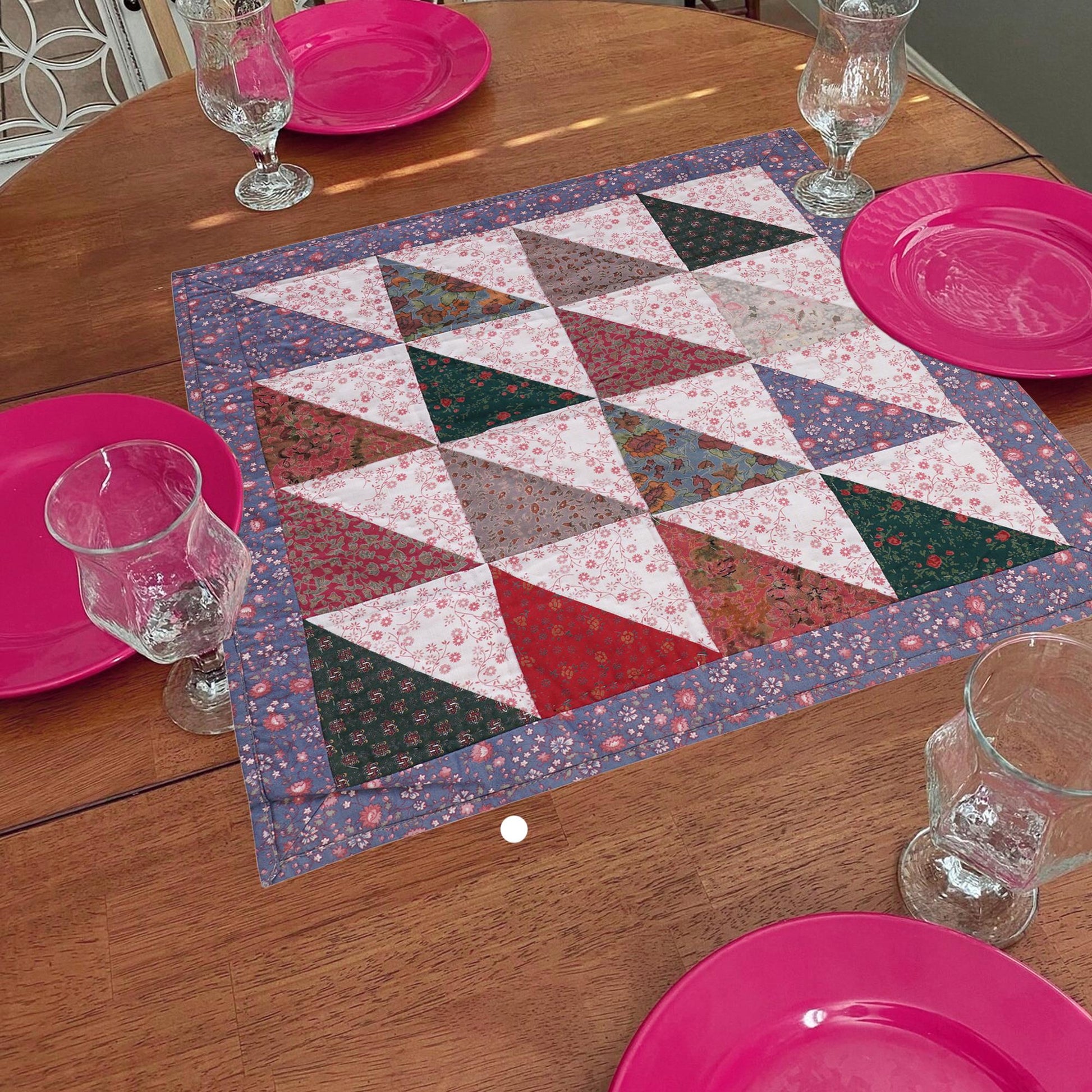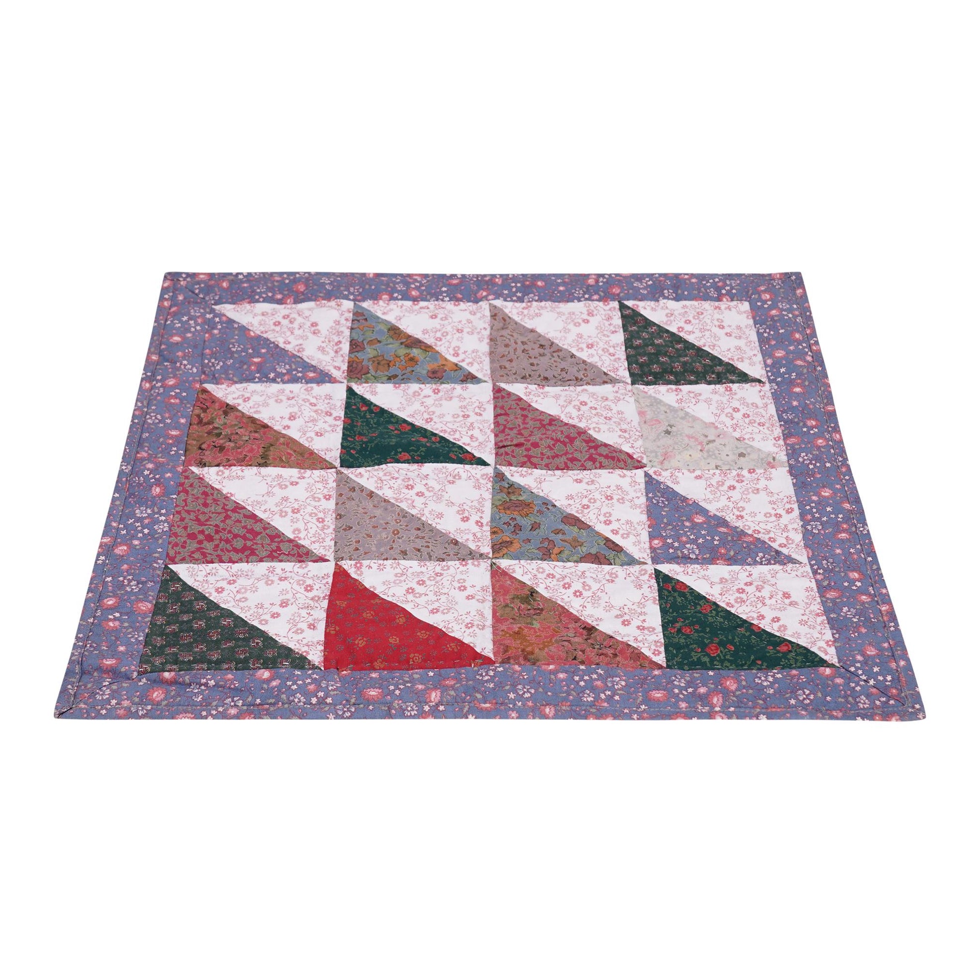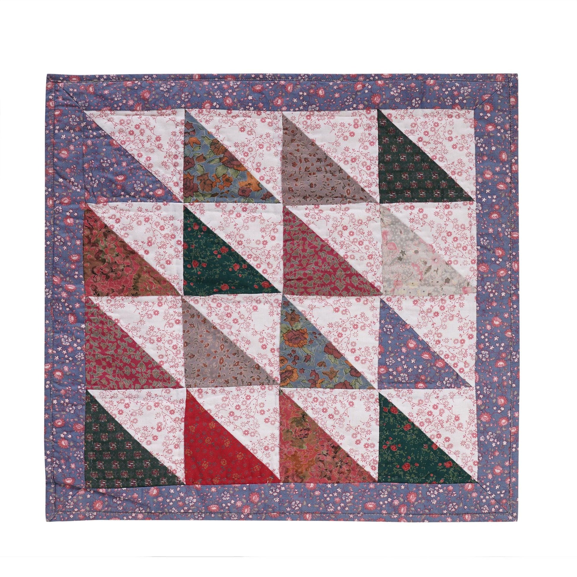Hand Quilted small quilt 20"x20" table topper,square block, wall hanging Calico Flying Geese rod pocket by HOME HEART Brands(Made in India)