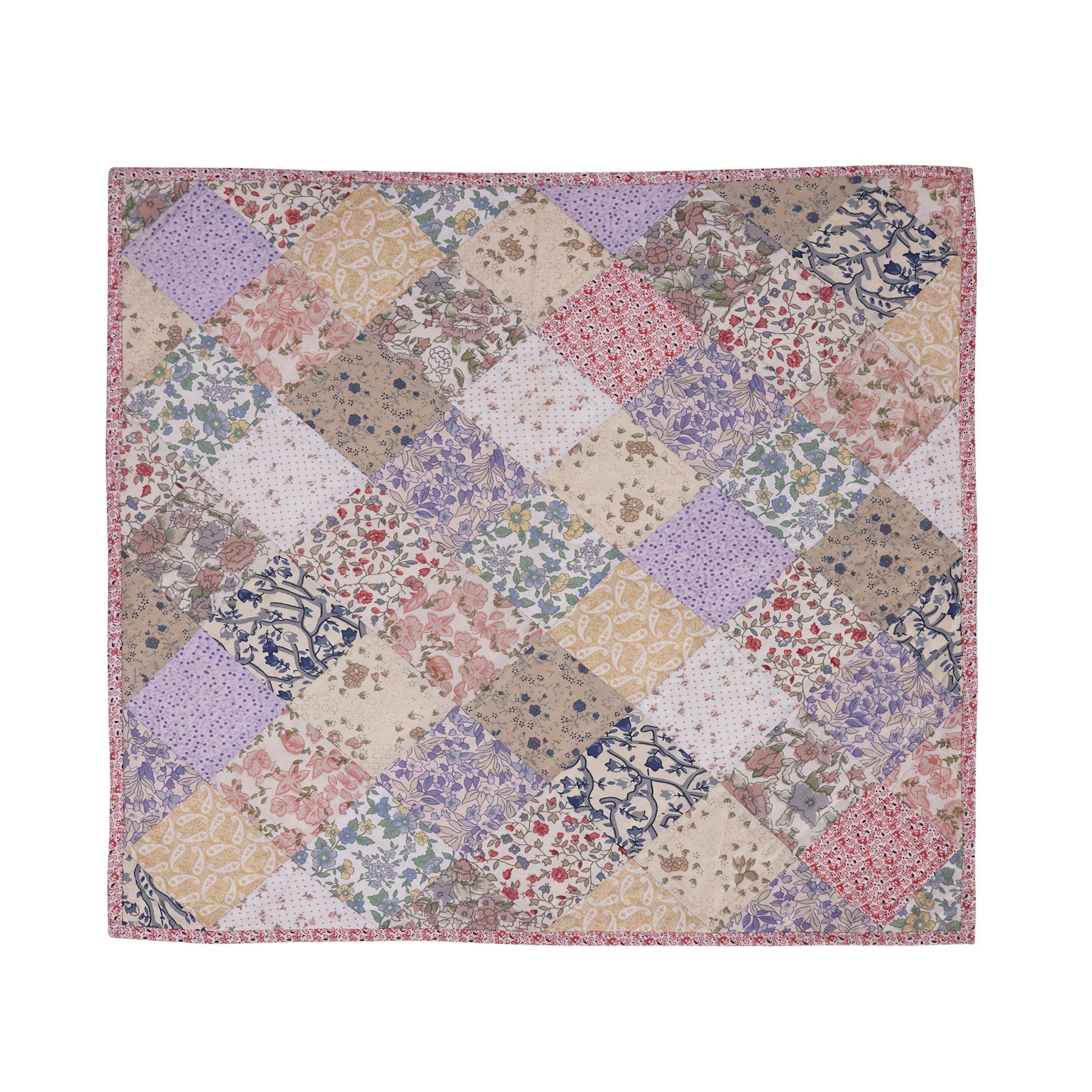 MATERIAL:100% high quality cotton fabric with mix prints cotton fabrics. Have small patches and pieced together tightly to last after years of use. Padded with cotton layer for extensively quality hand quilting for durability. Reverse side is solid offwhite. View the entire calico country floral design.