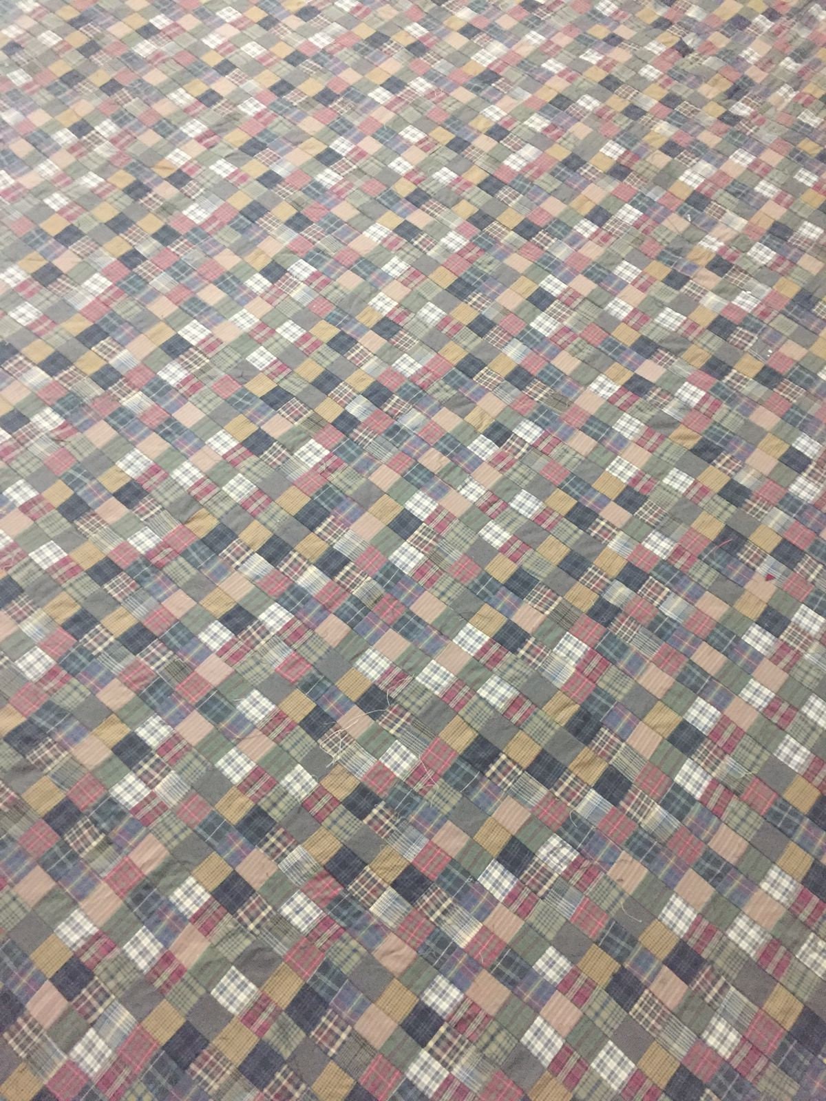 COUNTRY PATCHWORK DESIGN: Traditional style that compliments any country, rustic, or Americana home. Mix plaid cotton fabrics. Have small patches and pieced together tightly to last after years of use. Padded with cotton layer for extensively quality hand quilting for durability. Reverse side is solid khaki. View the entire quilted square design.