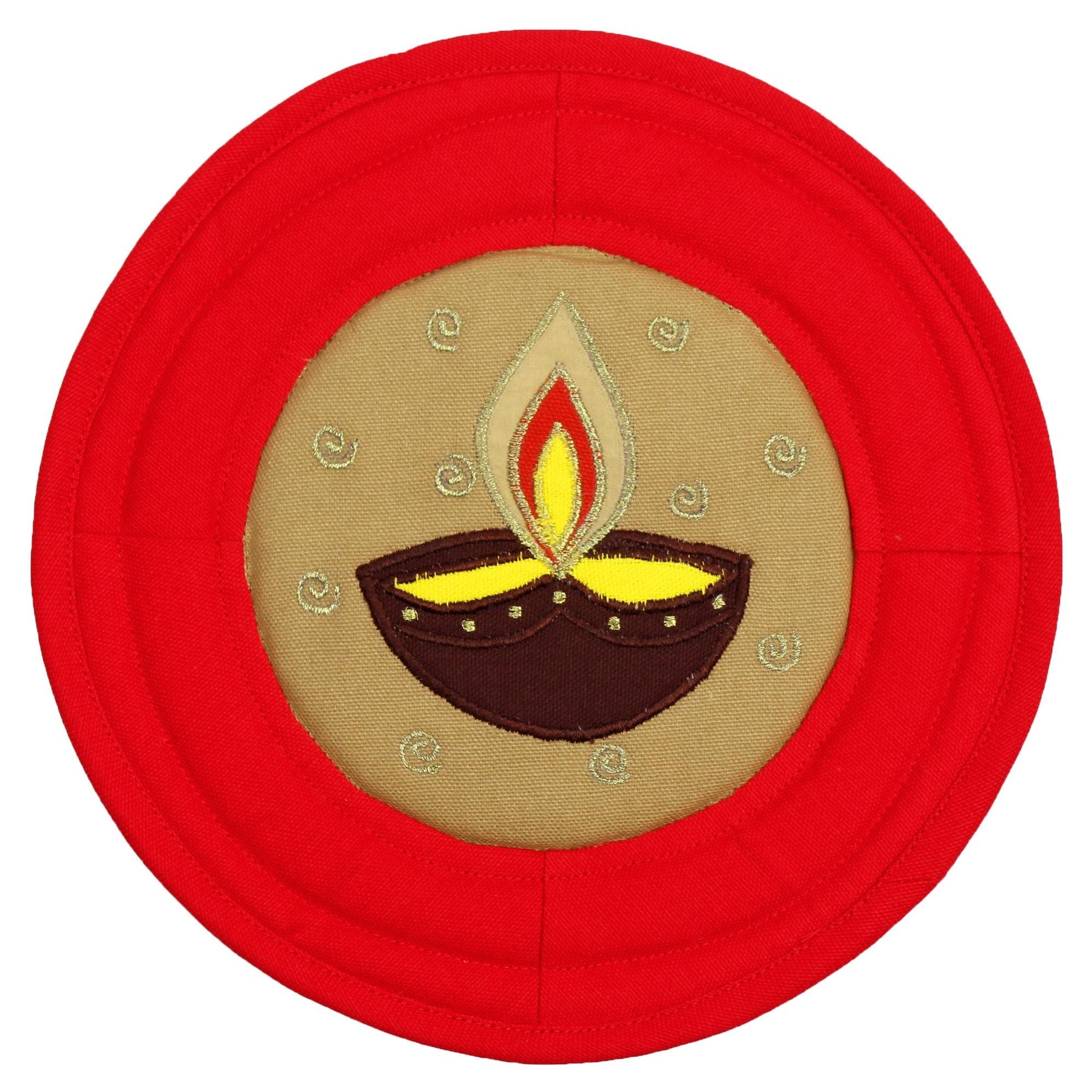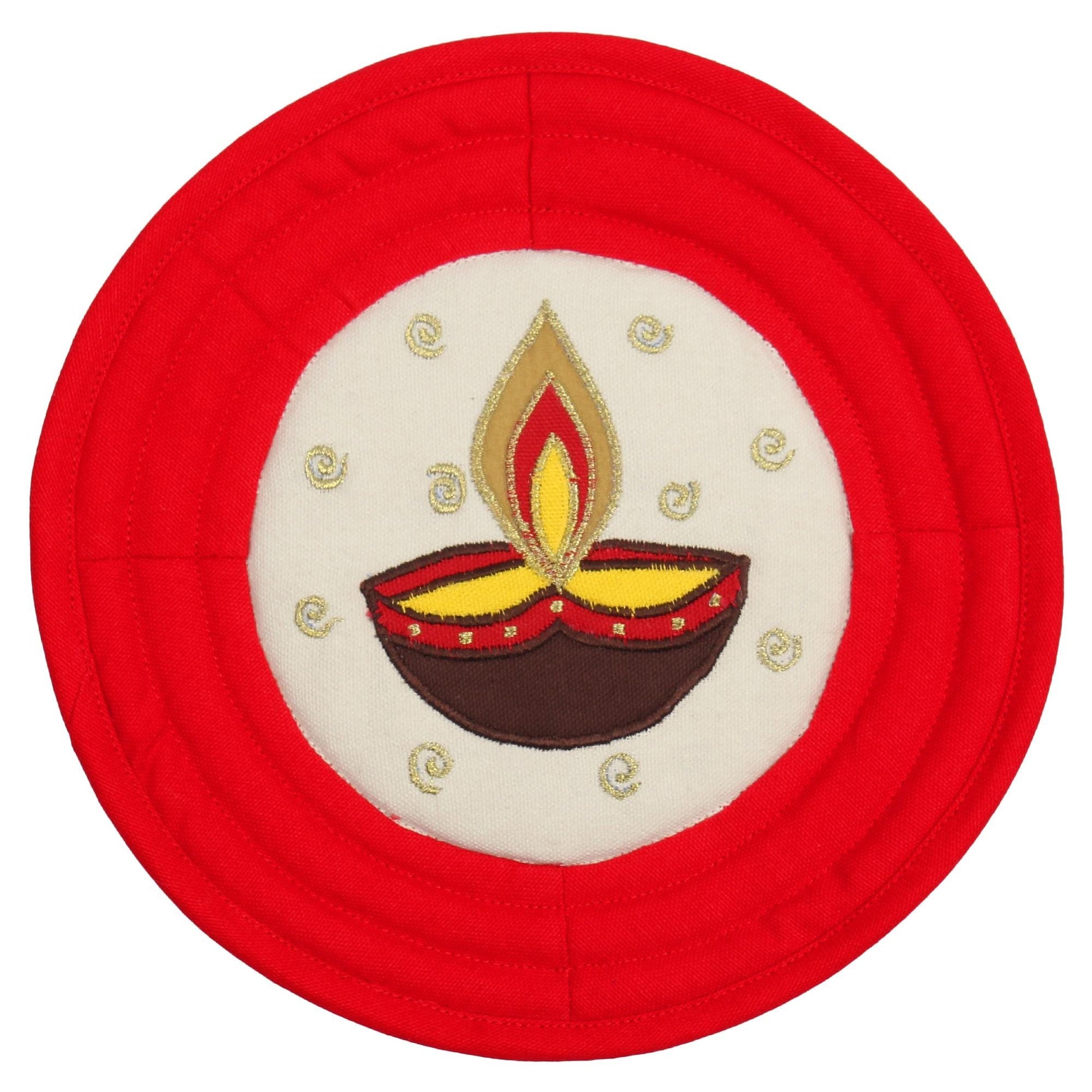 Quilted cotton Pot Holder/Table topper/hot pad/placemat patchwork embroidered Country anokhi diya 9"x9" by HOME HEART Brands( Made in India)