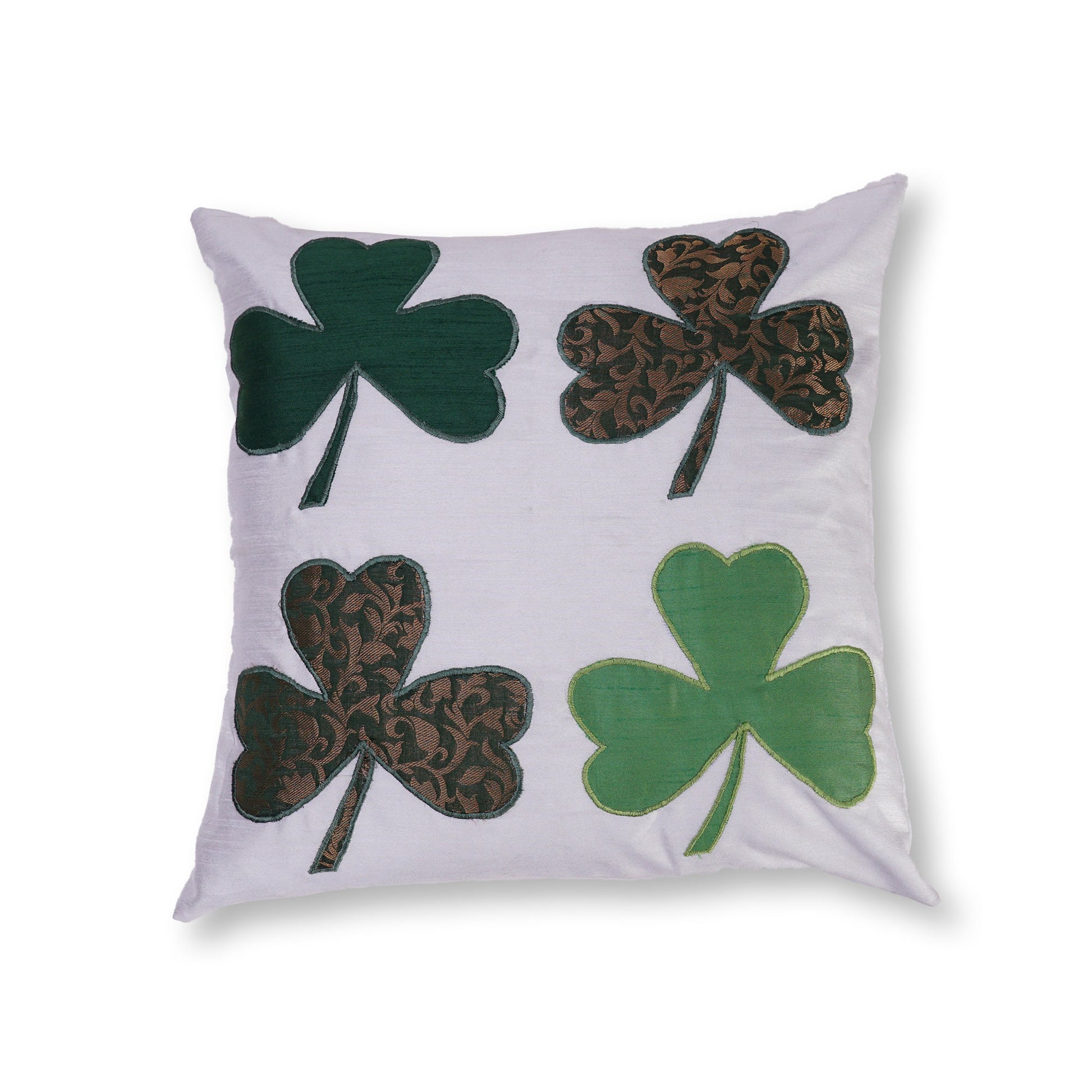 MATERIAL:100% high quality DUPIONI SILK & POLY JACQUARD Print fabrics. Have small patches and pieced and embroidered together tightly to last after years of use. Padded with polyfill layer for extensively quality quilting for durability. Reverse side is solid offwhite dupioni silk. View the entire st patrics day design.