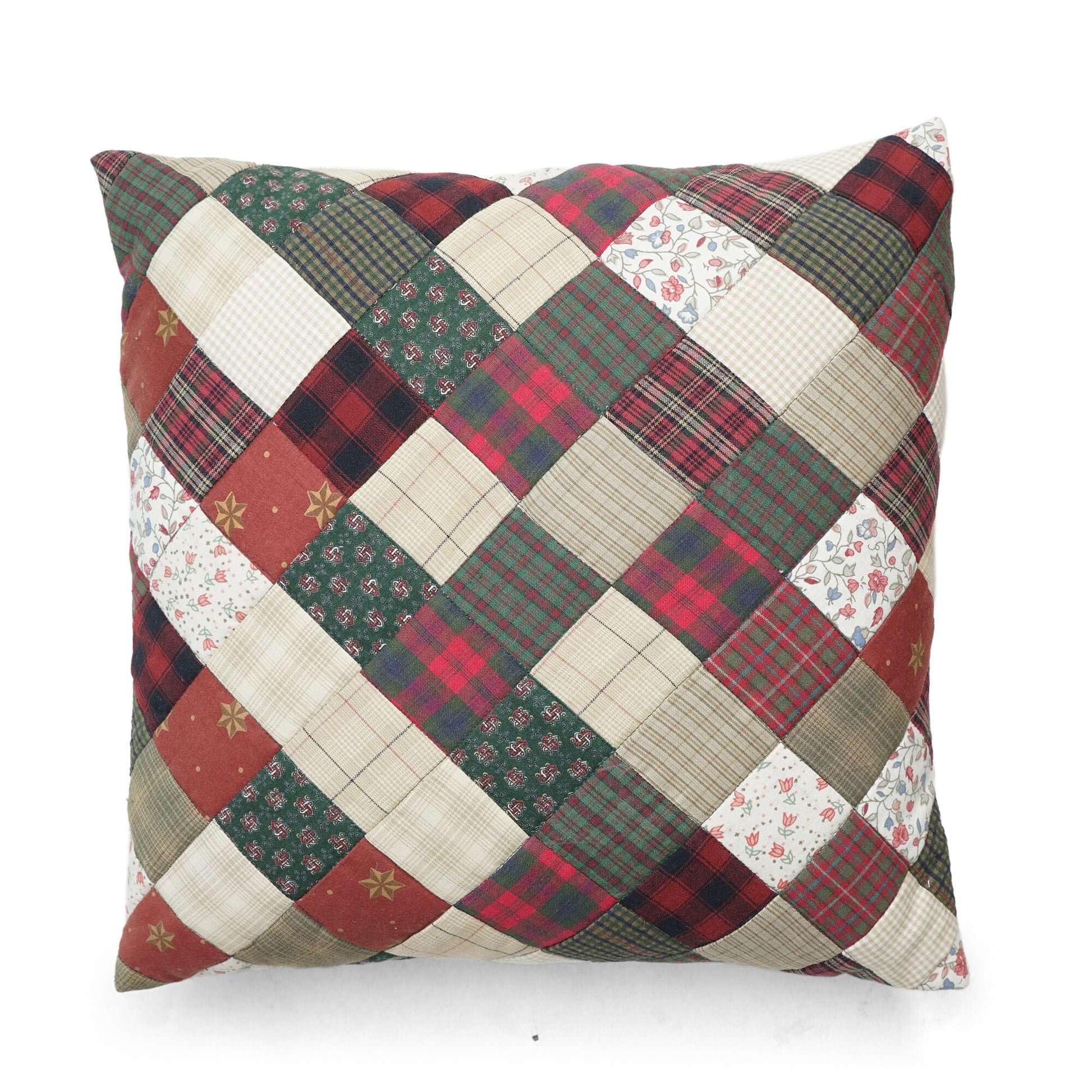 Quilted patchwork pillow cover, cushion cover, pillow Calico Country Floral & plaid cotton by HOME HEART Brands(made in India)