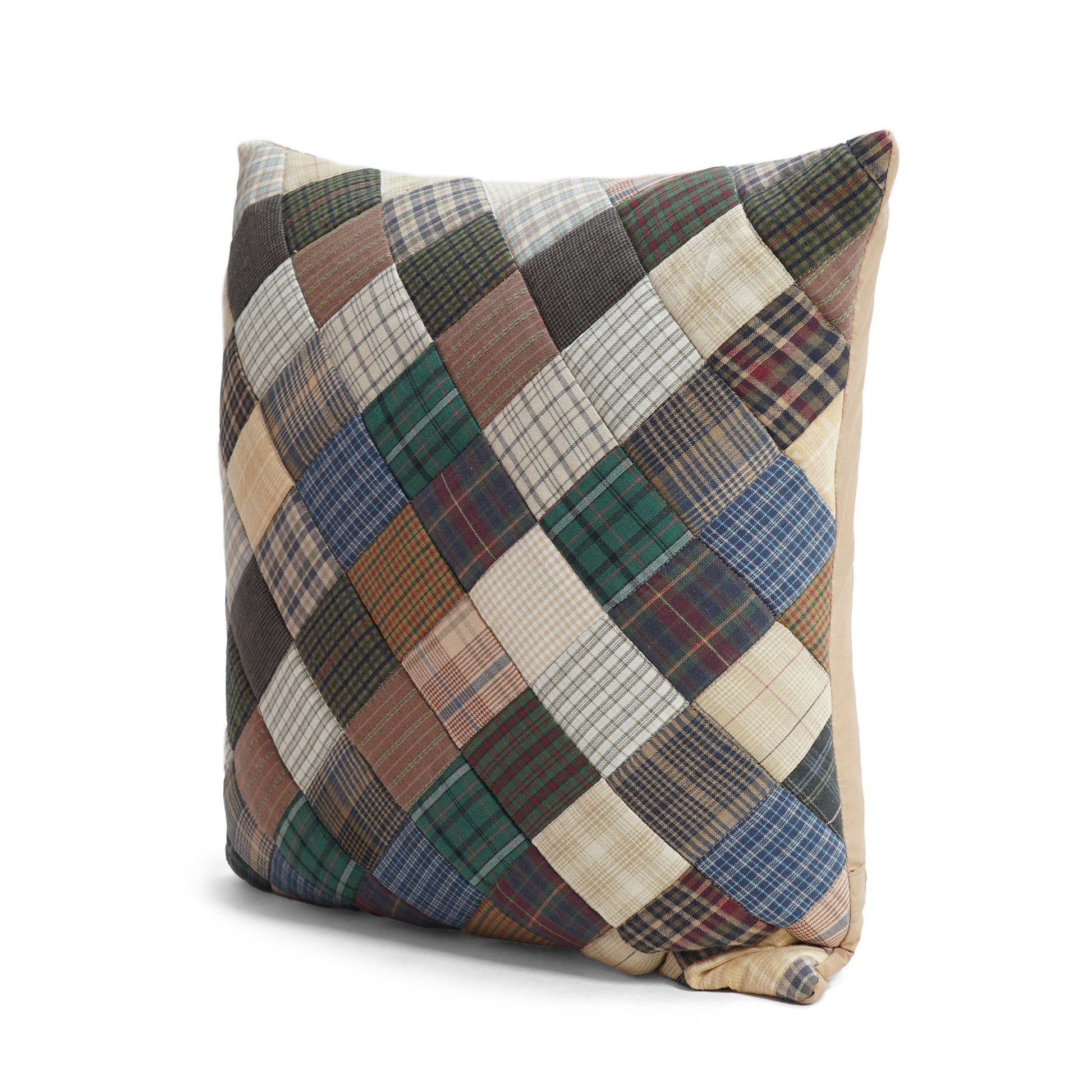 MATERIAL:100% high quality cotton fabric with Blue, navy, teal and brown tones and beige plaid cotton fabrics. Have small patches and pieced together tightly to last after years of use. Padded with polyfill layer for extensively quality quilting for durability. Reverse side is solid khaki.