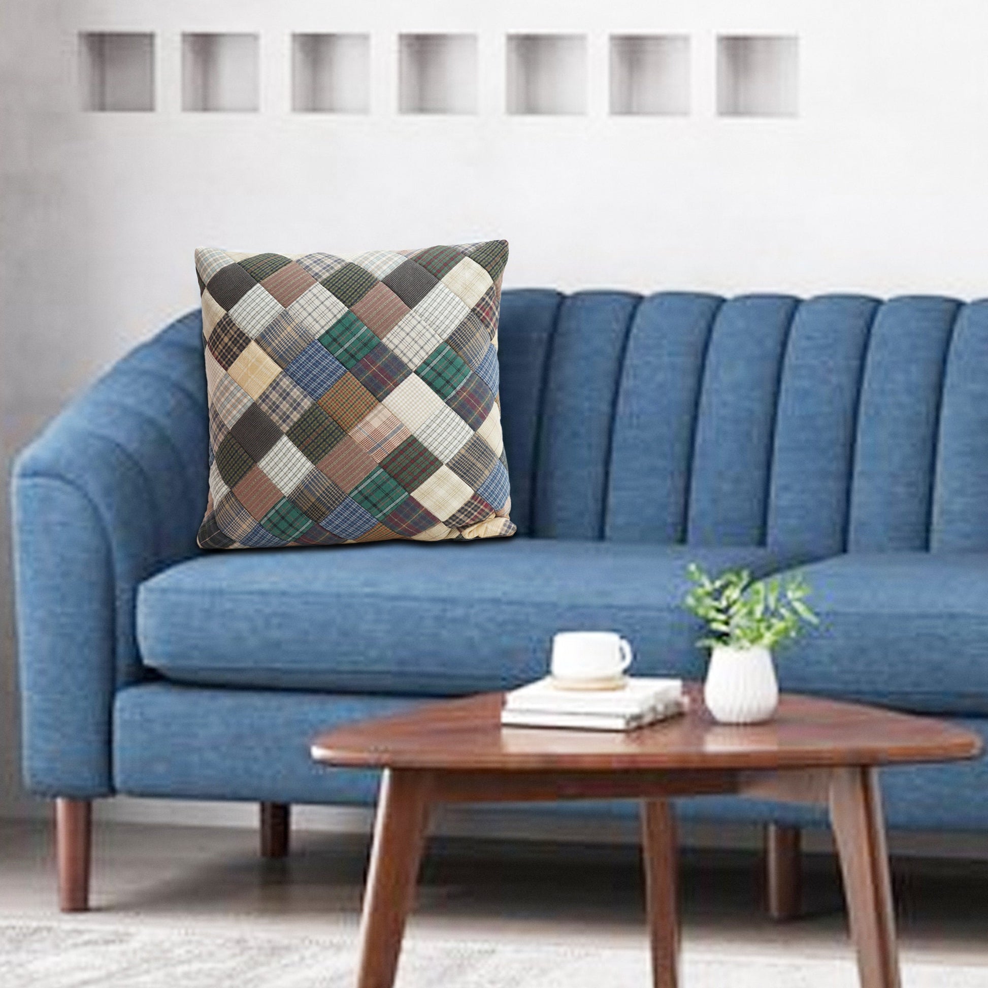 Quilted patchwork pillow cover, cushion cover, pillow Calico Country Primitive plaid cotton fabric by HOME HEART Brands(made in India)