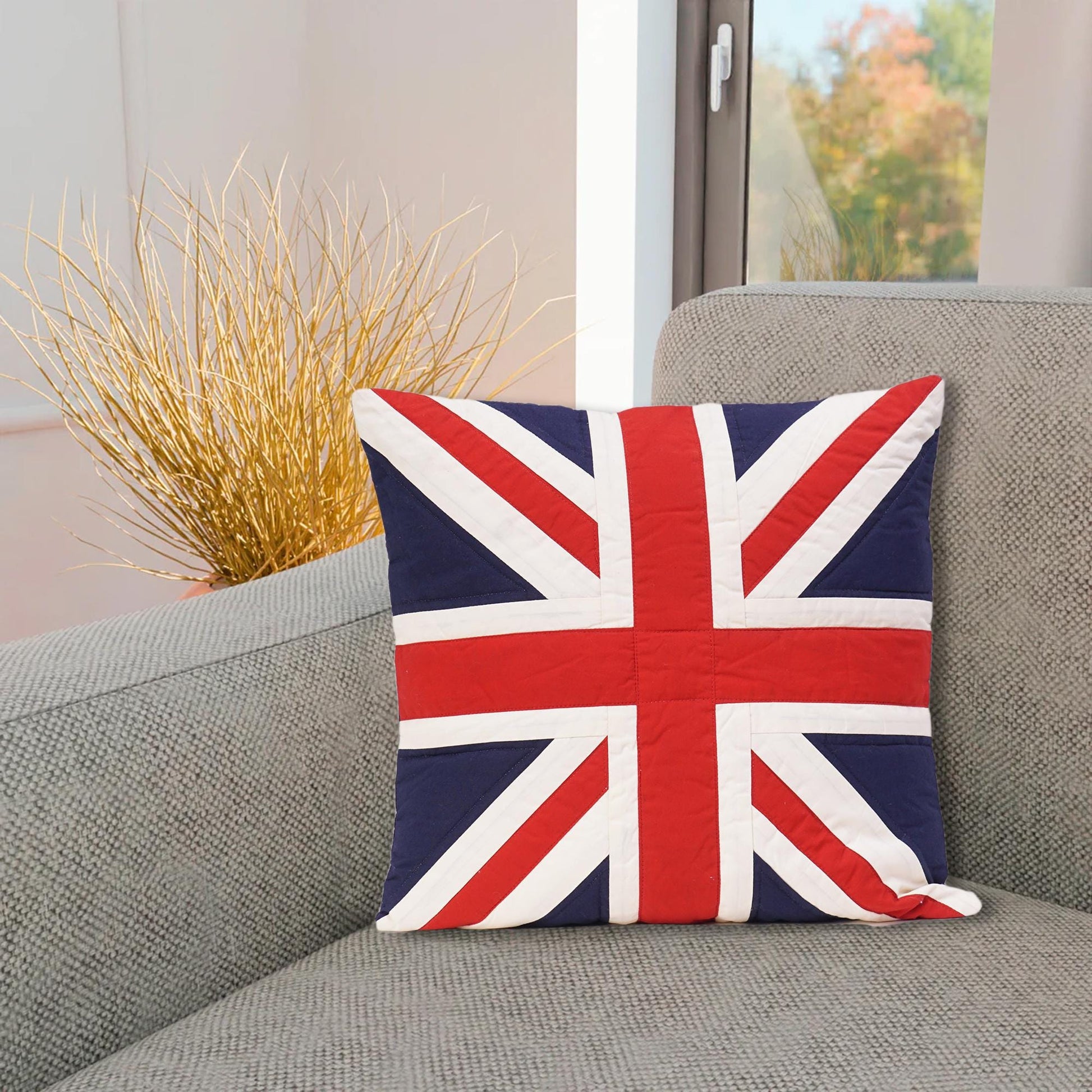 Quilted patchwork Union Jack pillow cover, cushion cover, not include pillow insert Calico cotton fabric by HOME HEART Brands(made in India)