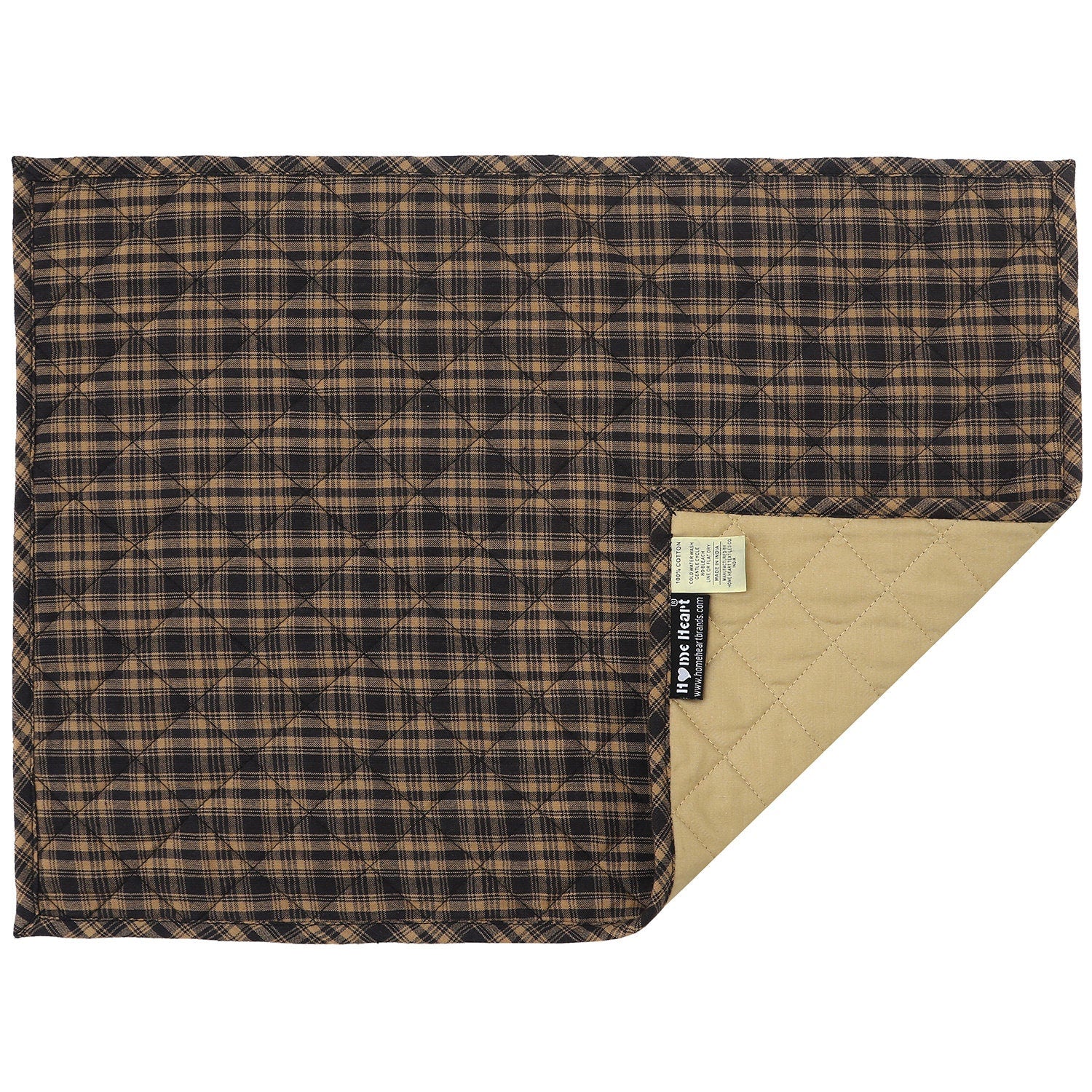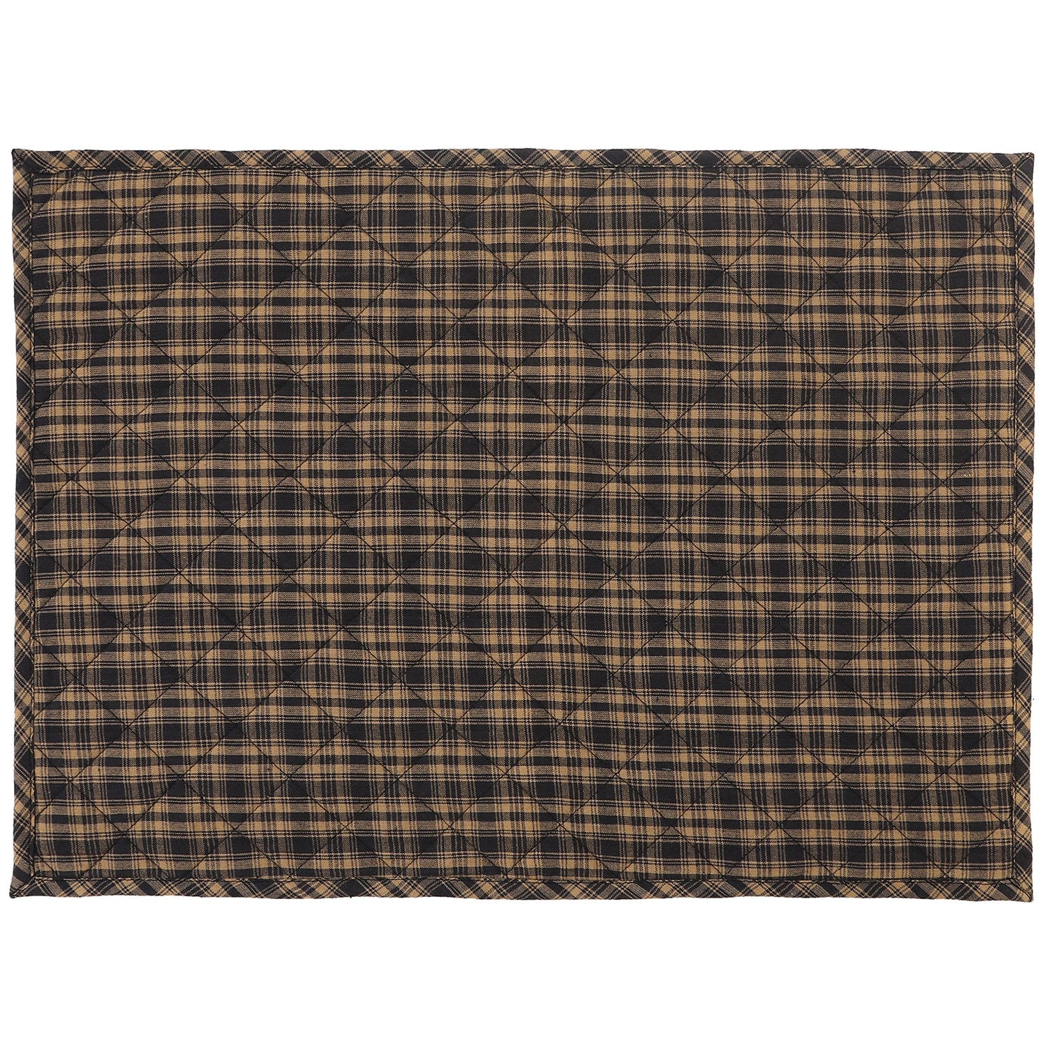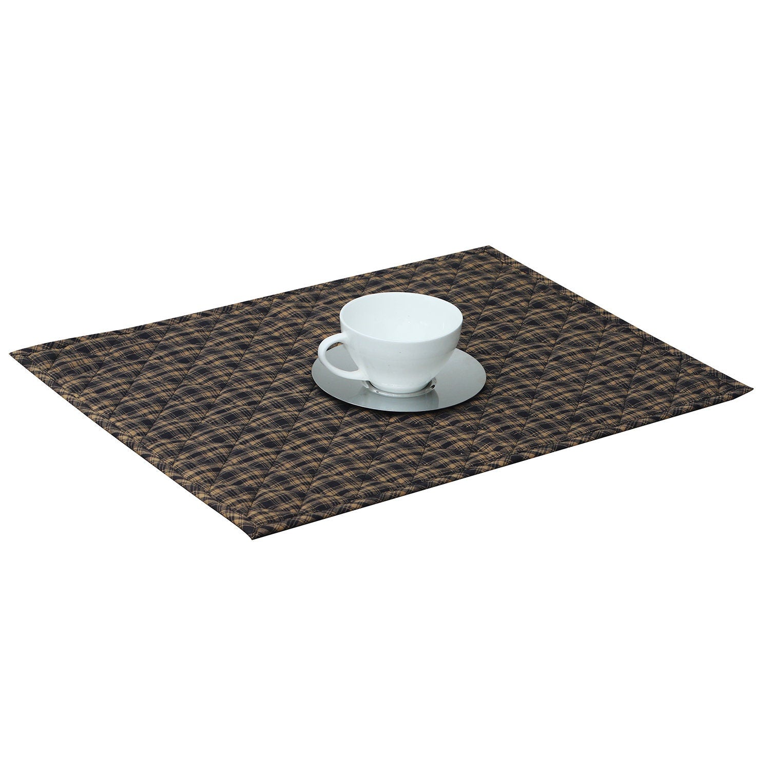 Quilted PLACEMAT Black/Beige Country Plaid Country Plaid 14"X19" by HOME HEART Brands/Tablemat
