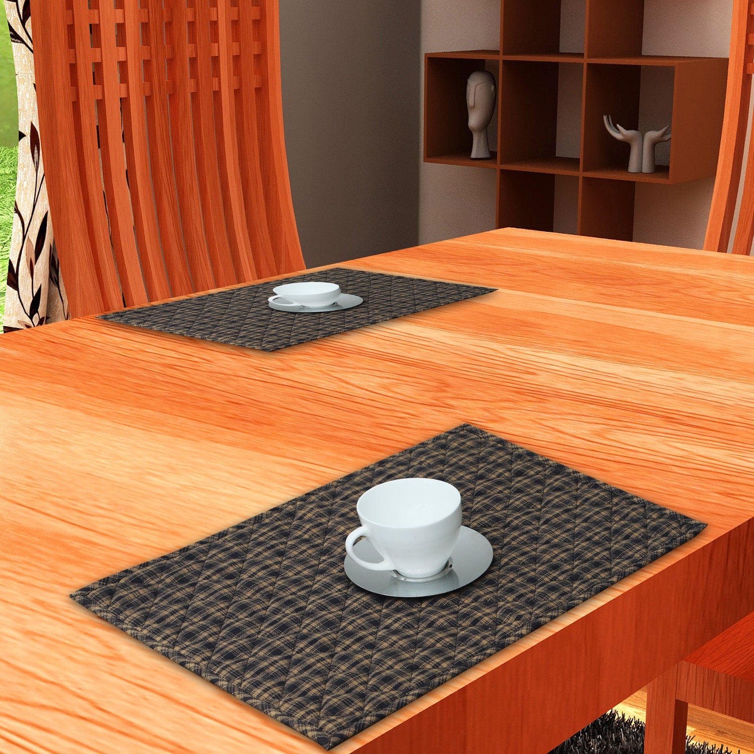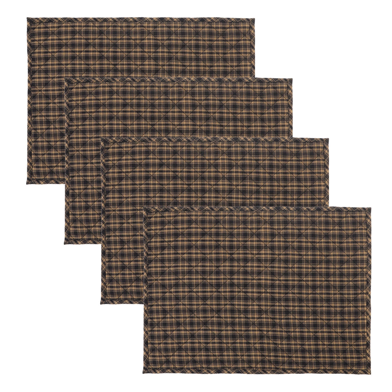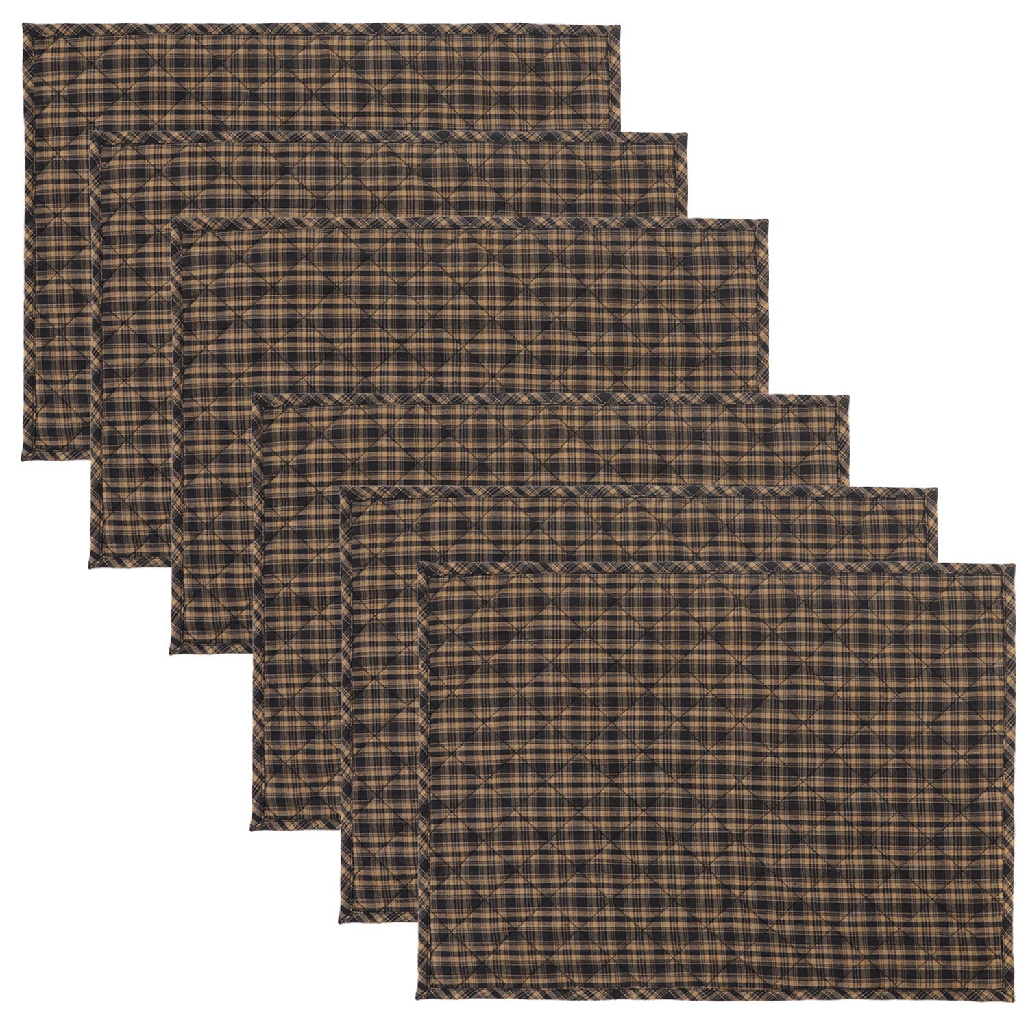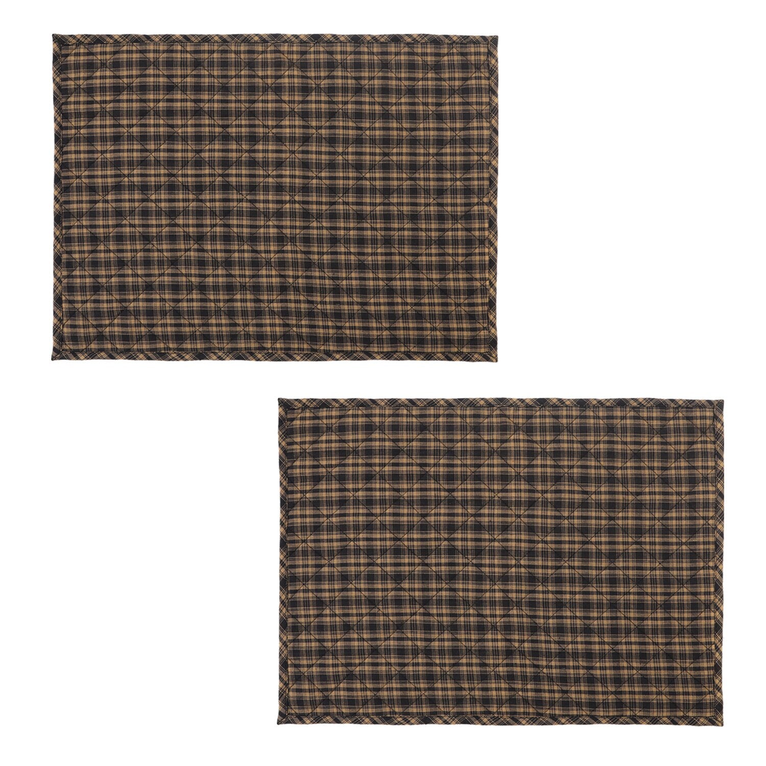 Quilted PLACEMAT Black/Beige Country Plaid Country Plaid 14"X19" by HOME HEART Brands/Tablemat