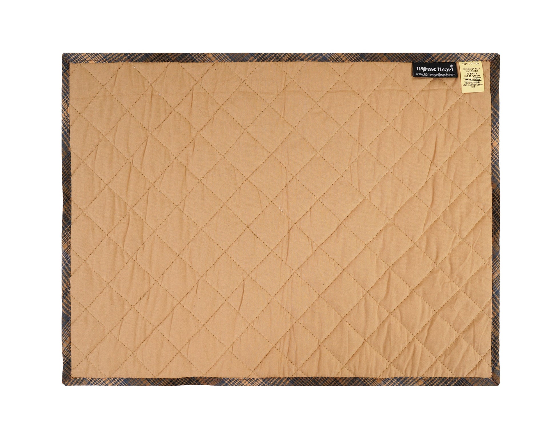 Quilted PLACEMAT Blue Beige Country Plaid 14"X19" by HOME HEART Brands/Tablemat