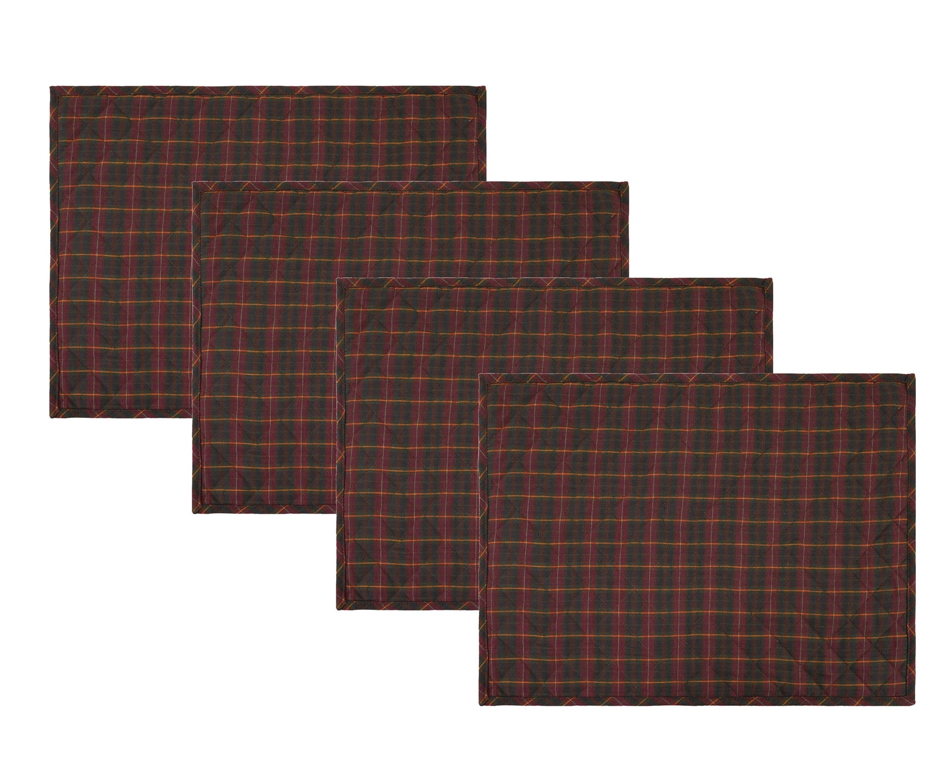Quilted PLACEMAT Burgundy Green Country Plaid 14"X19" by HOME HEART Brands/Tablemat