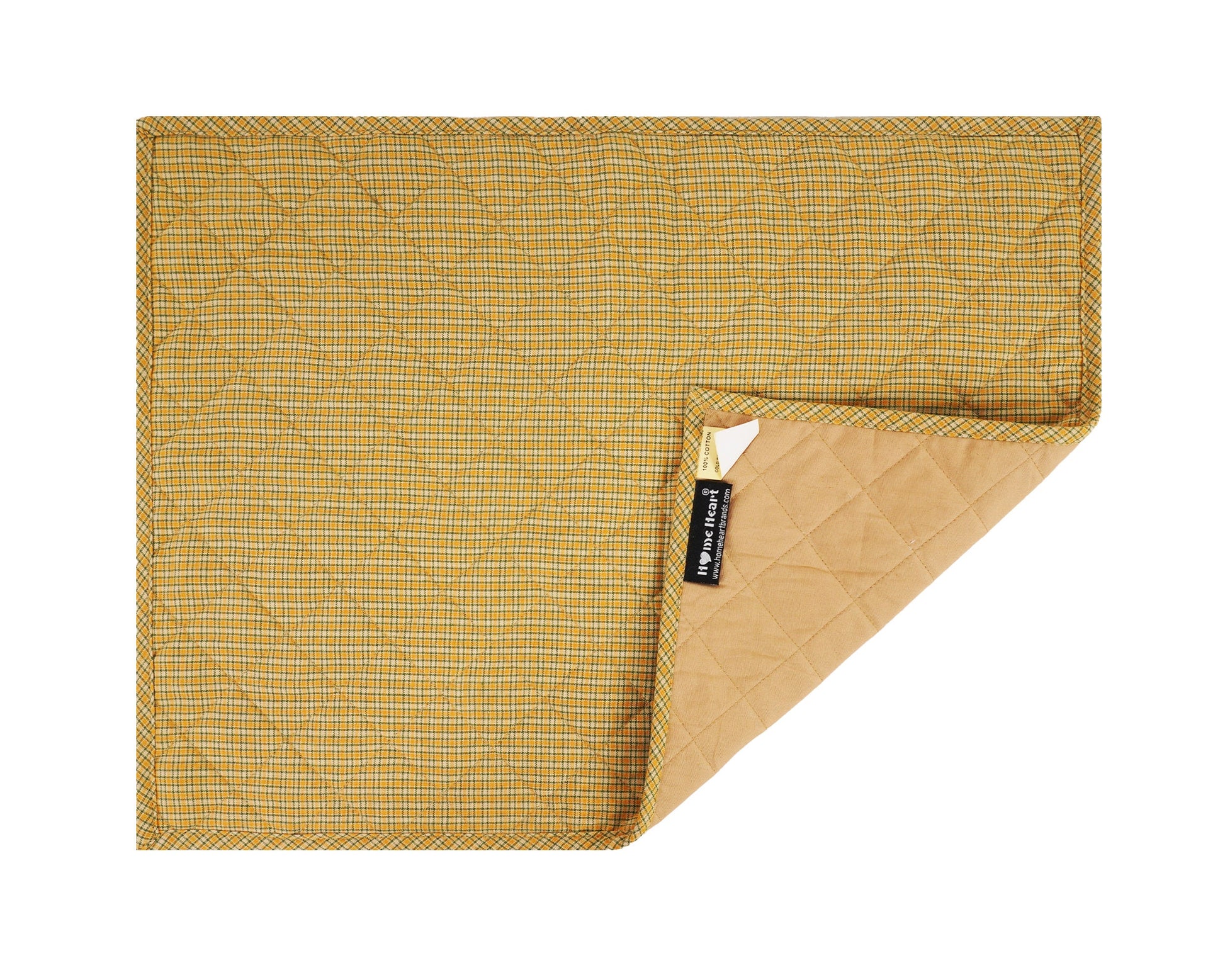 Quilted PLACEMAT pumpkin yellow Country Plaid 14"X19" by HOME HEART Brands/Tablemat