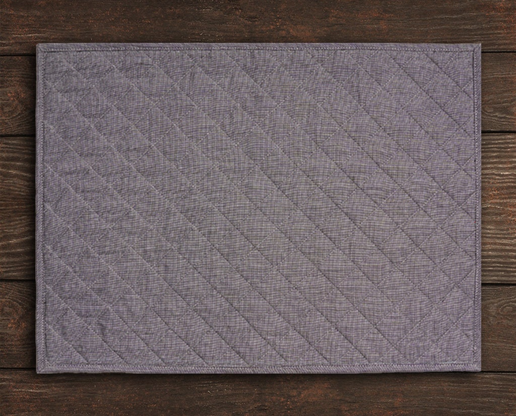 Quilted placemat table mat gray 100% cotton chambray 14"X19" by HOME HEART Brands (made in INDIA)