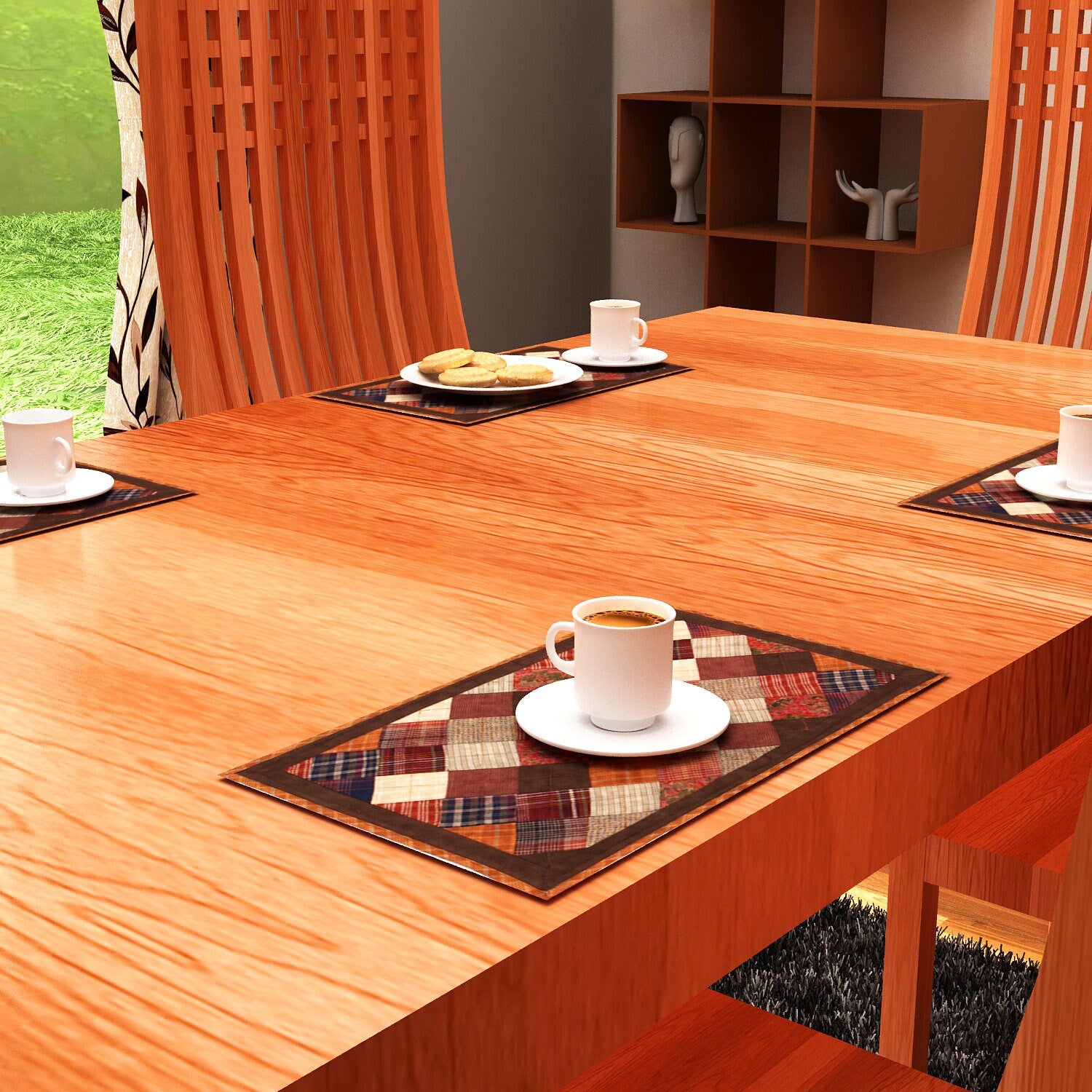 Quilted placemat & table mat patchwork autumn mix country plaid, calico print by HOME HEART Brands( made in INDIA)