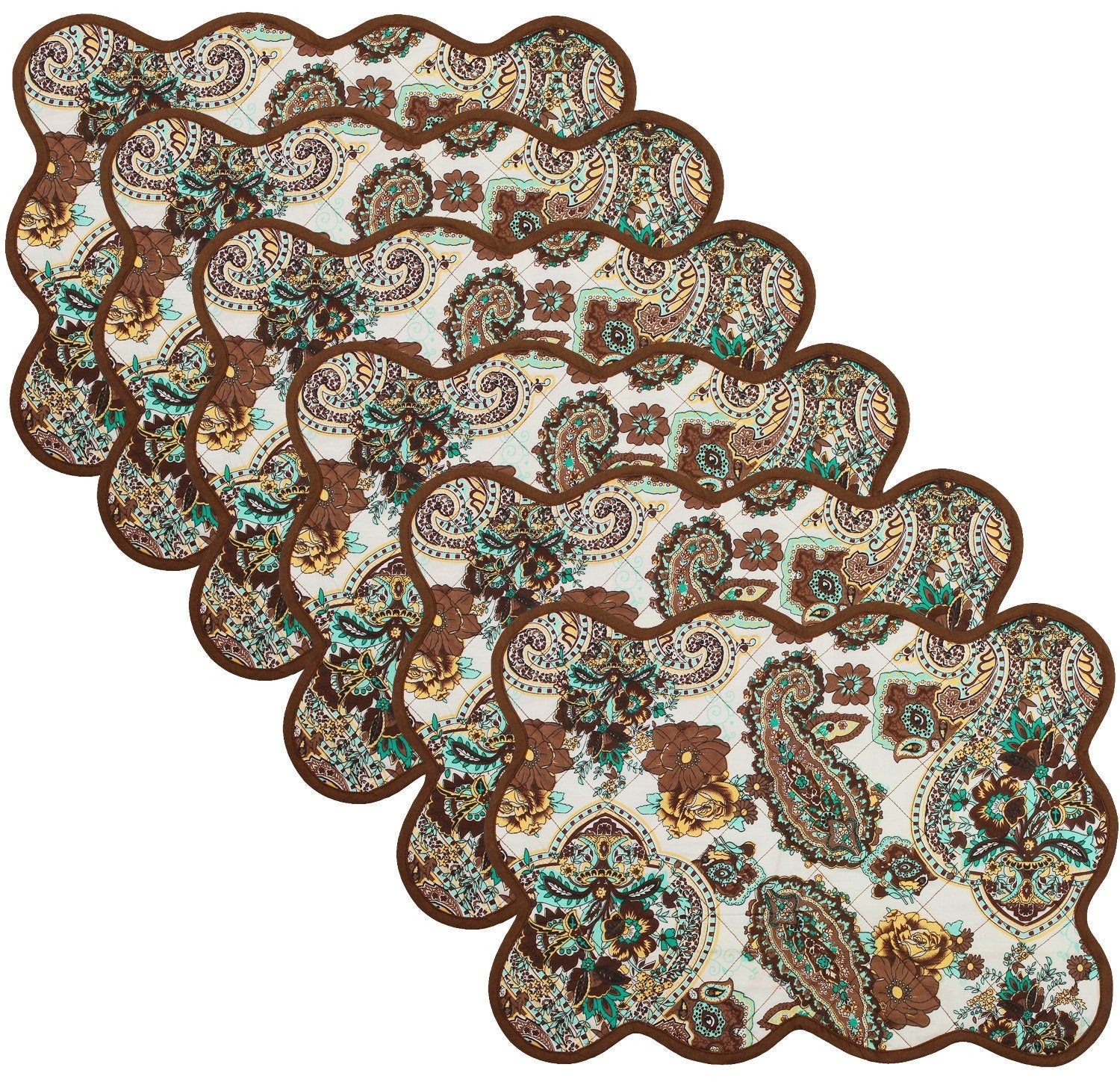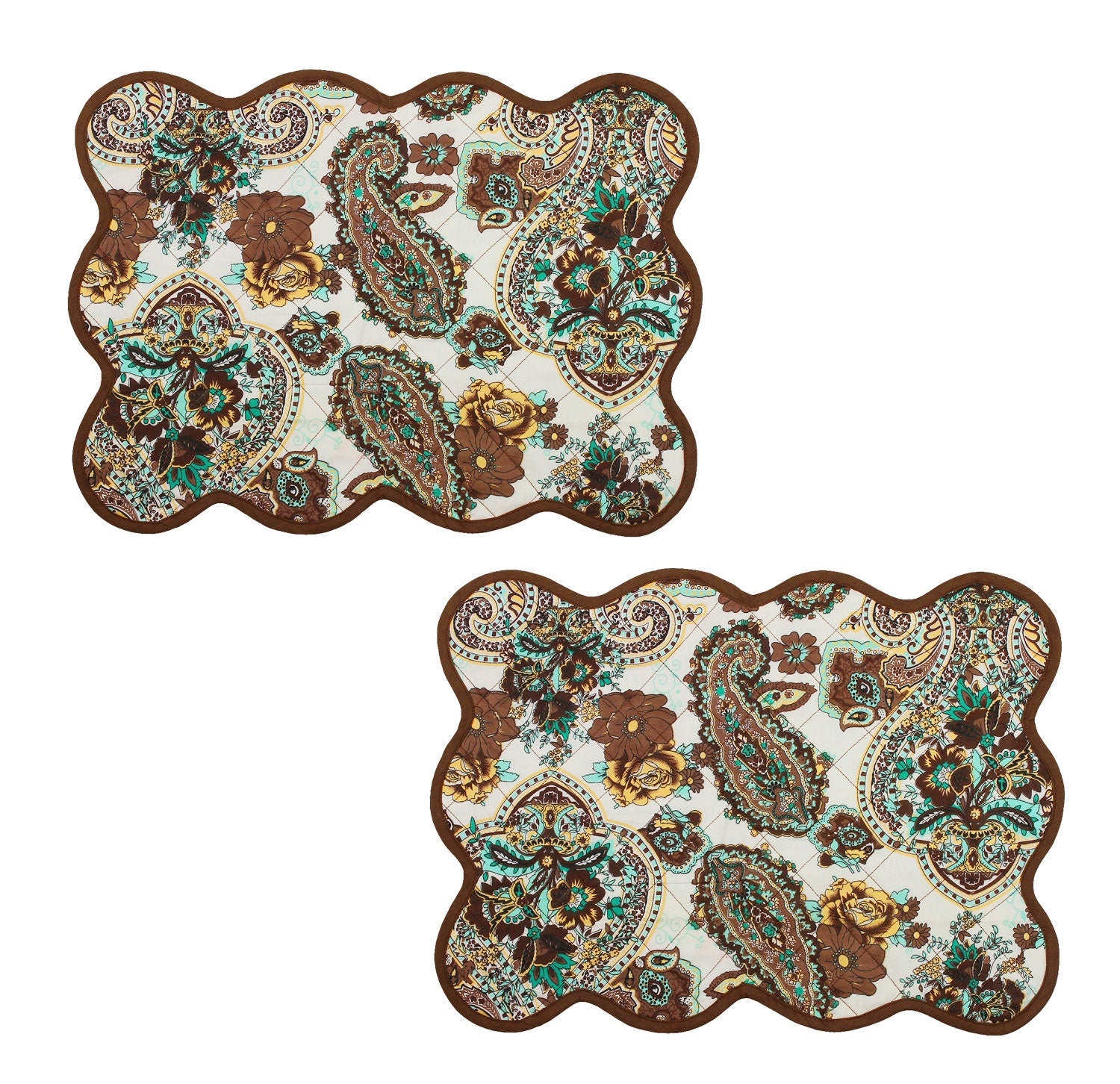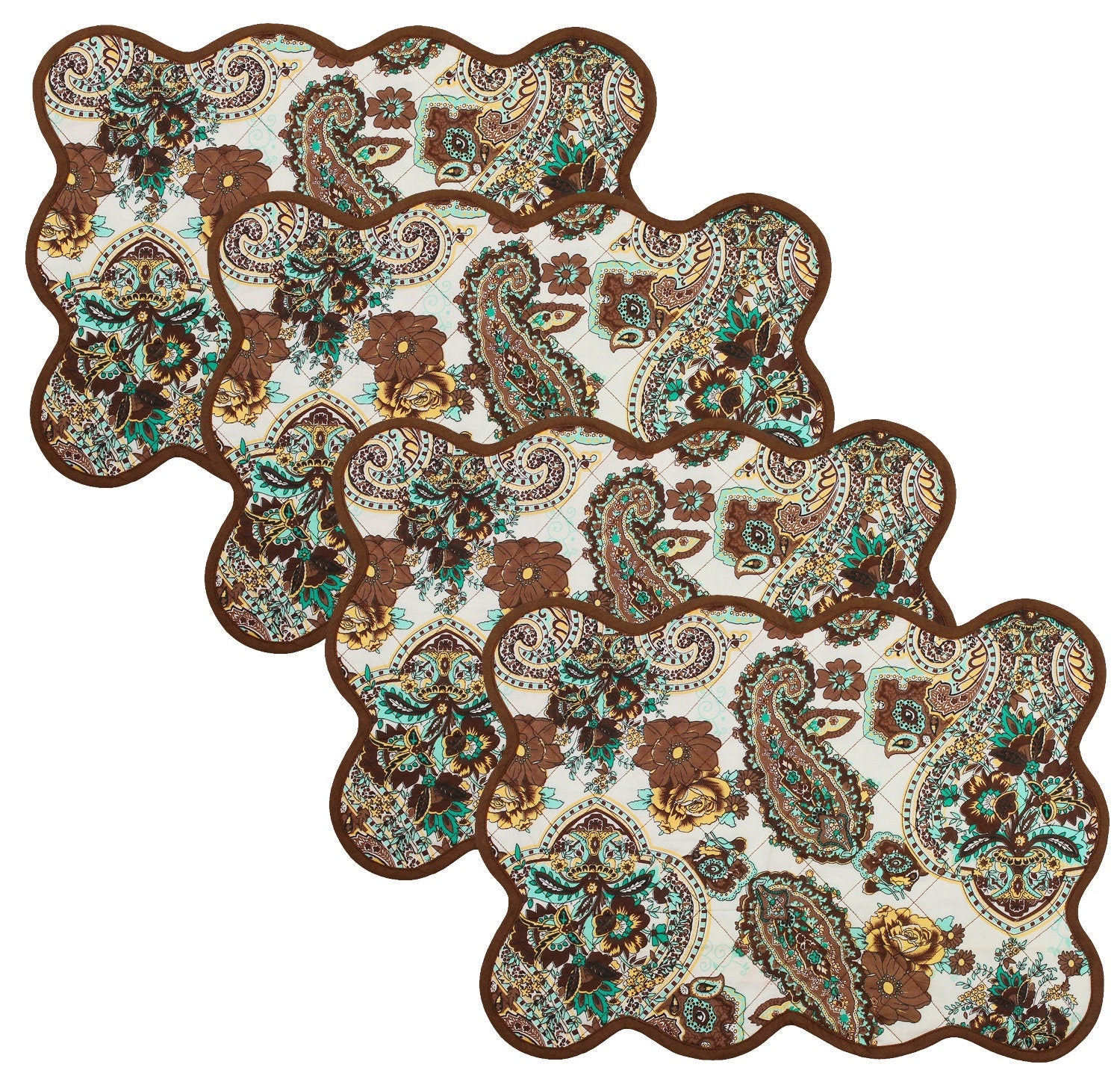 Quilted placemat, table mat & Table toppers green and gold 14"X19" by HOME HEART Brands( made in INDIA)