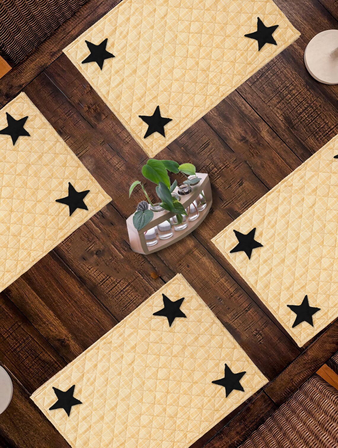 Quilted PLACEMAT & Table toppers Table mat black star embroidered gold Country Plaid 14"X19" by HOME HEART Brands(Made in India)