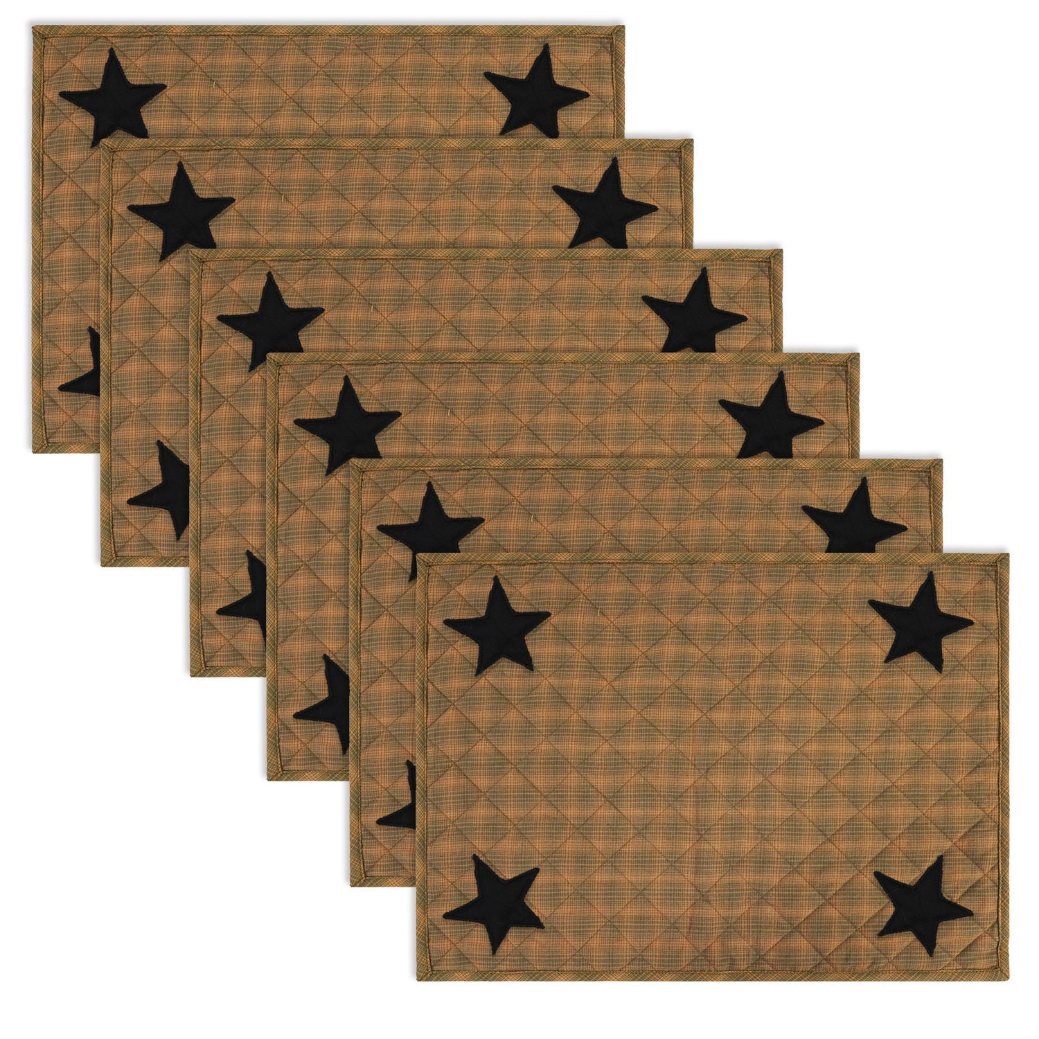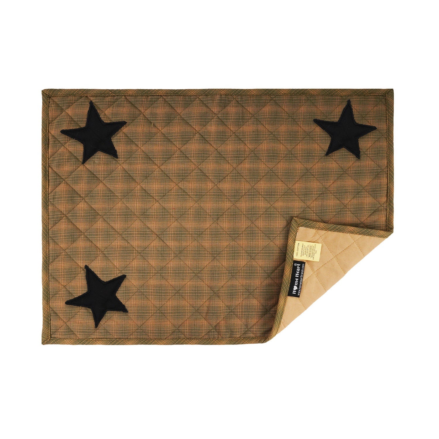 MATERIAL:100% high quality cotton fabric with appliqued black stars. Padded with cotton layer for extensively quality quilting for durability. Reverse side is solid khaki. View the entire Black star design.