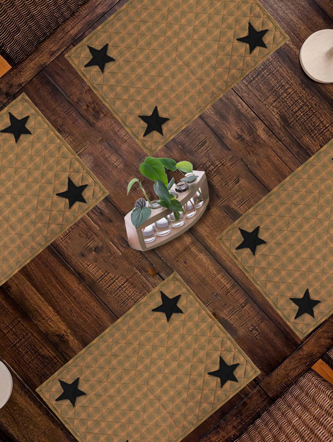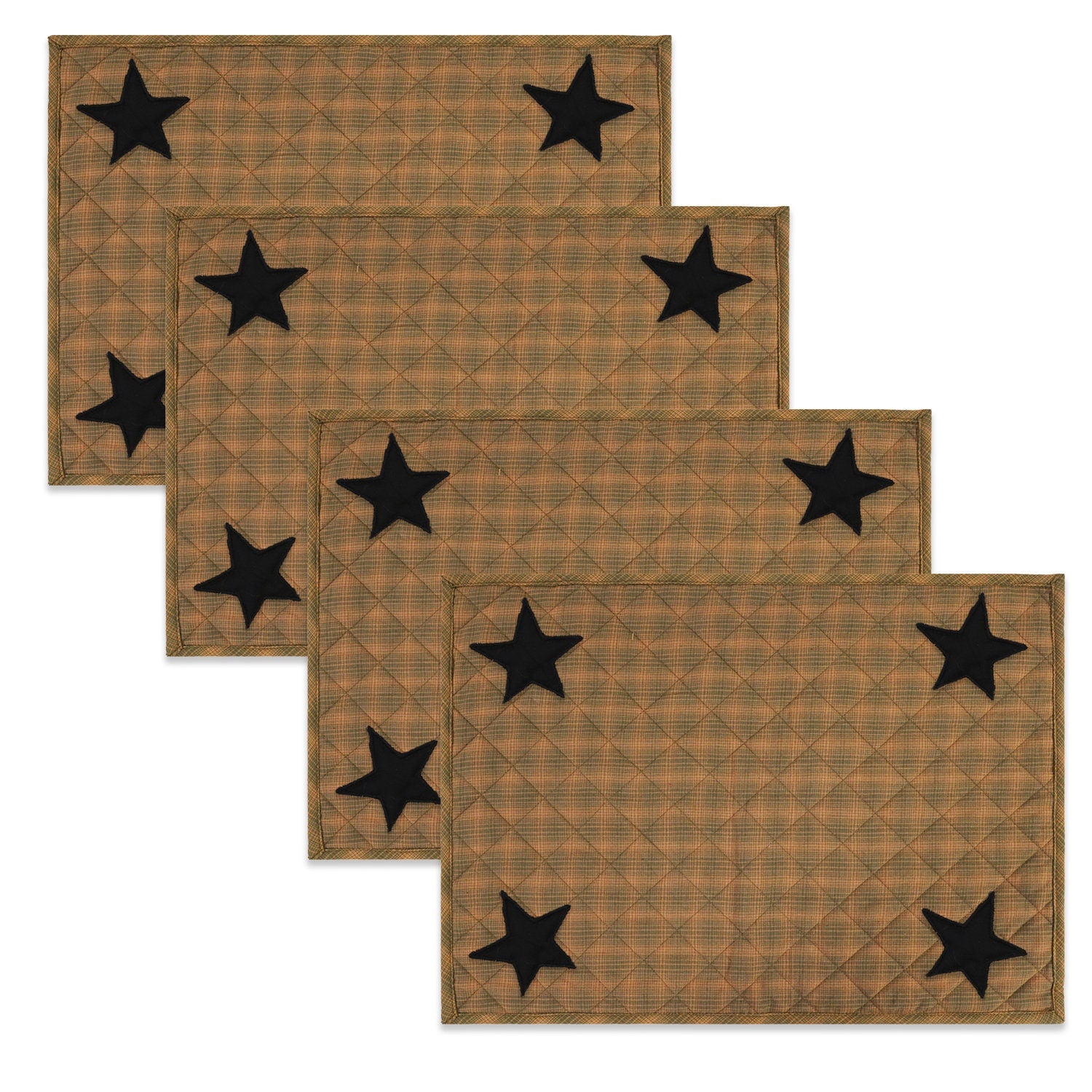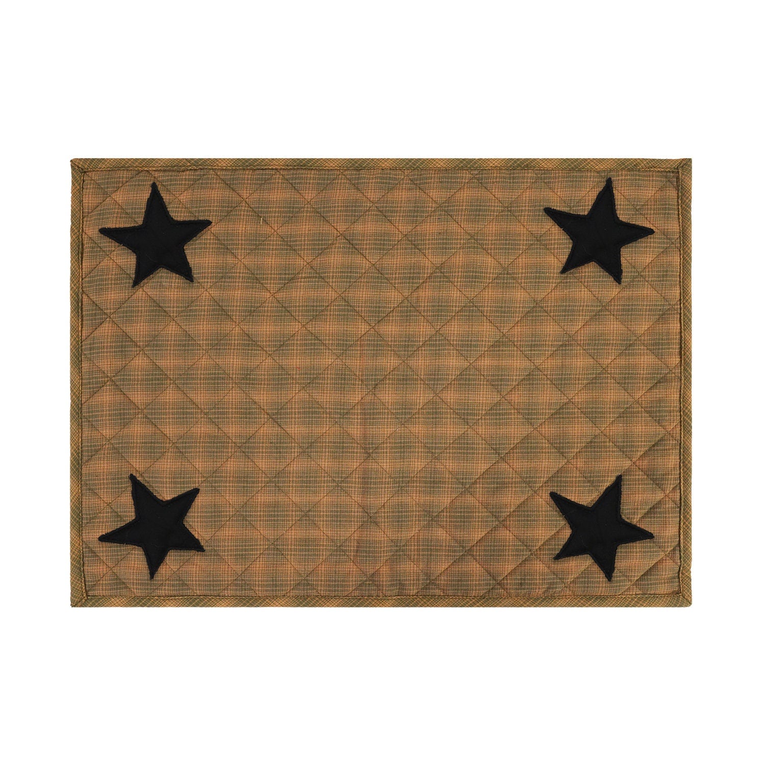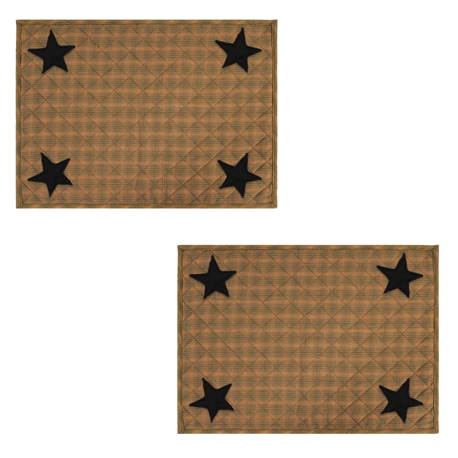 Quilted PLACEMAT & Table toppers Table mat black star embroidered green accented Country Plaid 14"X19" by HOME HEART Brands(Made in India)