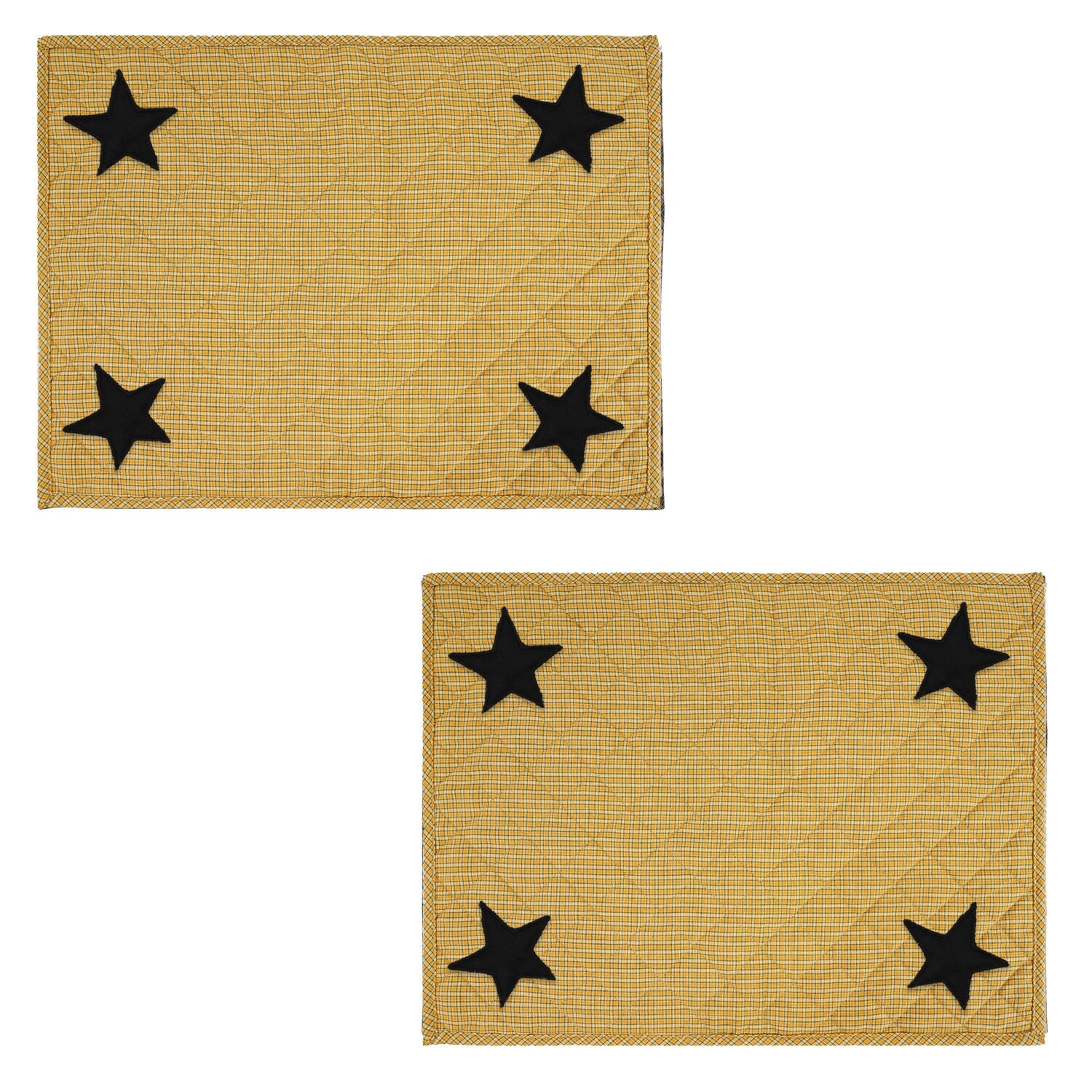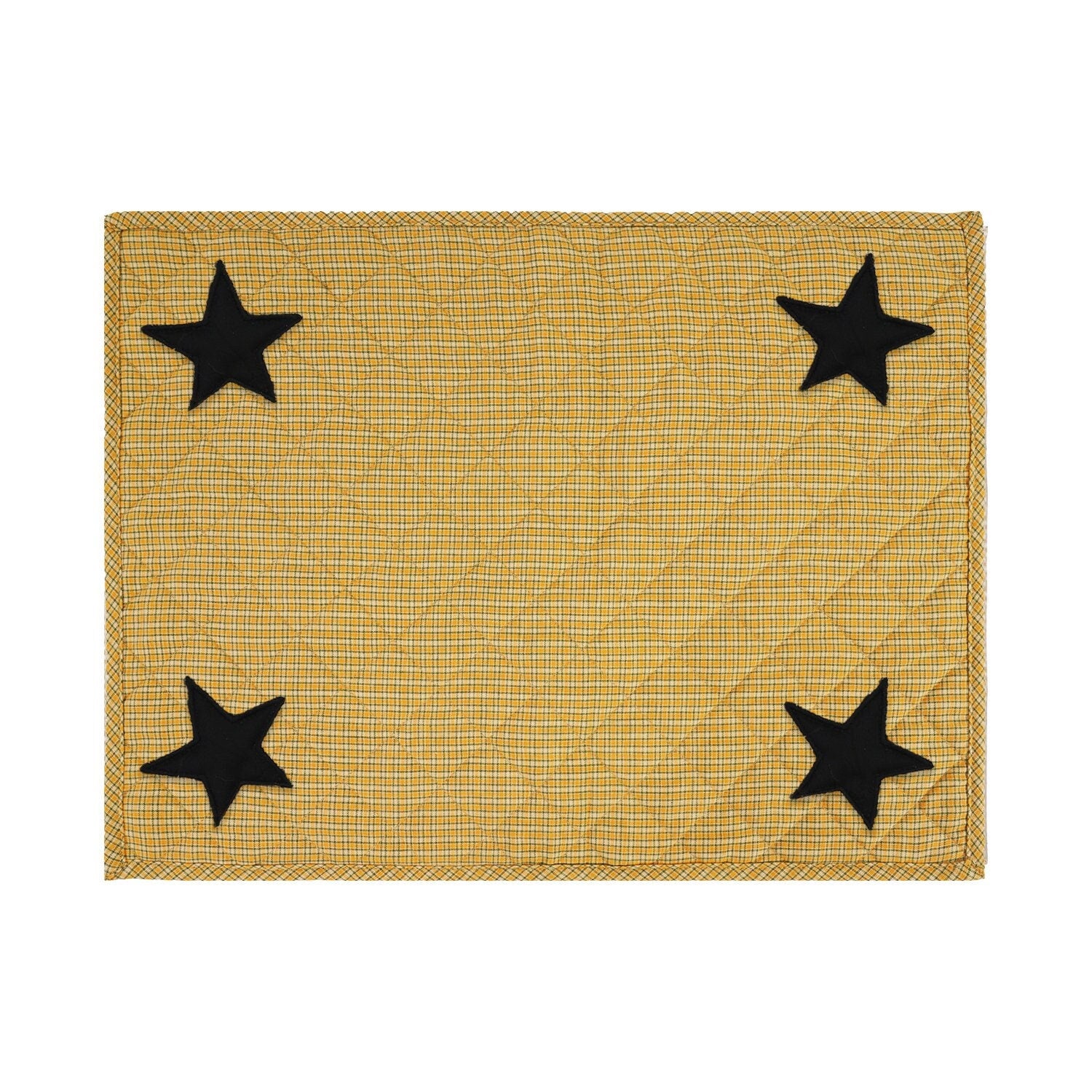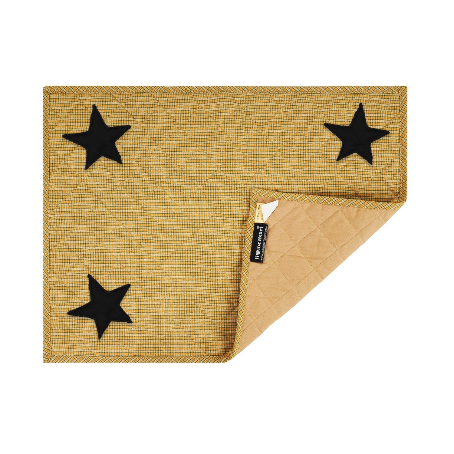 Quilted PLACEMAT & Table toppers Table mat black star embroidered halloween orange Country Plaid 14"X19" by HOME HEART Brands(Made in India)