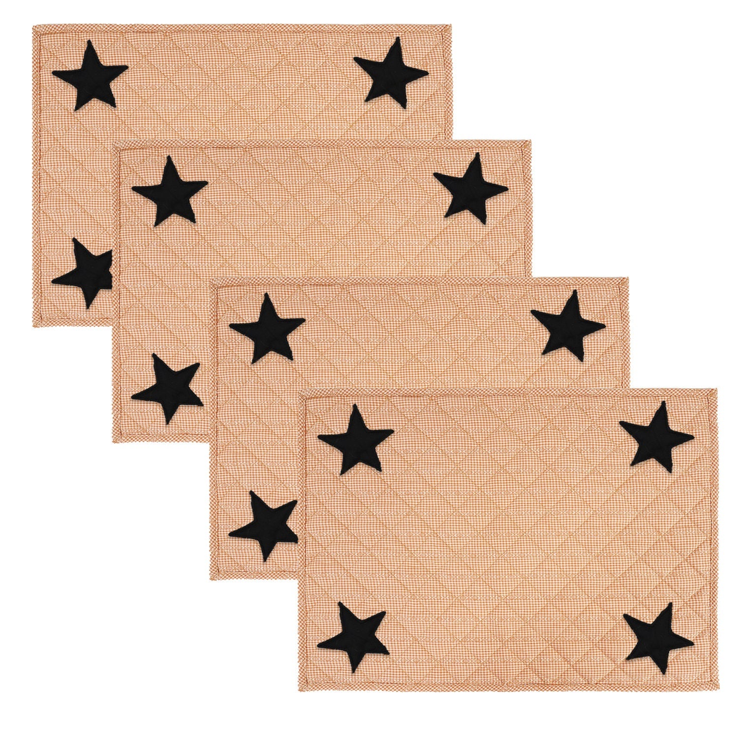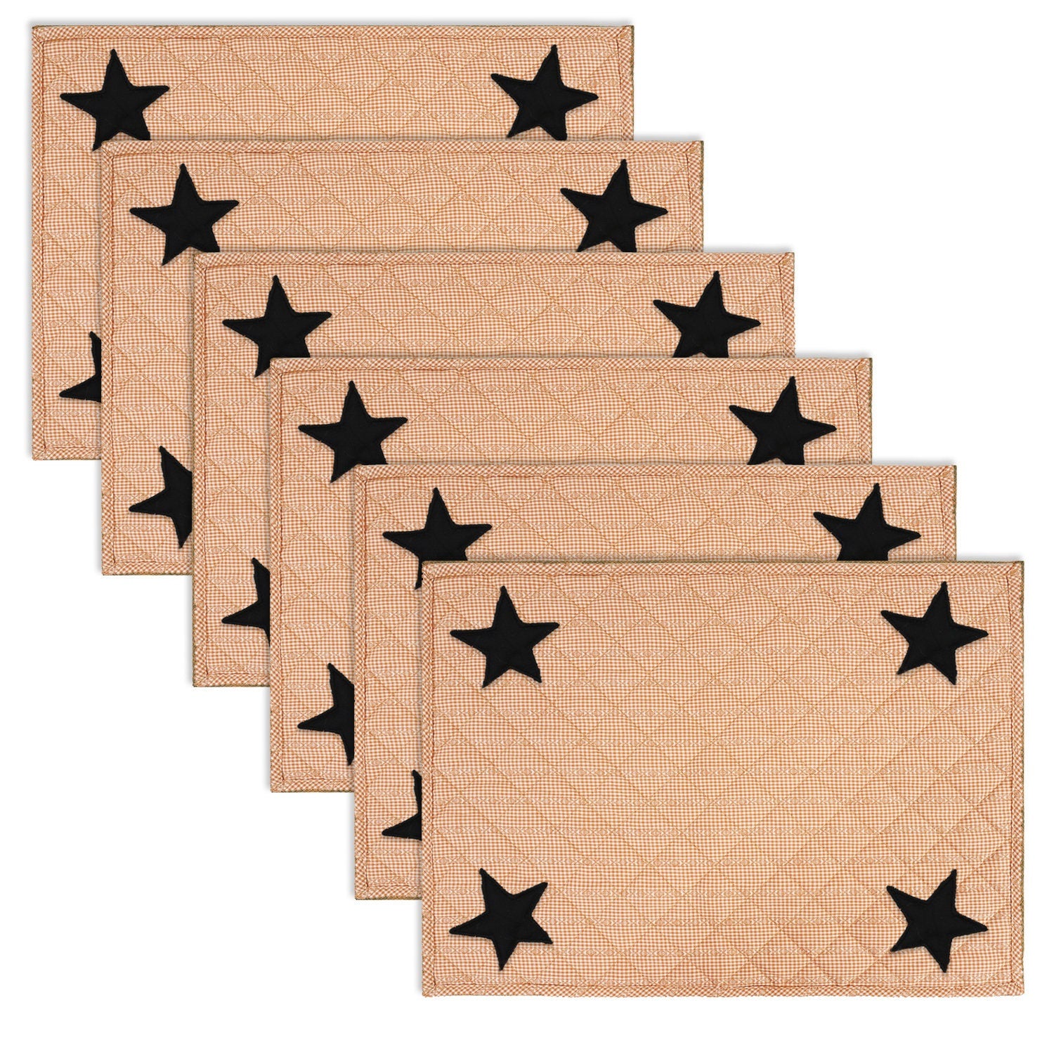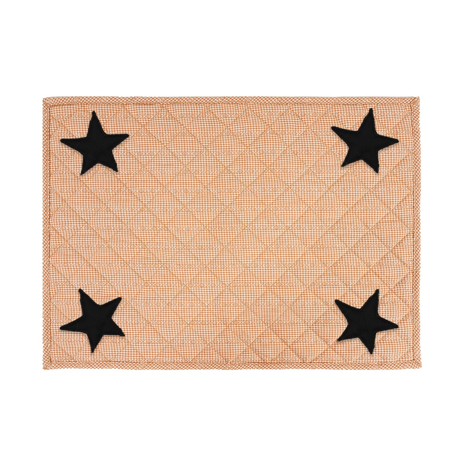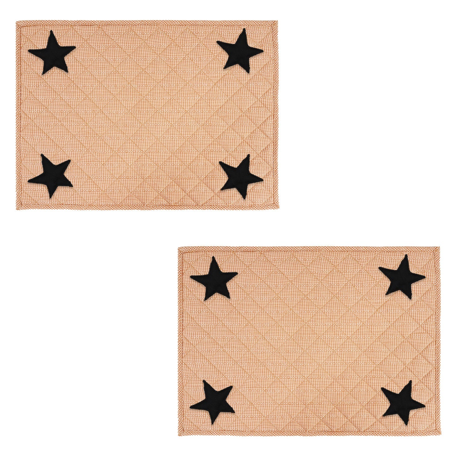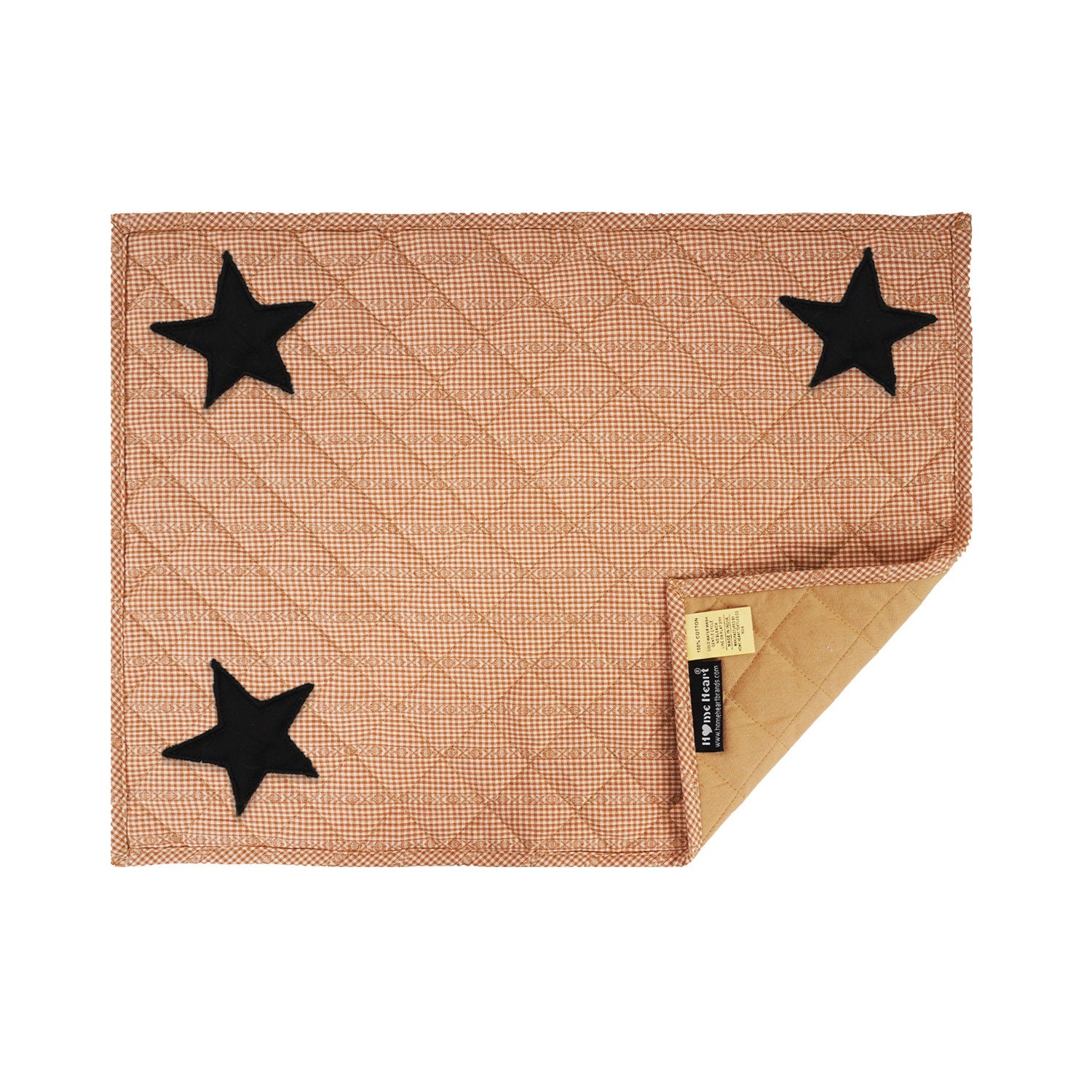 Quilted PLACEMAT & Table toppers Table mat black star embroidered peach brown Country Plaid 14"X19" by HOME HEART Brands(Made in India)