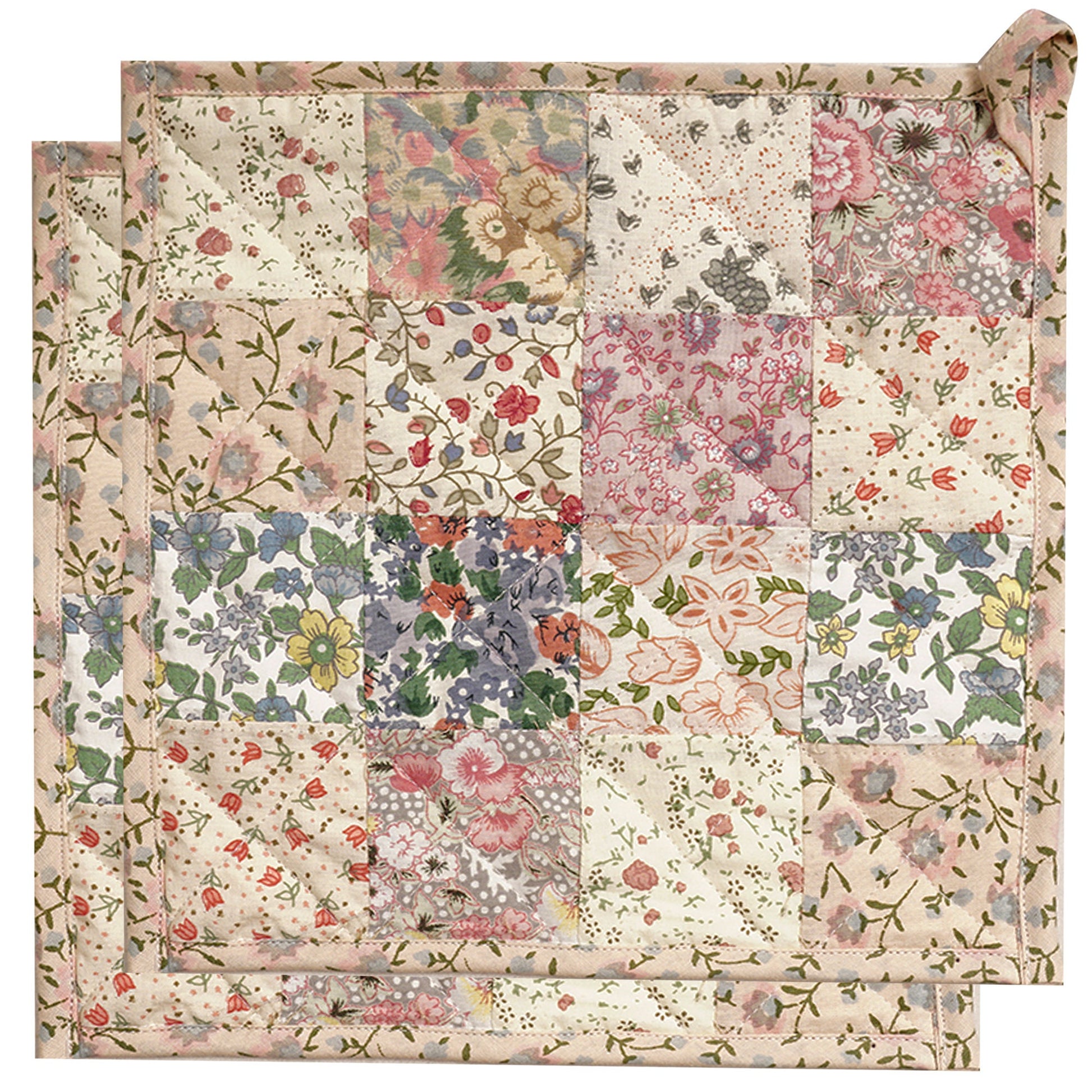 Quilted Pot Holder/Table topper/hot pads patchwork for kitchen Calico Country floral 9"x9" by HOME HEART Brands( Made in India)