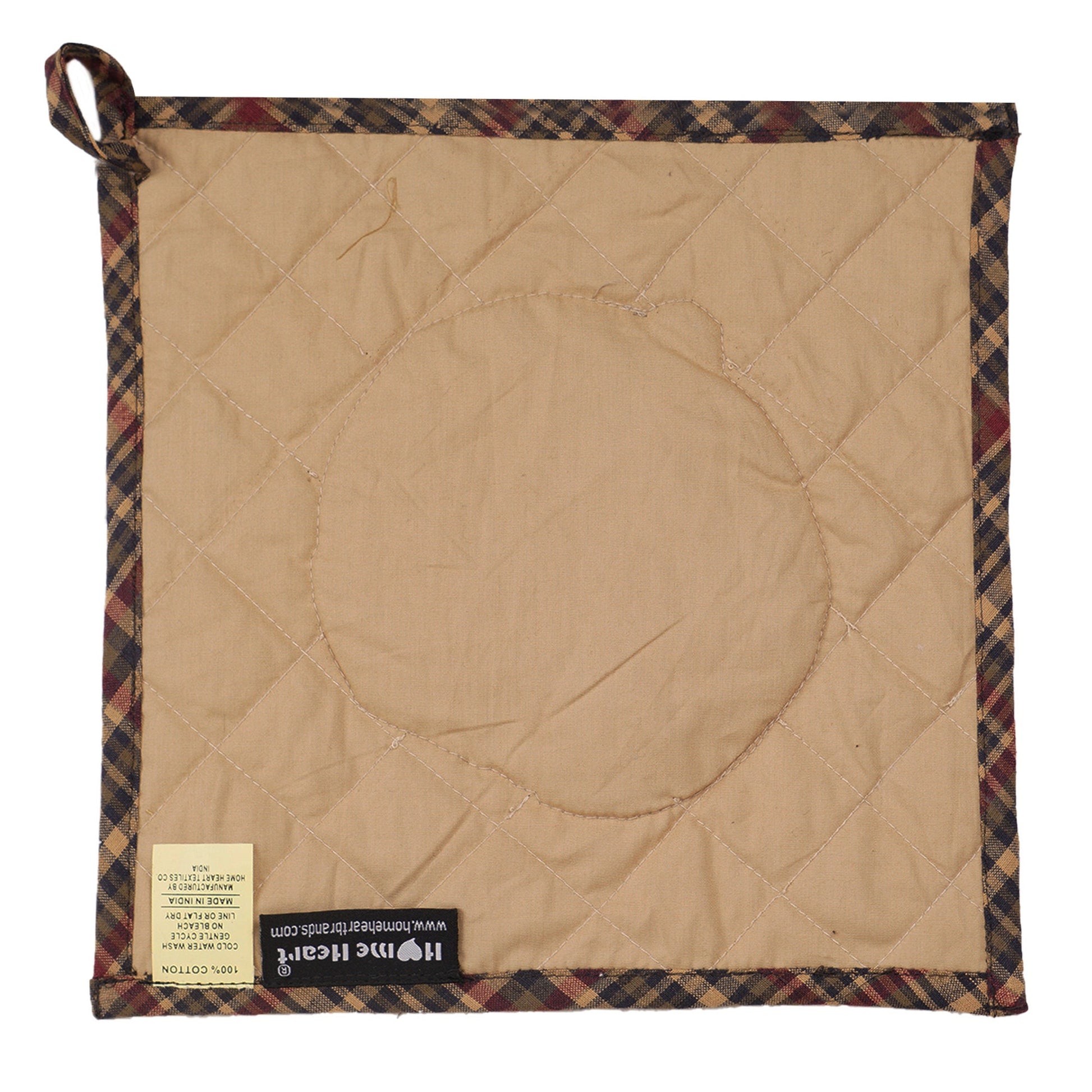 1 pcs Pot Holder measures 9 inches x 9 inches.COUNTRY DESIGN: Traditional style that compliments any country, rustic, or Americana home. Reverse side is khaki fabric.