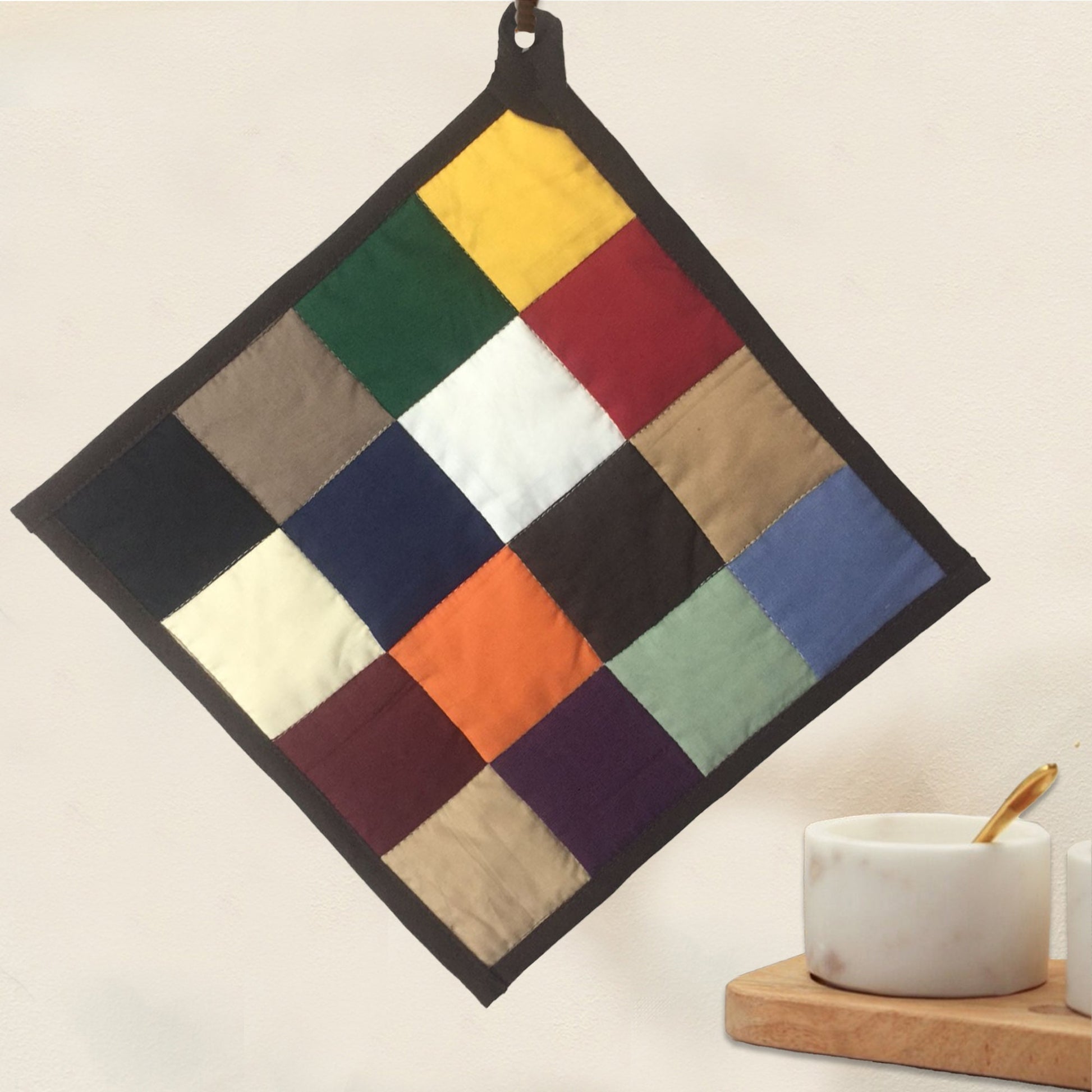 Quilted Pot Holder/Table topper/hot pads patchwork for kitchen Quilted square Mix plain 9"x9" by HOME HEART Brands( Made in India)
