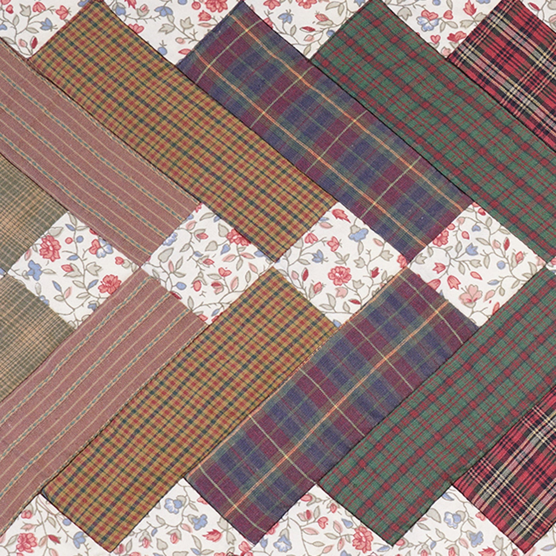 MATERIAL:100% high quality cotton fabric with burgundy, green, offwhite and mix color plaid. Have small patches and pieced together tightly to last after years of use. Padded with cotton layer for extensively quality quilting for durability. Reverse side is solid khaki. View the entire charming square design.
