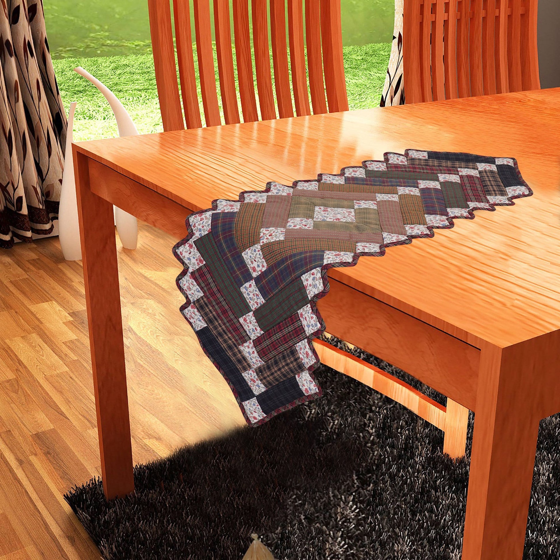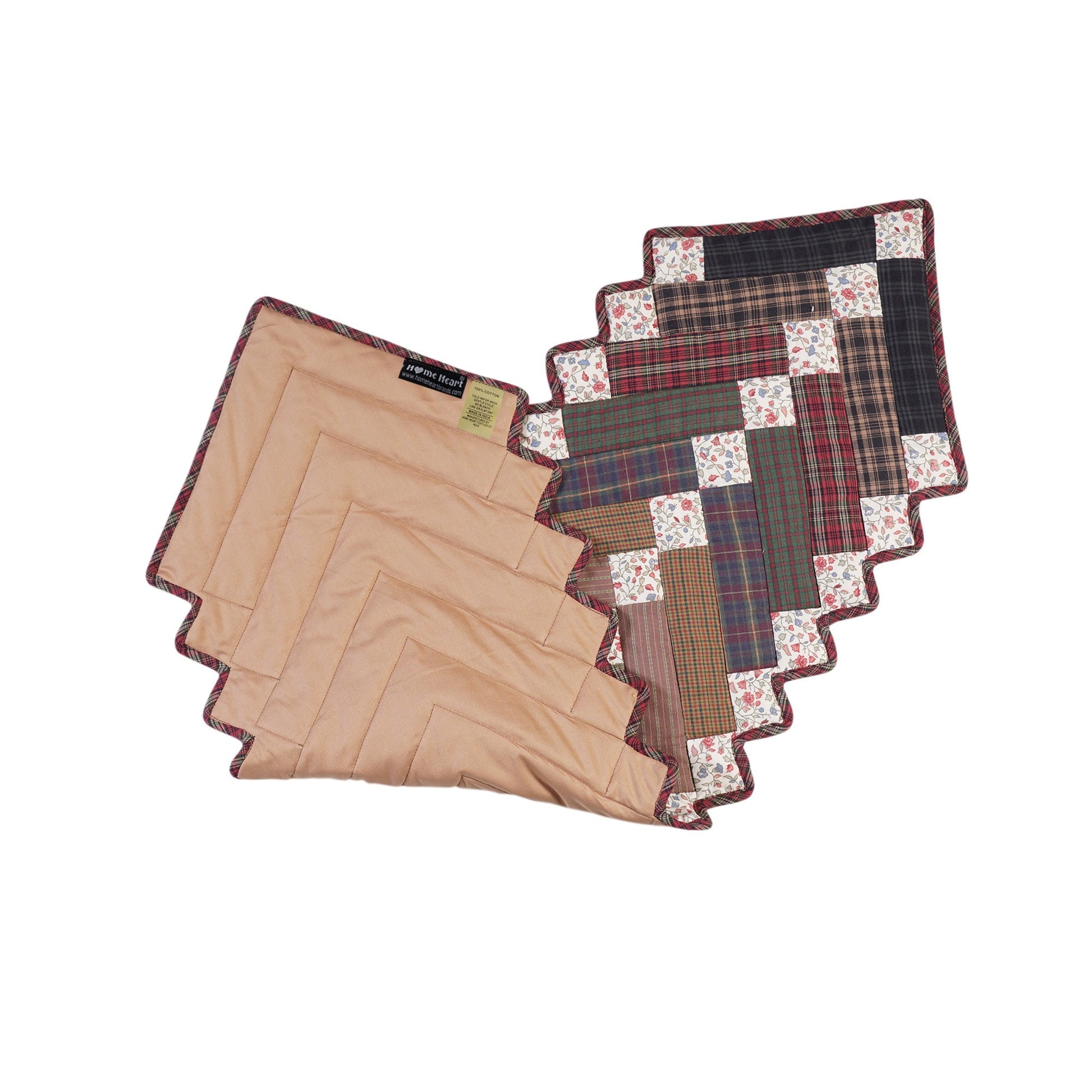 Quilted Table Runner & Toppers country patchwork Mix plaid, print cotton fabric Charming square by HOME HEART Brands (Made in India)