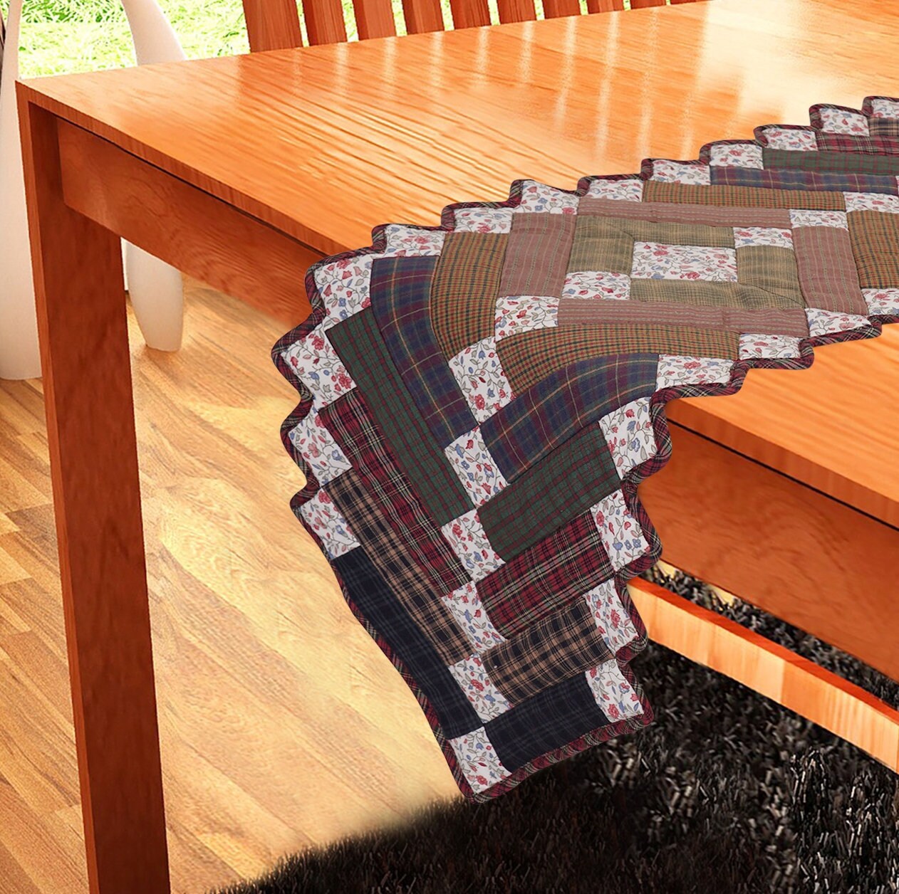 Give your dining table or bedroom dresser mix of plaid with classic country design. Gather around the table surrounded by family, friends and charming cotton table runner  from Home Heart brands.