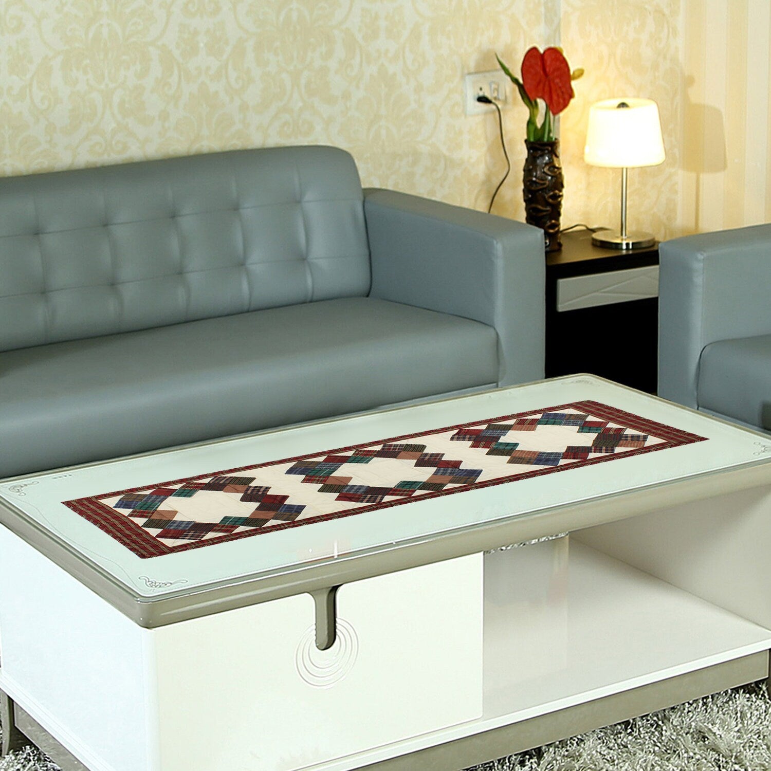 Quilted Table Runner & Toppers patchwork Boston common country fashion mix plaid and off white by HOME HEART Brands(Made in India)