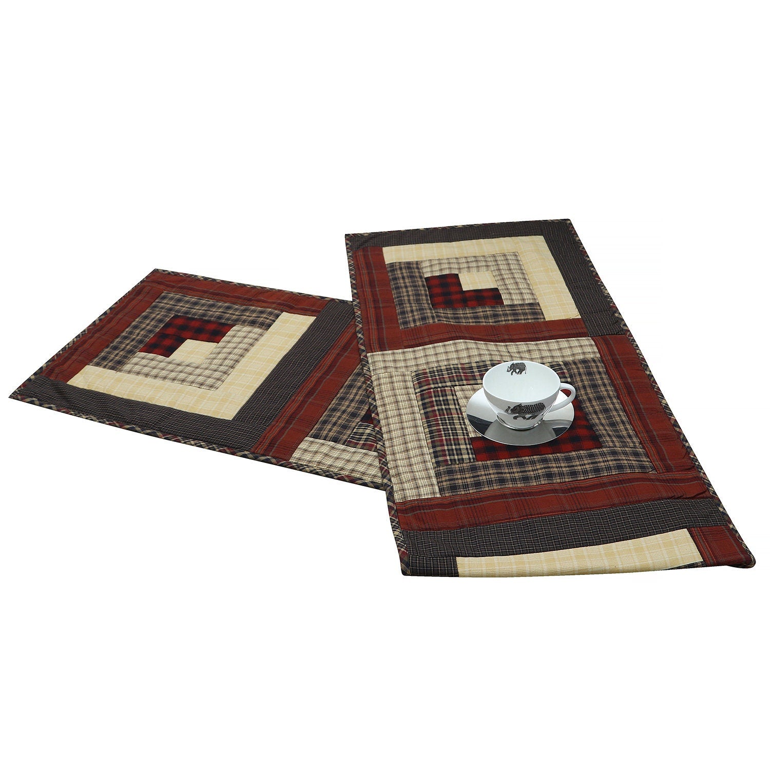 Quilted Table Runner & Toppers patchwork colonial country log cabin primitive plaid by HOME HEART Brands( made in INDIA)