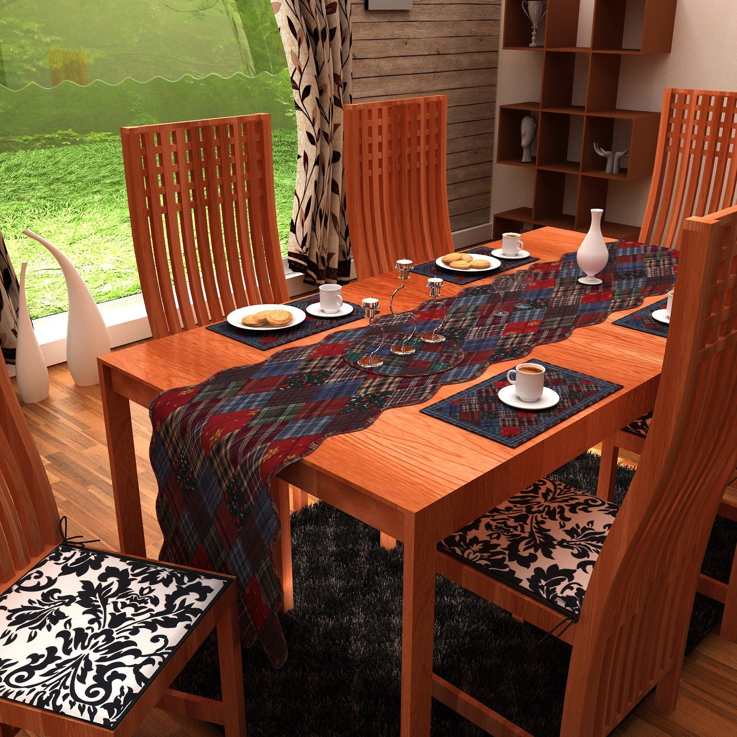 Give your dining table or bedroom dresser mix of plaid with classic country design. Gather around the table surrounded by family, friends and charming cotton table runner  from Home Heart brands.