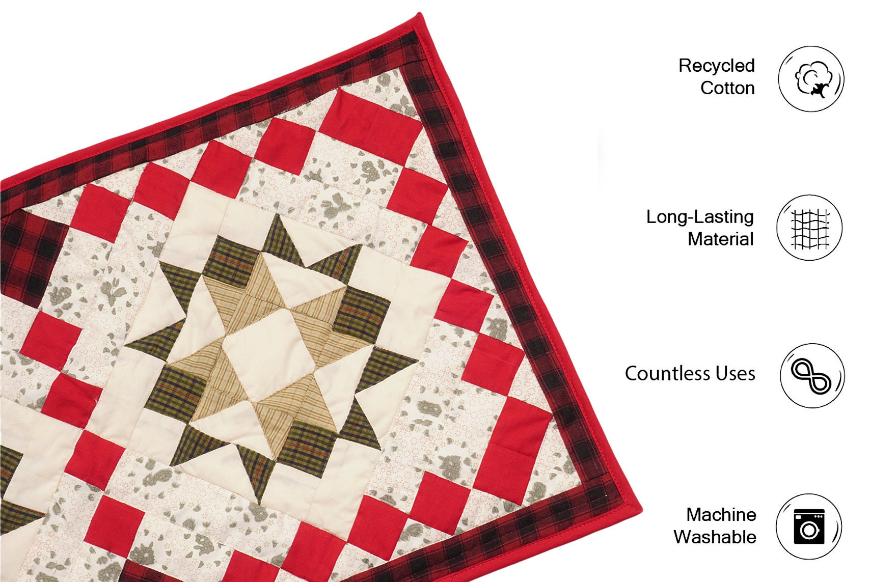 Quilted Table Runner & Toppers patchwork twinkle star plaid calico print plain fabric by HOME HEART Brands(Made in India)