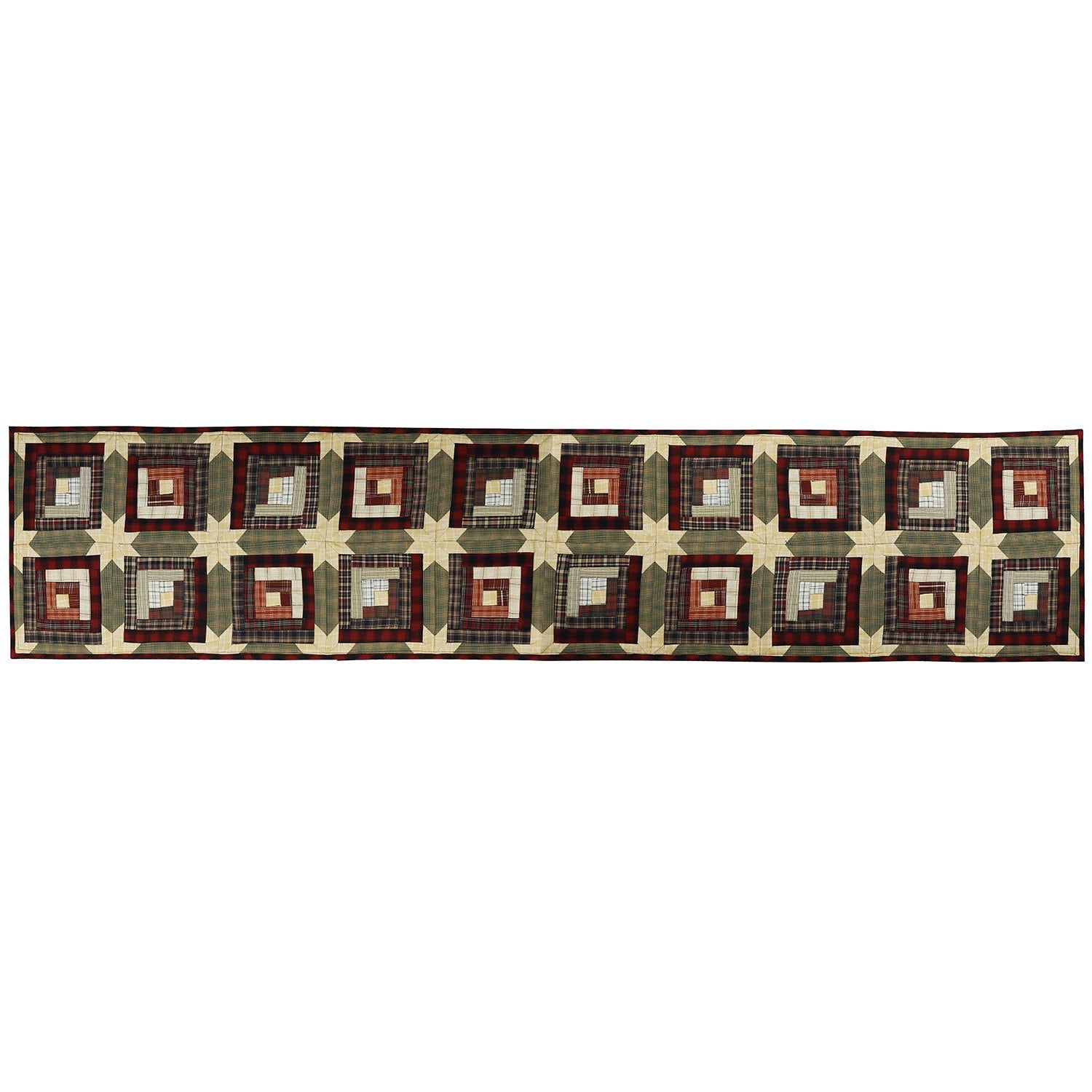 MATERIAL:100% high quality cotton fabric with mix plaid cotton fabrics. Have small patches and pieced together tightly to last after years of use. Padded with cotton layer for extensively quality quilting for durability. Reverse side is solid khaki. View the entire country cabin design.
