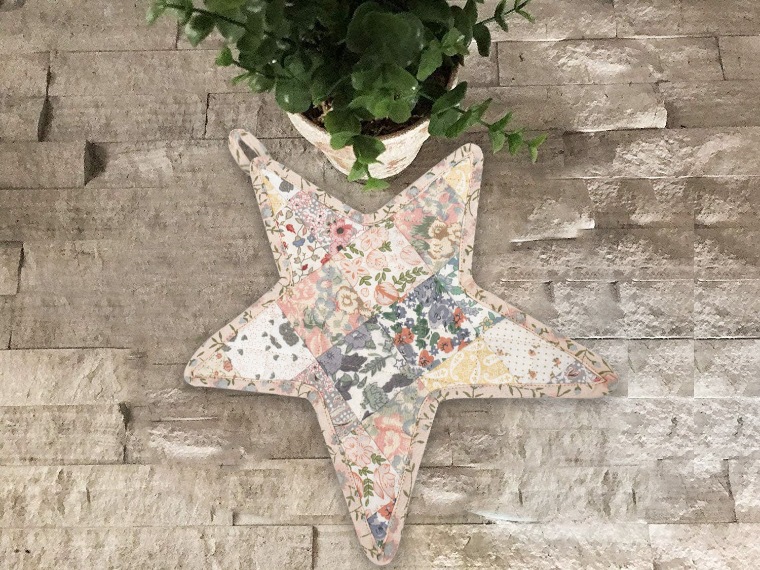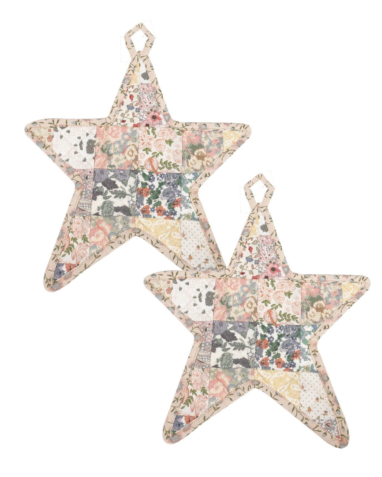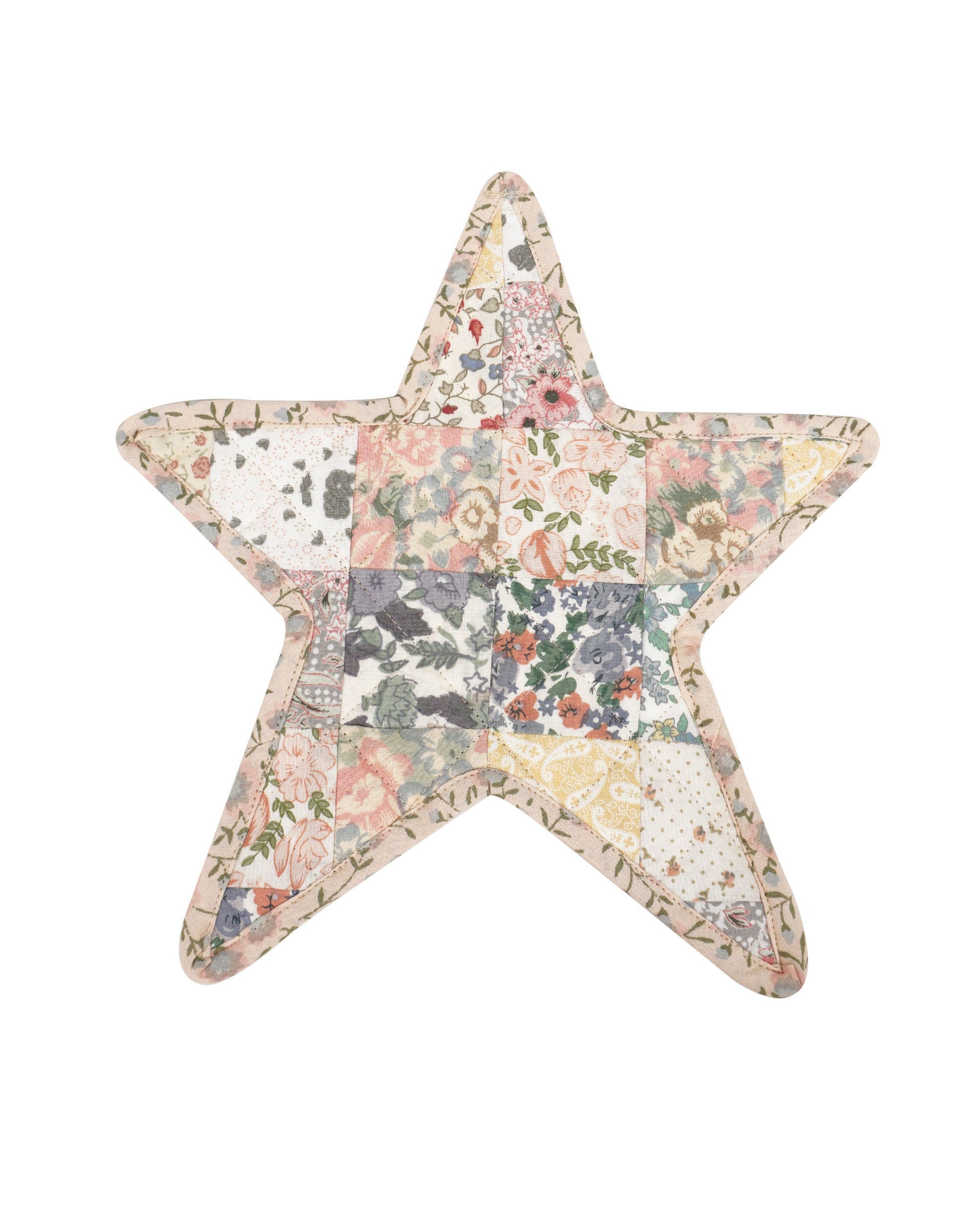 Quilted Trivet/Pot Holder/Table topper Calico Country light floral American patchwork star 10"x10" by HOME HEART Brands ( Made in India)